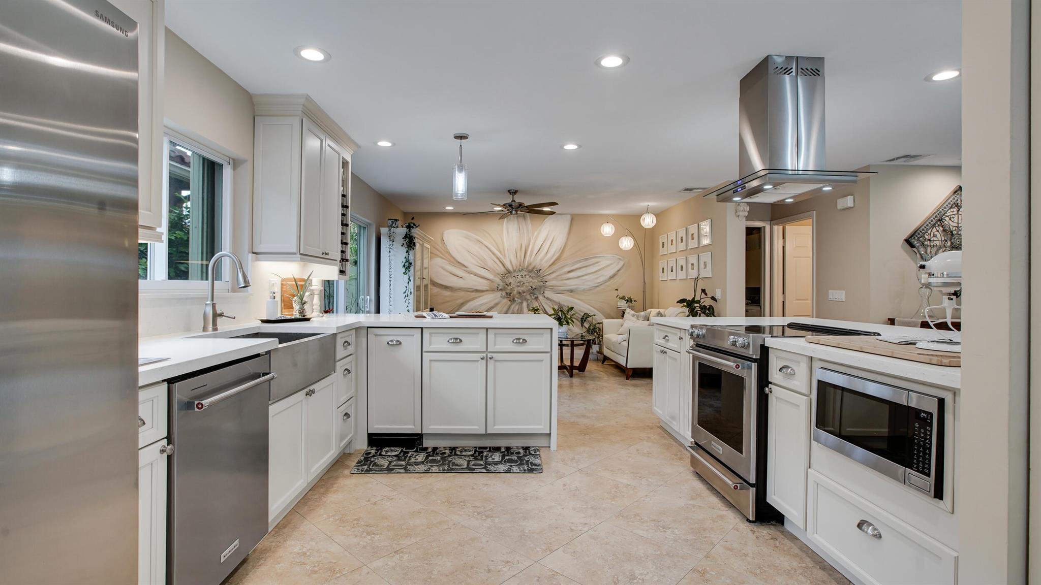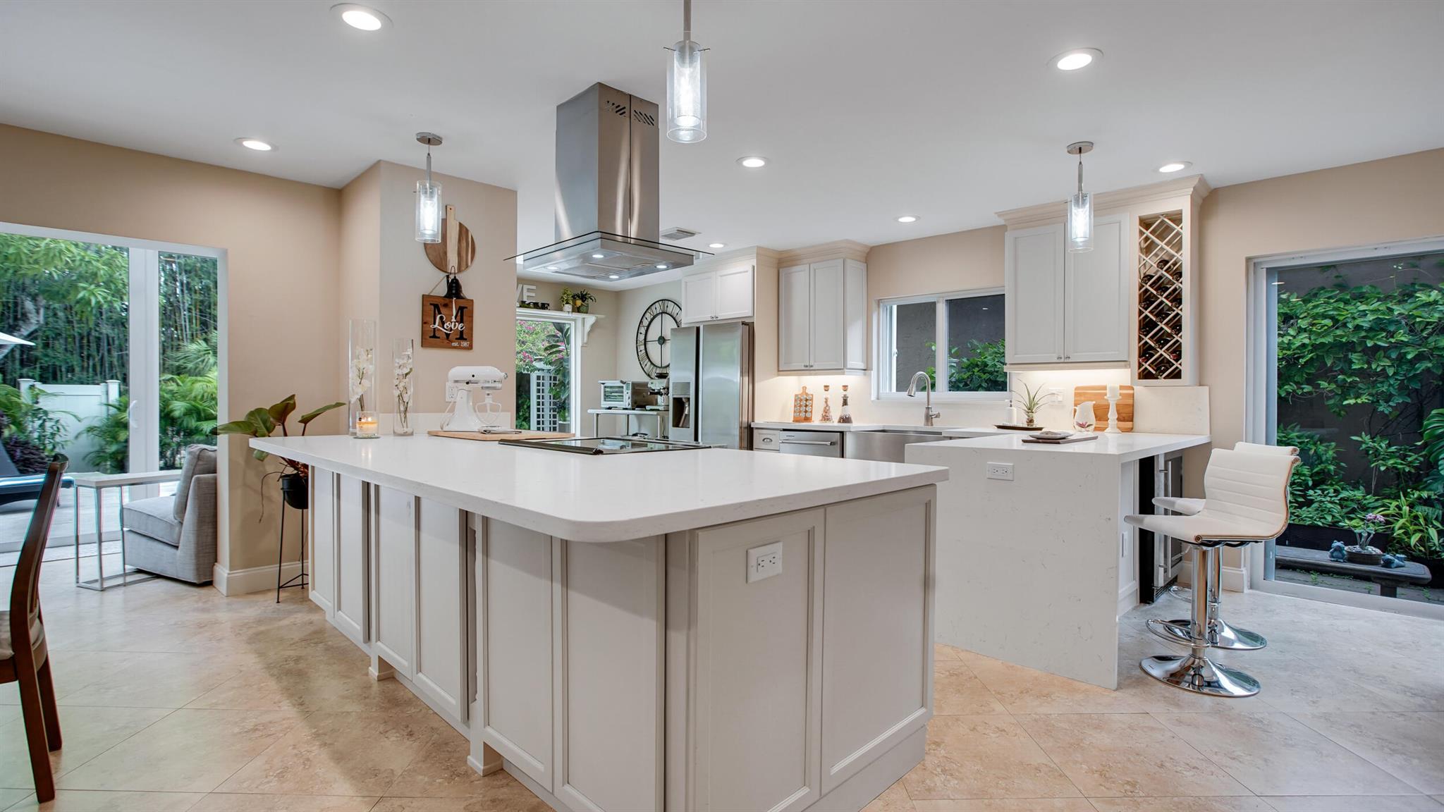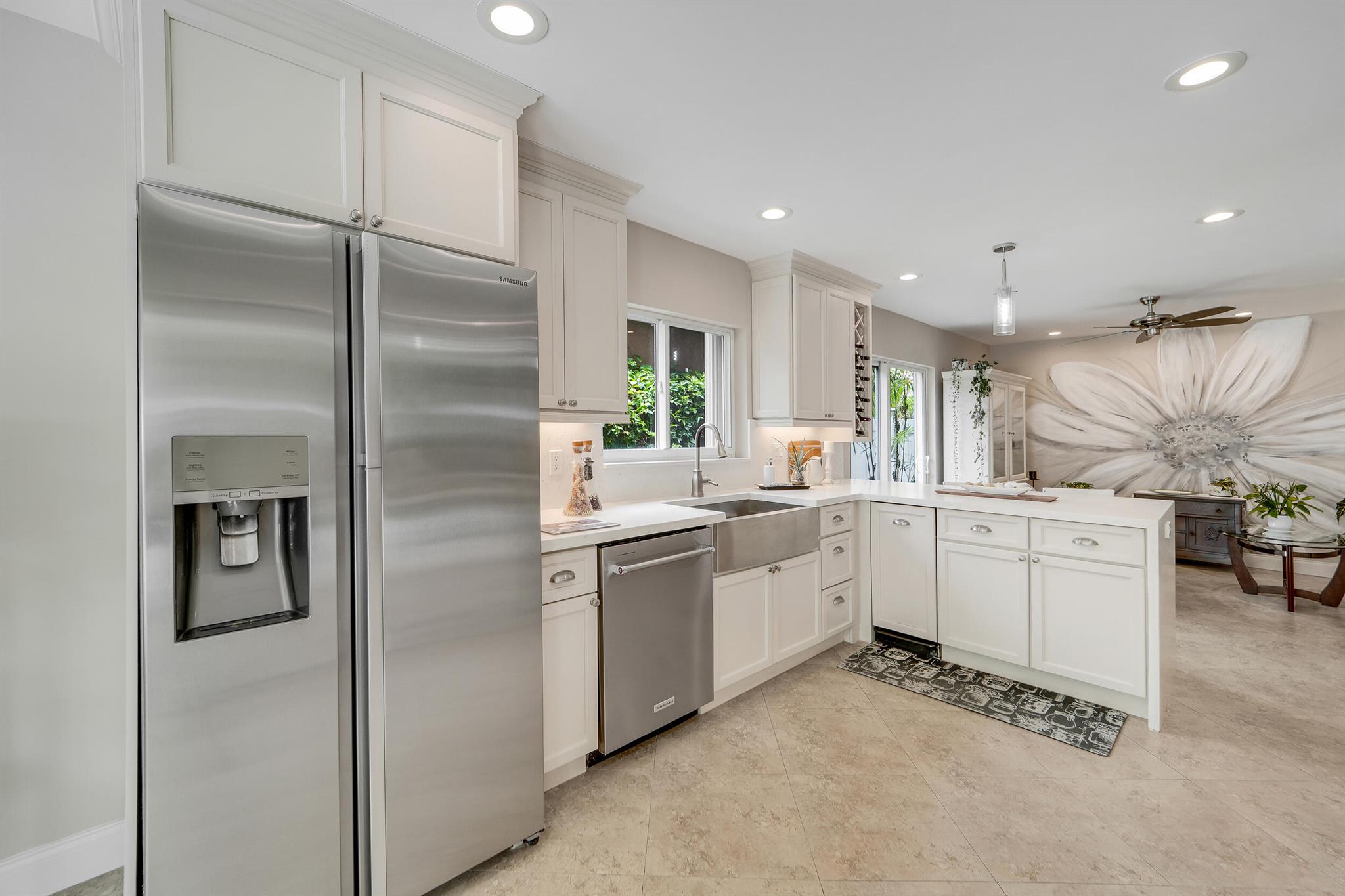 Gorgeous 4-bedroom, 2.5-bath pool home in the gated Ventura section of Mission Bay! From the moment you step inside, you'll be swept away by the open-concept design, soaring ceilings, large picturesque window and the perfect flow that makes this home ideal for both everyday living and entertaining. At the heart of the home is the chef's dream kitchen--featuring stainless steel appliances, prep stations, a walk-in pantry, and stunning quartz counter tops and elegant cream-toned cabinetry. A huge picture window floods the space with light and offers a serene view of the private backyard oasis and pool. Step outside into your tropical paradise, complete with a sparkling pool, travertine patio floor, and lovingly designed landscaping with a custom pergola and adorning bougainvillea.