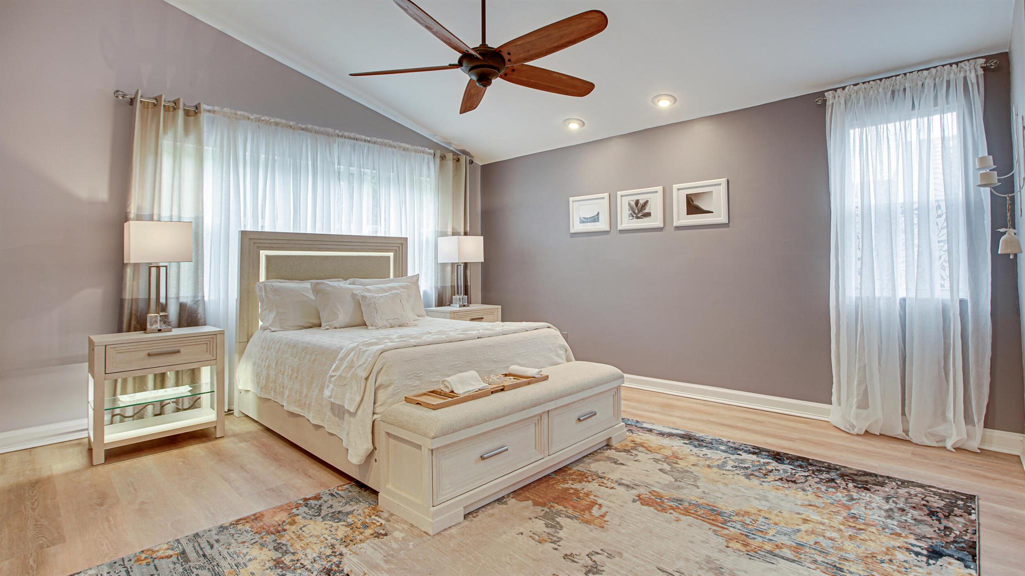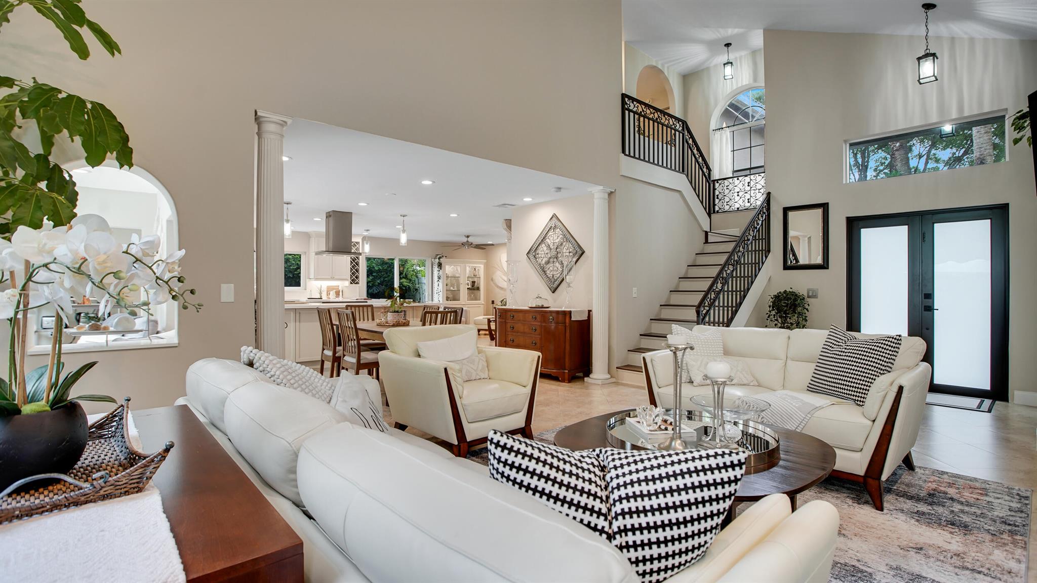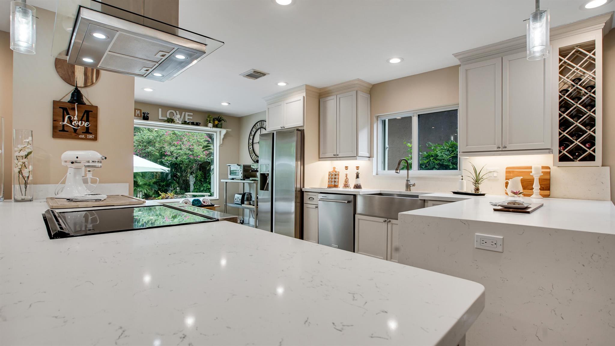 Gorgeous 4-bedroom, 2.5-bath pool home in the gated Ventura section of Mission Bay! From the moment you step inside, you'll be swept away by the open-concept design, soaring ceilings, large picturesque window and the perfect flow that makes this home ideal for both everyday living and entertaining. At the heart of the home is the chef's dream kitchen--featuring stainless steel appliances, prep stations, a walk-in pantry, and stunning quartz counter tops and elegant cream-toned cabinetry. A huge picture window floods the space with light and offers a serene view of the private backyard oasis and pool. Step outside into your tropical paradise, complete with a sparkling pool, travertine patio floor, and lovingly designed landscaping with a custom pergola and adorning bougainvillea.