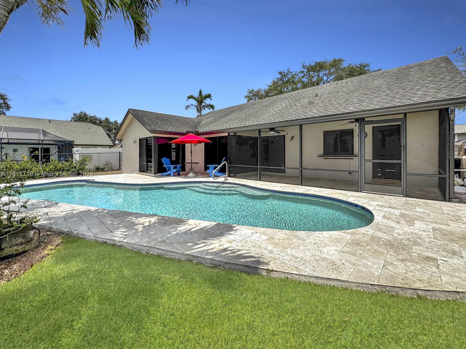 Elegant 3 bed, 2 bath pool, waterfront home located in the desirable Country Address Encore community in Cooper City is nestled on a premium 10,257 sq ft lot. Step inside to discover a home that is filled with natural light w 6 oversized sliding doors looking out to the pool and lake, enhanced by full impact windows and doors. Home features an upgraded spacious open kitchen with stainless appliances. Spacious primary suite w double sinks and a jetted tub w serene views. Enjoy relaxing in the charming screened porch or entertain by the sparkling saltwater heated pool and partially screened patio, ideal for Florida living year round. Located in Copper City's school district & close to parks, shopping & dining. This home offers the best of suburban living with a little extra elbow room.