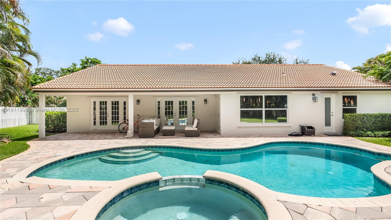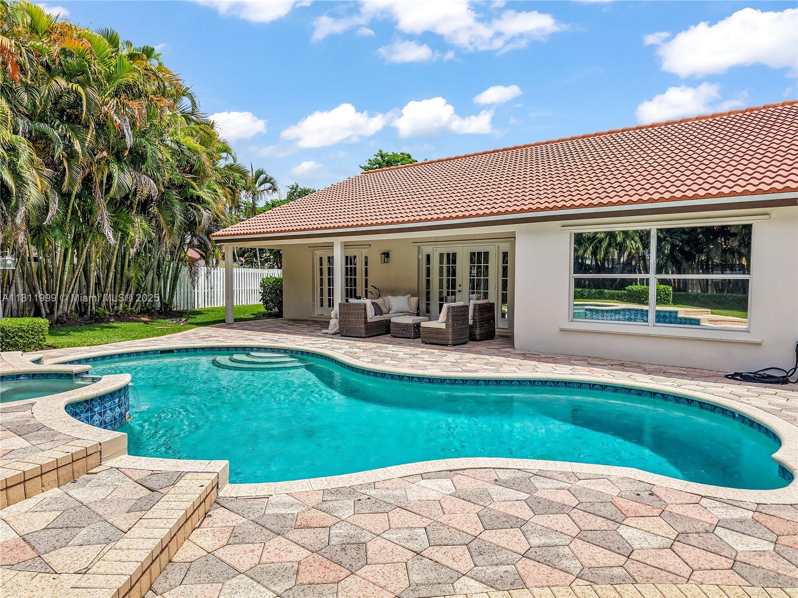 This fully renovated boutique-style home combines modern design, comfort, and elegance in a highly desirable gated community near Sawgrass Mills. The open-concept layout features brand-new chevron luxury vinyl flooring, soaring ceilings, and French doors.The gourmet kitchen boasts new white custom cabinetry, stainless steel appliances, and designer finishes. Bathrooms are beautifully upgraded with premium tile, new cabinetry, and a luxurious master en-suite featuring a walk-in closet, oversized tub, double vanity, and a high-tech Toto smart toilet.Sparkling pool, and relaxing jacuzzi. This home also offers high-tech surveillance, designer interior doors, Washer Drier Unit.New roof (2014), A/C (2023), and water heater (2024). Located in a safe, family-friendly close to Sawgrass Shops.