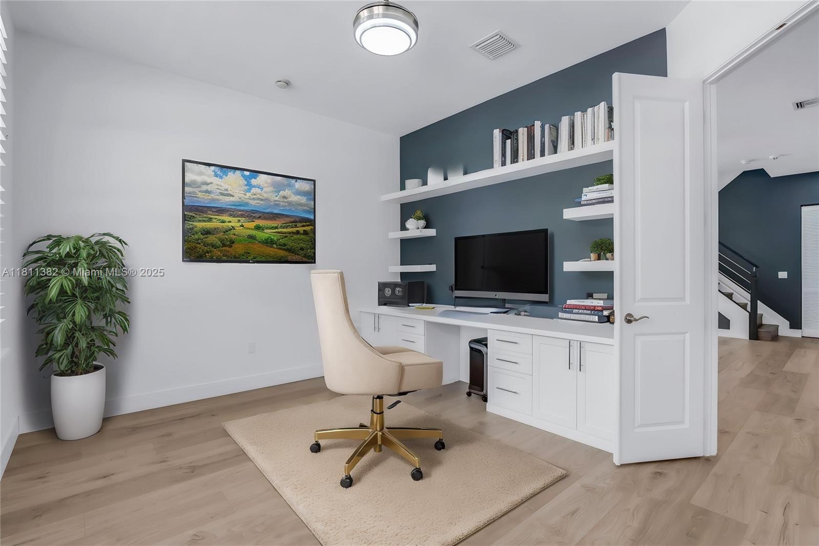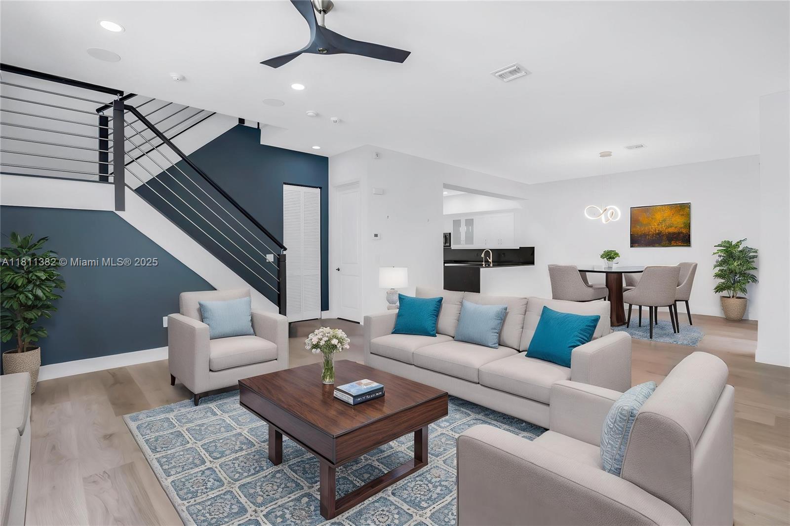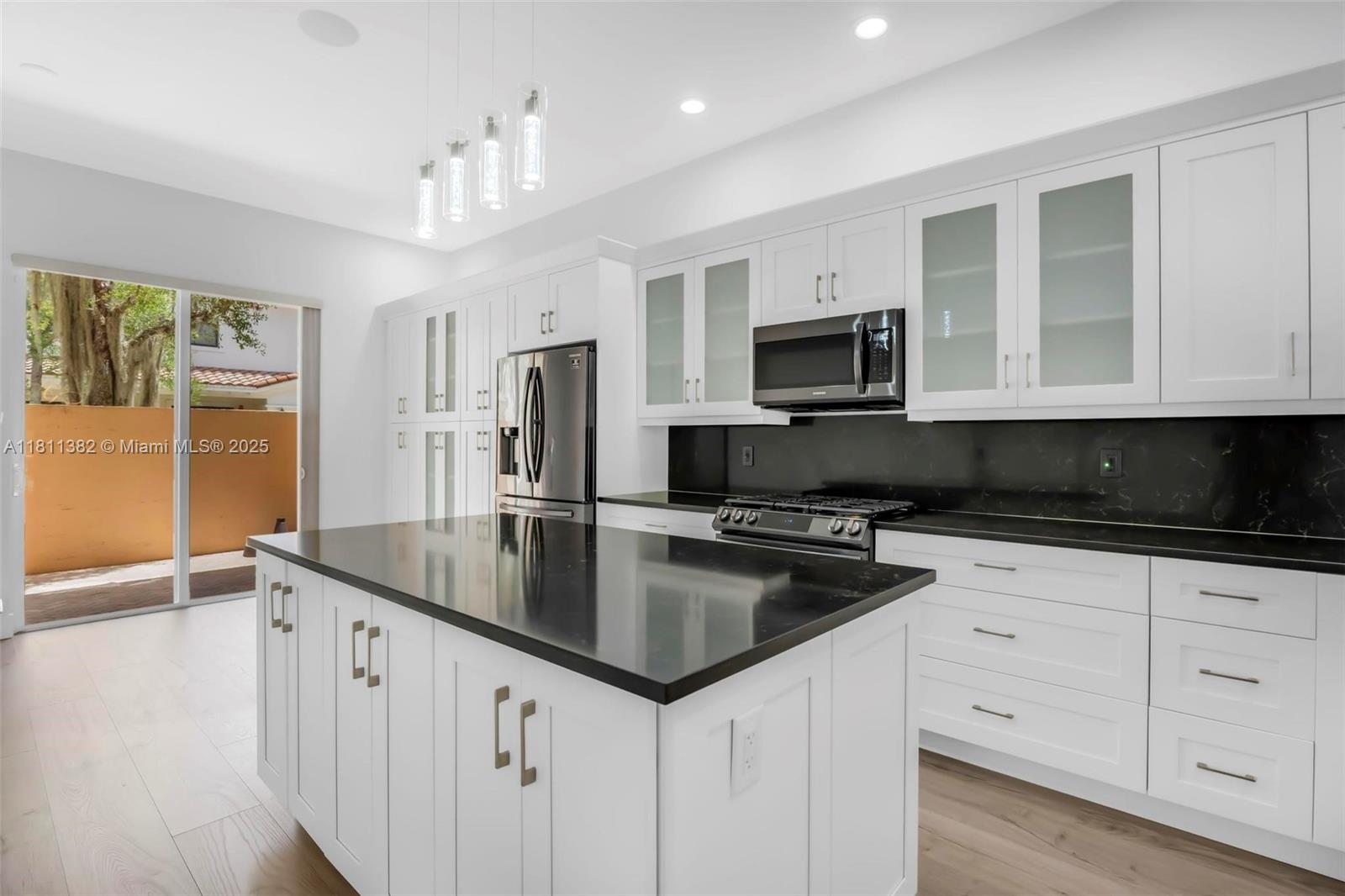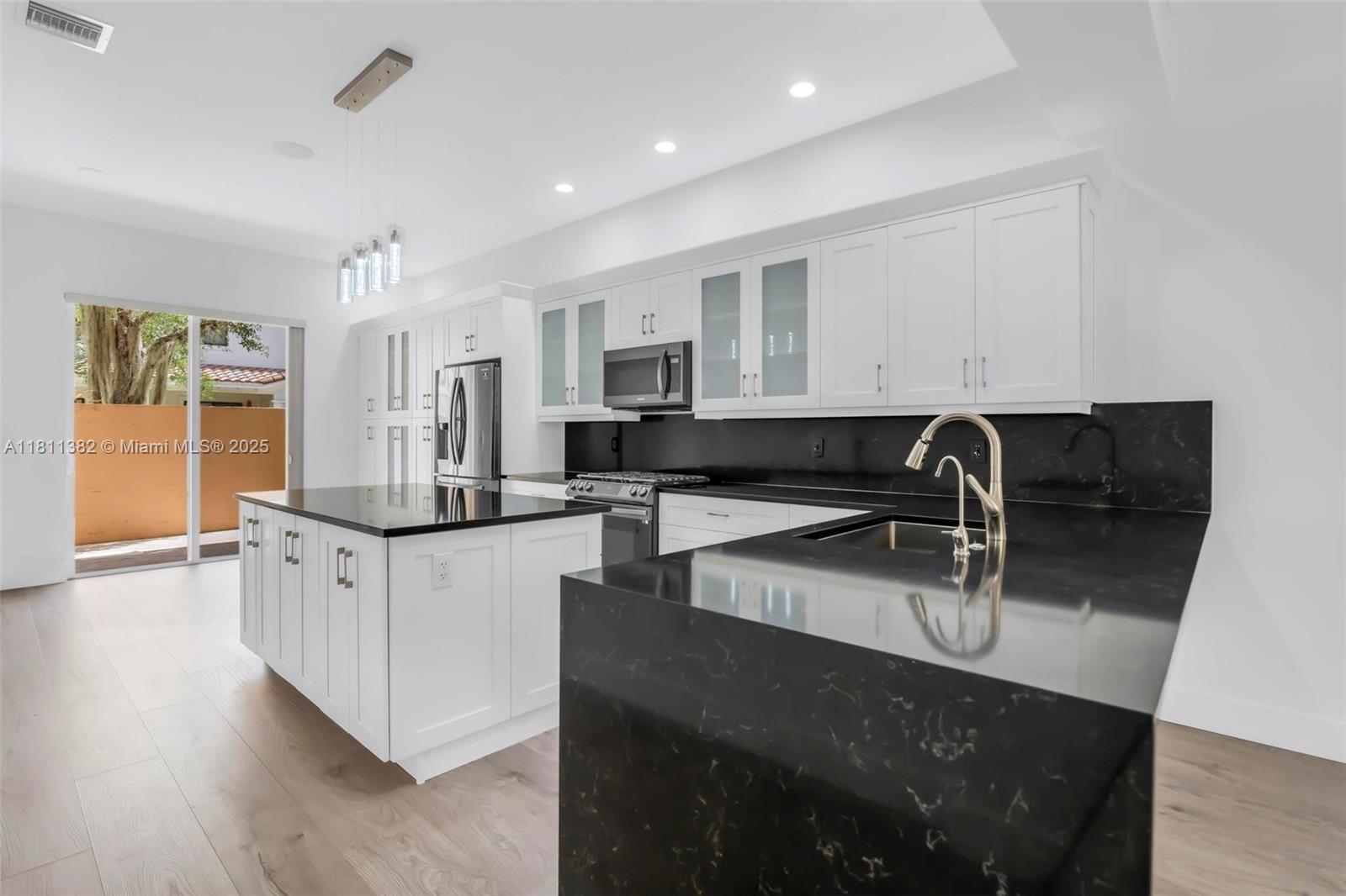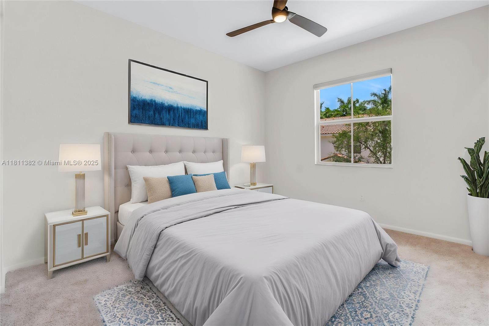 Step into luxury living with this upgraded GRANDE model townhouse in the exclusive, guard-gated resort-style community of Artesia. This spacious 2-story home features soaring 12 ft ceilings, new flooring, & a modern open layout perfect for entertaining. The kitchen boasts sleek stainless steel appliances, new countertops, & contemporary finishes. A first-floor office with plantation shutters offers versatile space for remote work or guests. The primary suite includes a private balcony, custom walk-in closets, & spa-like upgrades. Enjoy blackout blinds, a modern stair rail, two NEW A/C units, tankless water heater, whole-home water softener, and smart home tech controlling sound, lighting, security, and garage. Artesia provides resort-style amenities like pools, clubhouse, & fitness center.