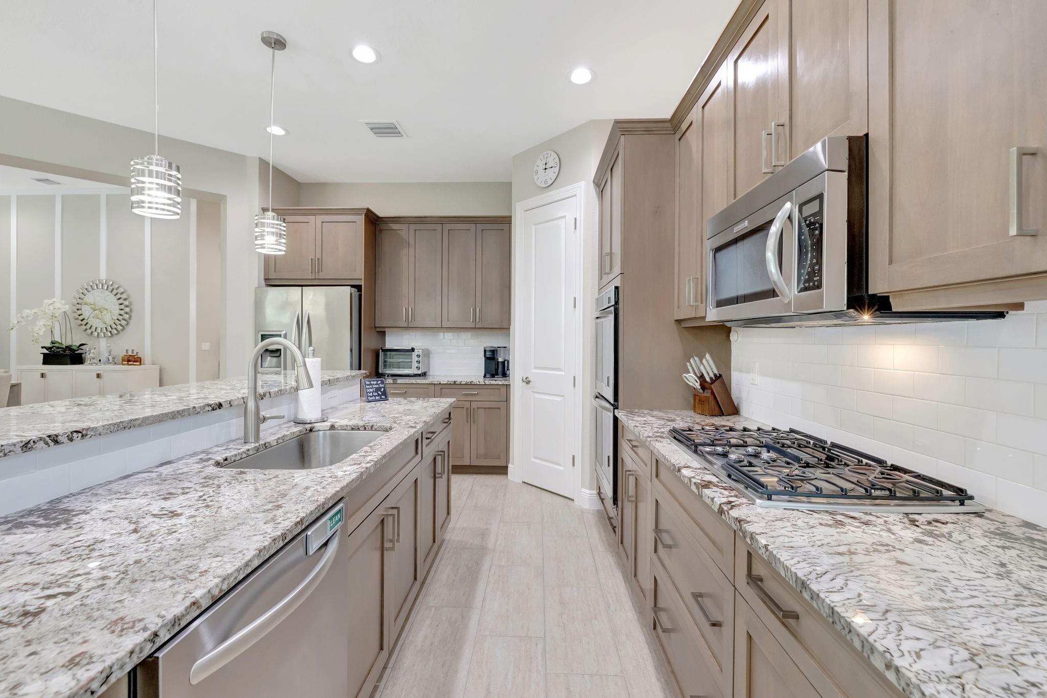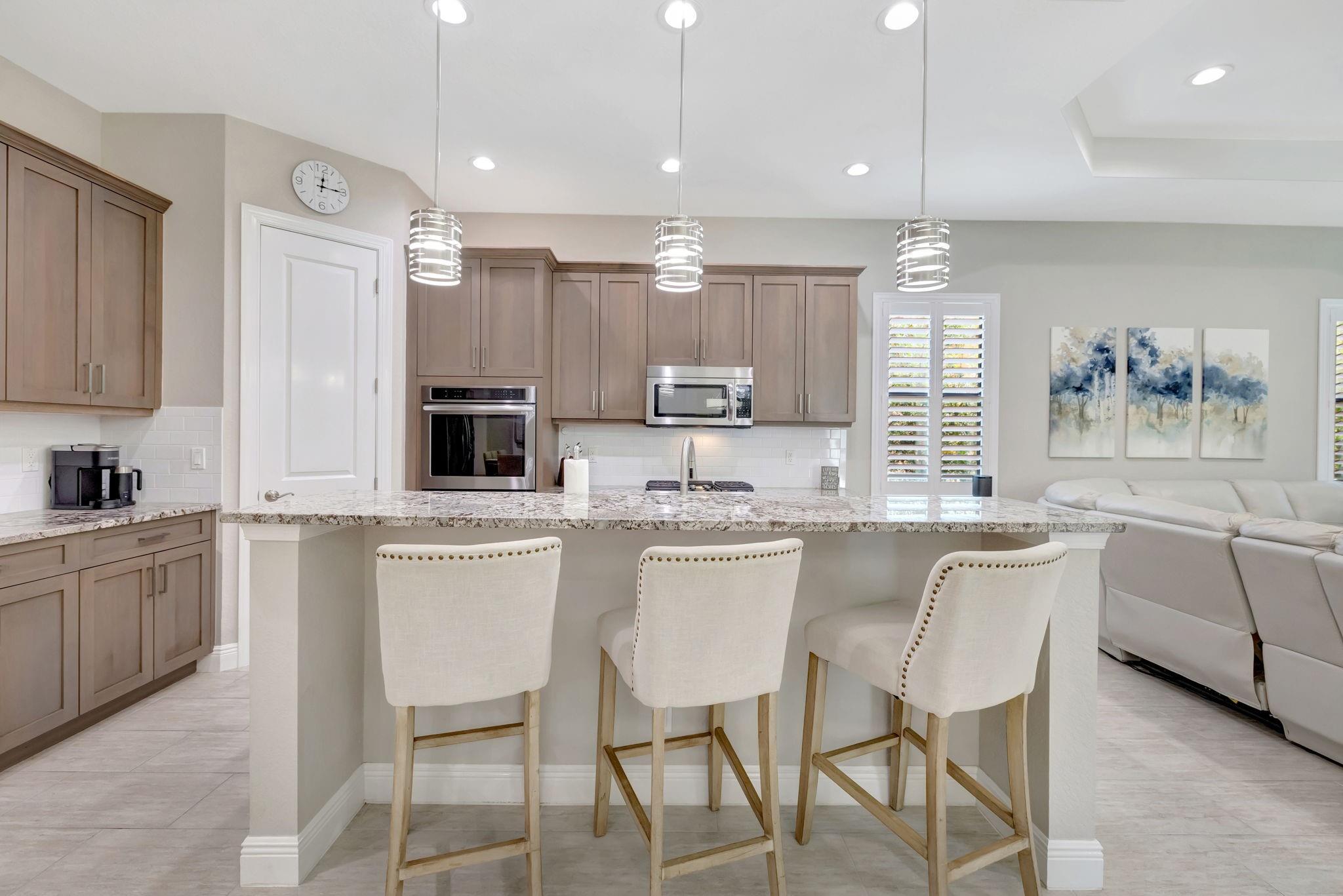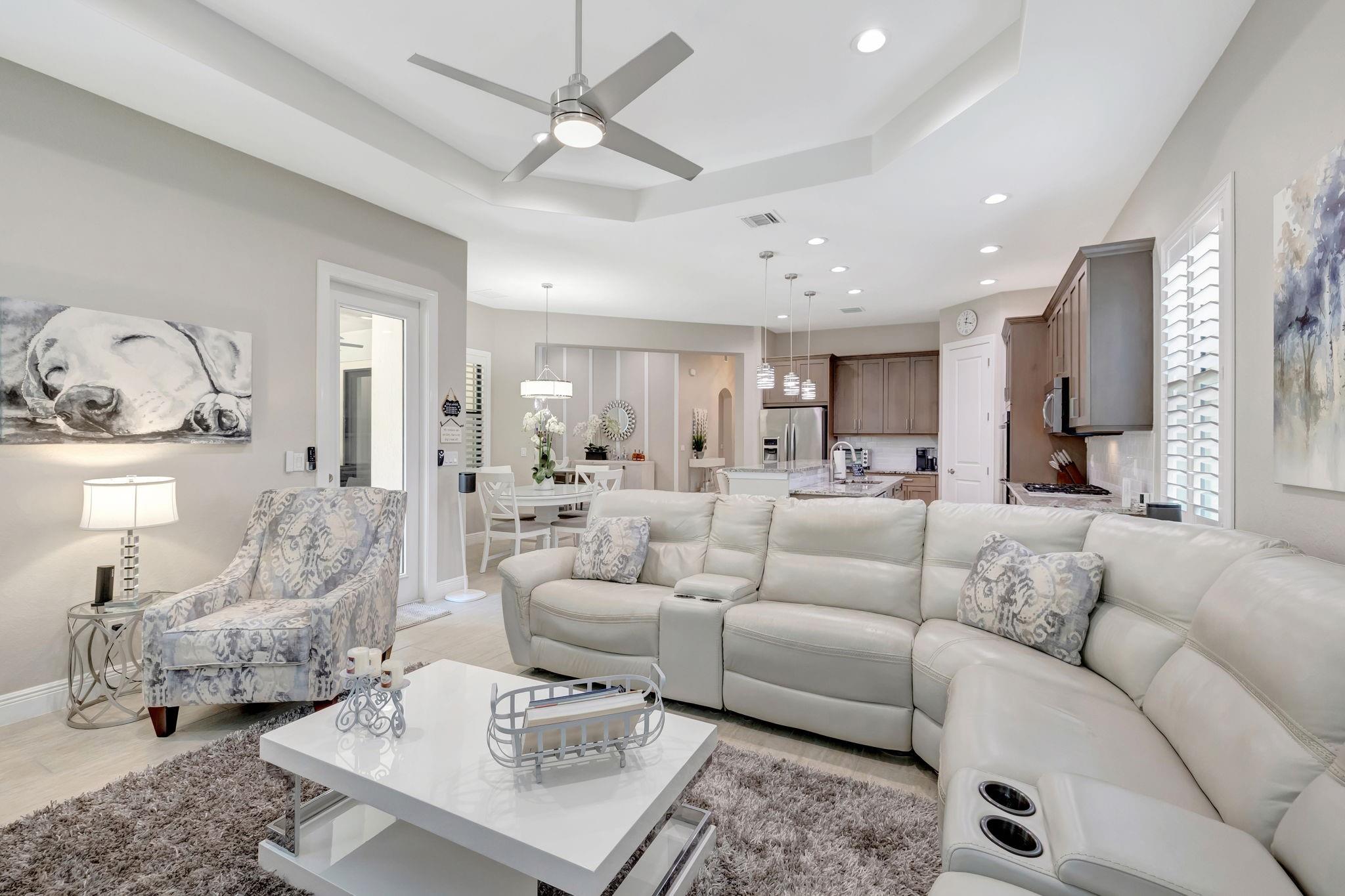 WELCOME HOME! Luxury meets lifestyle in this elegant residence in Heron Bay’s prestigious Osprey Lake. This expansive 4-bedroom + den (optional 5th bedroom) ranch floorplan is coveted for its flexible layout. Newer construction & whole-home generator maximize insurance savings! Thoughtfully upgraded with designer lighting, custom closets, high-end window treatments, premium flooring & custom accent walls. The gourmet kitchen features gas cooking for the discerning chef. Step outside to a private oasis w/ travertine tile, mature fruit trees, spa, and motorized illuminated awning. The epoxy-finished garage is EV-ready. Exterior soffit and path lighting elevate curb appeal. Steps from the clubhouse with resort-style amenities make this home a total package! Call today for a private showing.