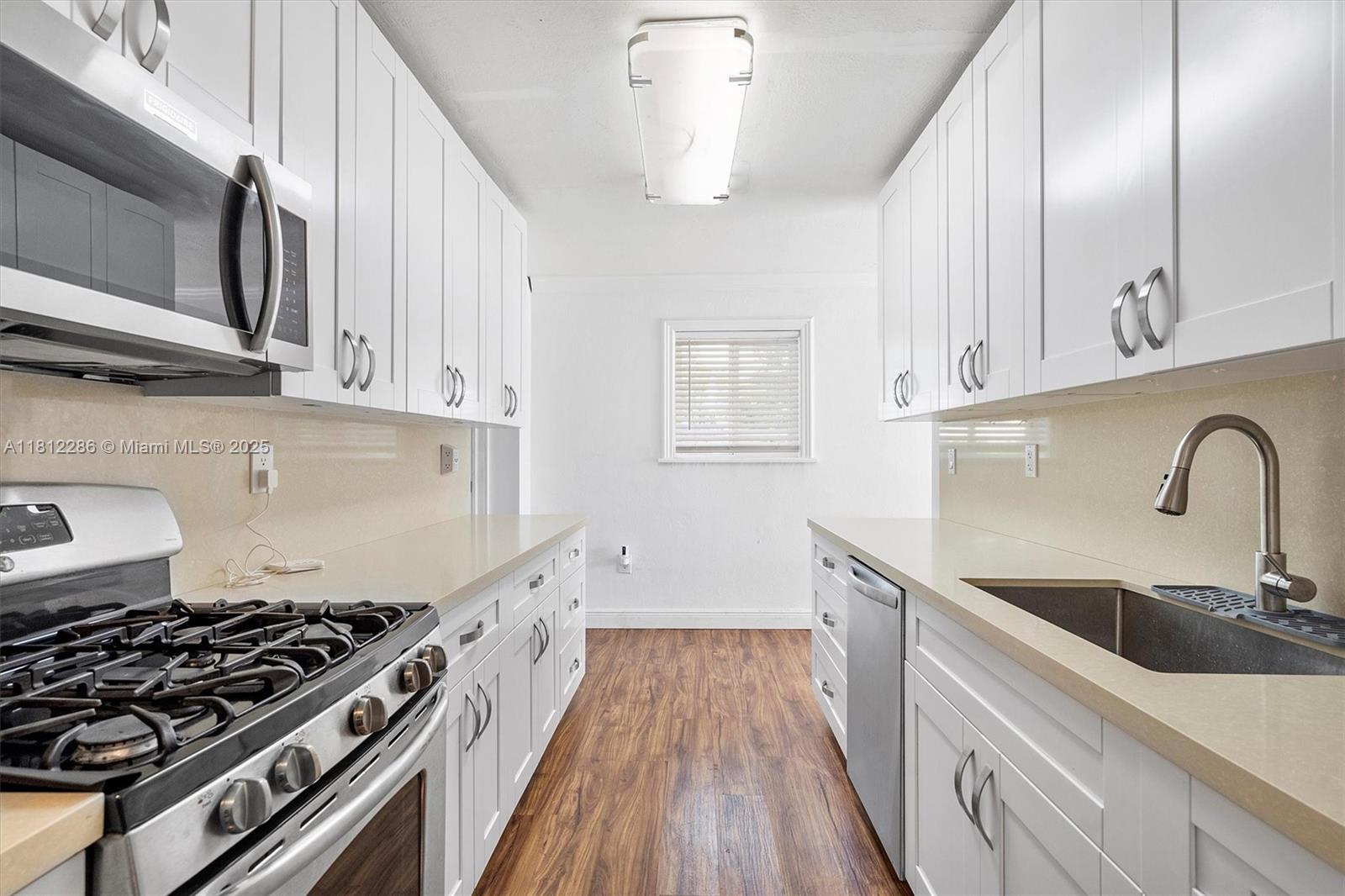 SINGLE FAMILY HOME IN HOLLYWOOD - Recently updated kitchen with gas stove, high-end countertops, and cabinets. Renovated bathroom. Features include laminate wood flooring throughout, crown molding, and impact windows. No popcorn ceiling! The spacious layout features both a family room and a living room. Fully fenced yard provides privacy and includes a large workshop. Central location with convenient access to local amenities and major roads. Functional updates throughout. Located in an established Hollywood neighborhood with easy commute options. Ready for occupancy. Contact for viewing.