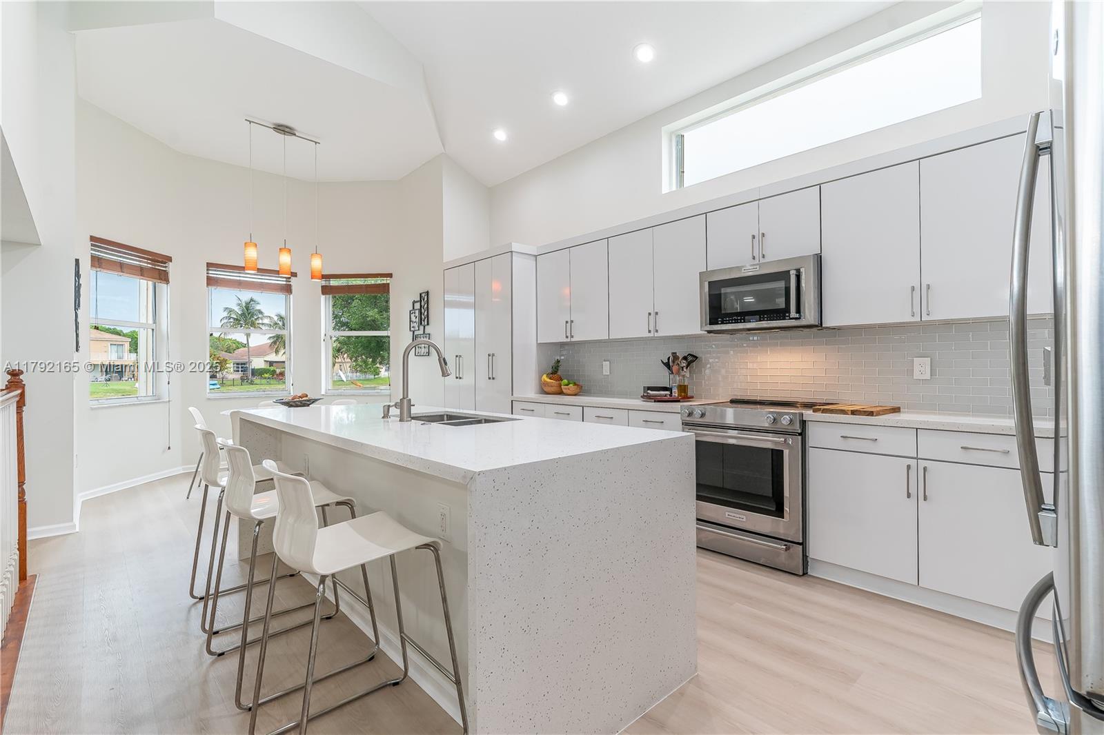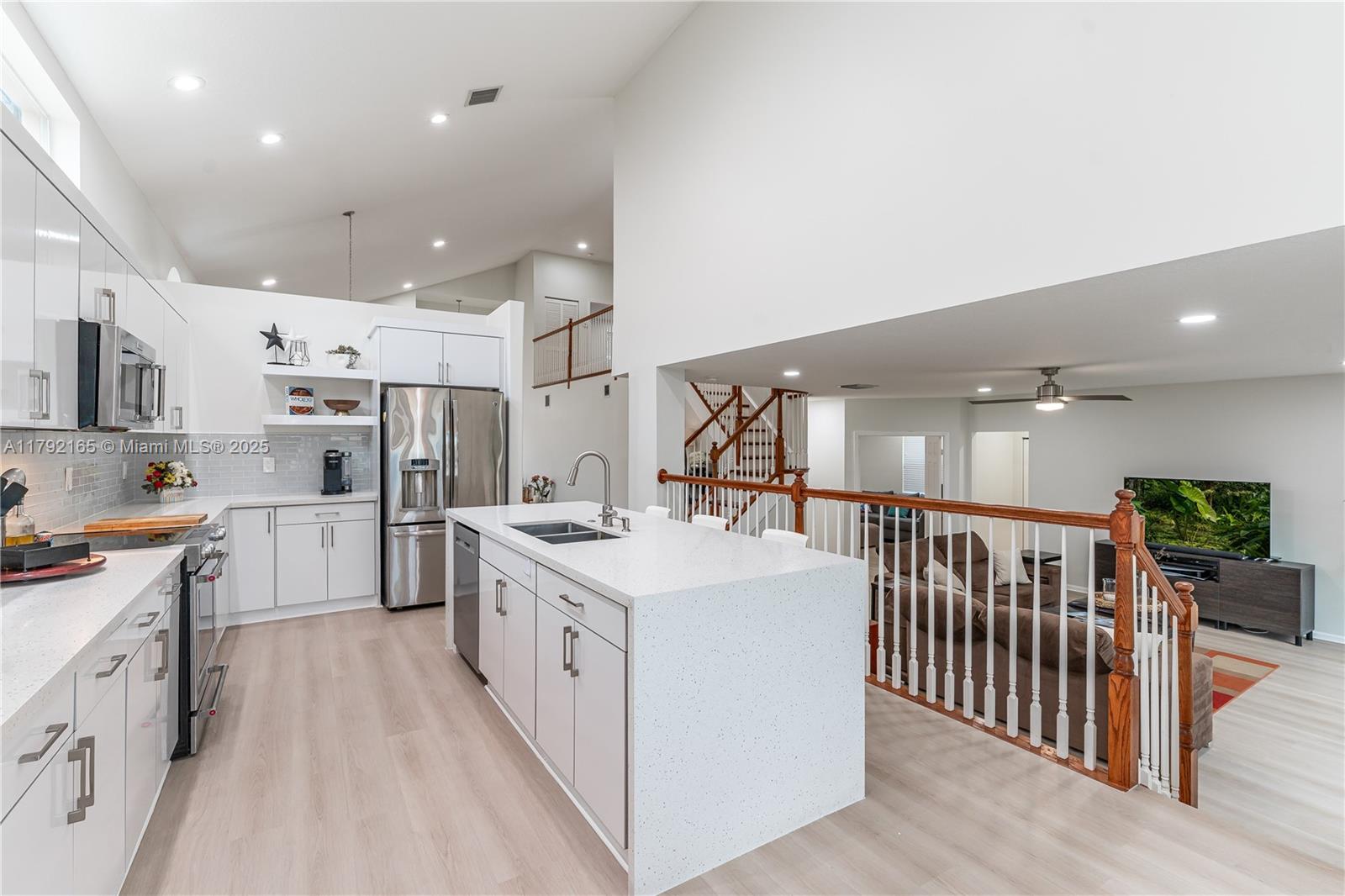 WELCOME TO THIS FULLY UPDATED 4 BED, 3 BATH HOME IN THE SOUGHT AFTER COMMUNITY OF RIVIERA ISLES. *CAMBRIA MODEL WITH OVER $140K IN UPGRADES AND STUNNING LAKEVIEWS FROM ALMOST EVERY WINDOW. *BRAND NEW ROOF AND LUXURY VINYL FLOORING IN THE MAIN LIVING AREA. *RENOVATED KITCHEN BOASTS QUARTZ COUNTERTOPS, STAINLESS STEEL APPLIANCES, AND MODERN WHITE CABINETRY. *SPACIOUS PRIMARY SUITE FEATURES A PRIVATE OFFICE/SITTING AREA AND A LARGE WALK-IN CLOSET. *ALL BATHROOMS HAVE BEEN FULLY RENOVATED WITH A SOPHISTICATED, LUXURIOUS DESIGN. *ONE BEDROOM AND FULL BATHROOM ARE CONVENIENTLY LOCATED DOWNSTAIRS. *SERENE LAKEVIEWS FROM THE SCREENED-IN PATIO—PERFECT FOR OUTDOOR DINING OR UNWINDING AT SUNSET. *COMMUNITY OFFERS RESORT-STYLE AMENITIES INC. POOL, GYM, TENNIS, PICKLEBALL & BASKETBALL COURTS, AND MORE!