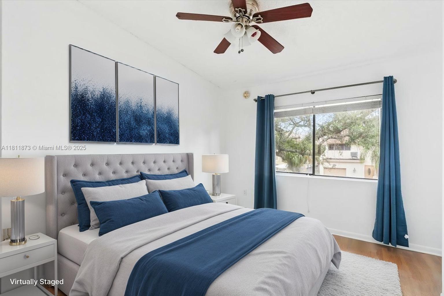 This 2-bedroom, 2.5-bath seldom available corner unit townhouse features brand-new luxury vinyl flooring on staircase & second level for a clean, modern look. Both bedrooms feature an en-suite bathroom, plus main level powder room for guests offering comfort & privacy. Kitchen with wood cabinets, granite countertops & stainless appliances. Enjoy the outdoors on the private back patio close to the community pool or relax on the charming upper deck. Accordion shutters provide peace of mind, one-car garage & large driveway add convenience & storage. Located just minutes from NSU, Hardrock Guitar Hotel, FLL Airport, shops, dining & major highways—this is a prime location! Brand new updated sub & main electrical panels. With just a few updates, this home can truly shine!