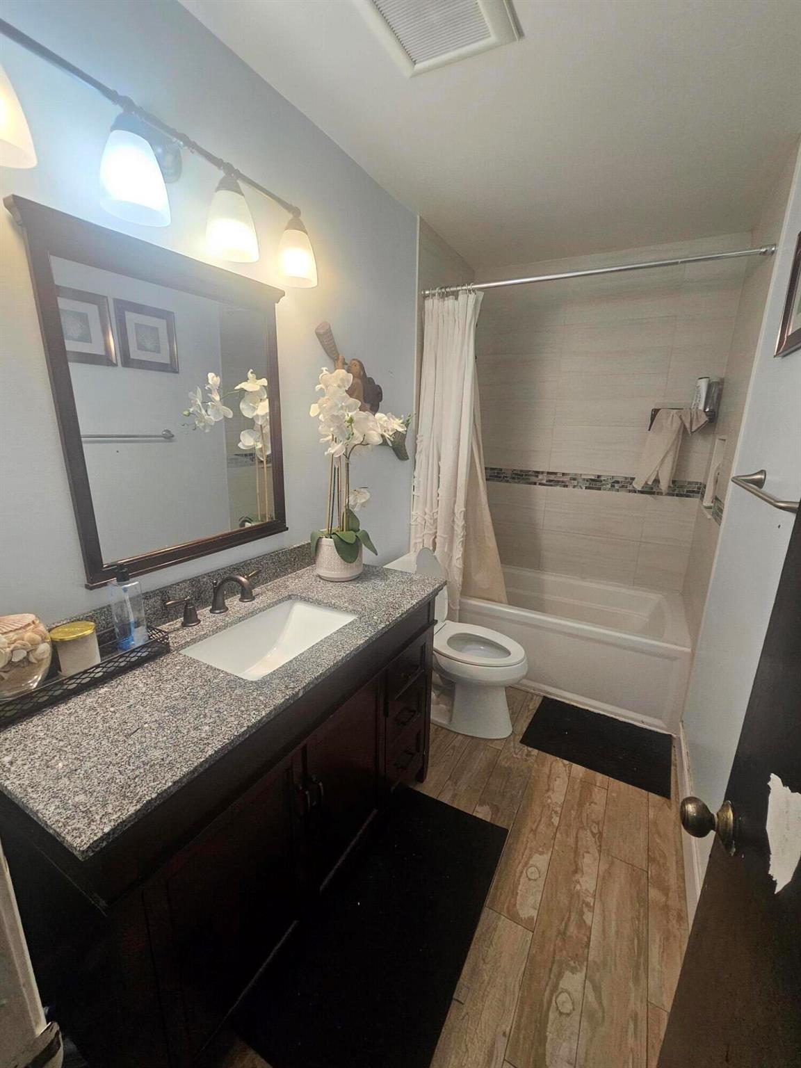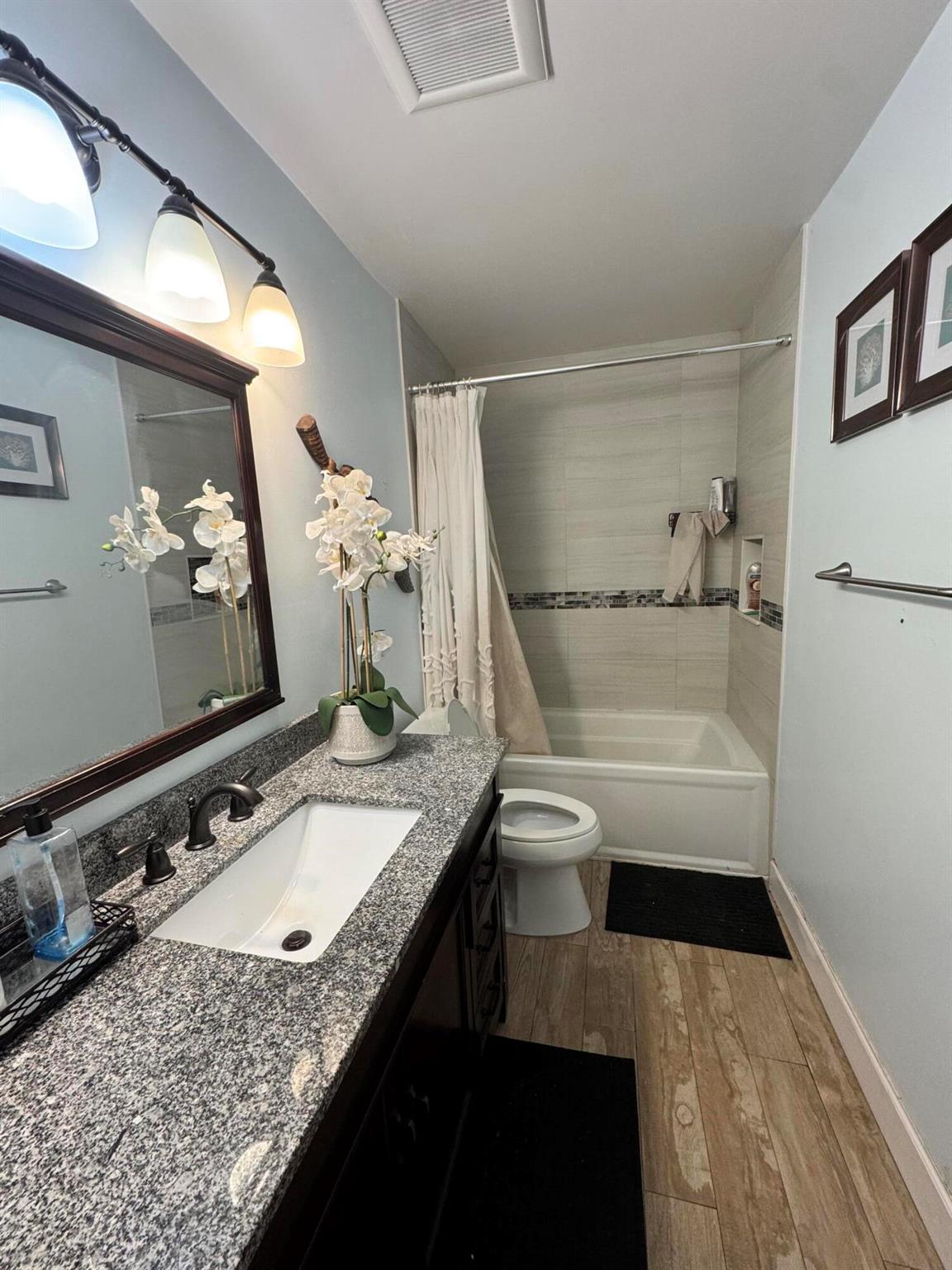 Step into this gorgeous corner-lot home, designed for family living and entertaining! Located on a quiet, private street, this spacious 3-bedroom, 2-bath residence with a 2-car garage offers style and comfort. The open-concept layout boasts a large living room and formal dining area, complemented by Cherrywood kitchen cabinets and a charming breakfast nook. Tile flooring flows throughout, with rich wood flooring in the bedrooms. Both bathrooms feature updated vanities, granite countertops, and modern tile work. Newer impact windows, sliding doors, and an entry door offer peace of mind. Enjoy the huge fenced backyard, perfect for privacy, hosting, or adding a pool. This move-in ready home is waiting for you--schedule your tour today!