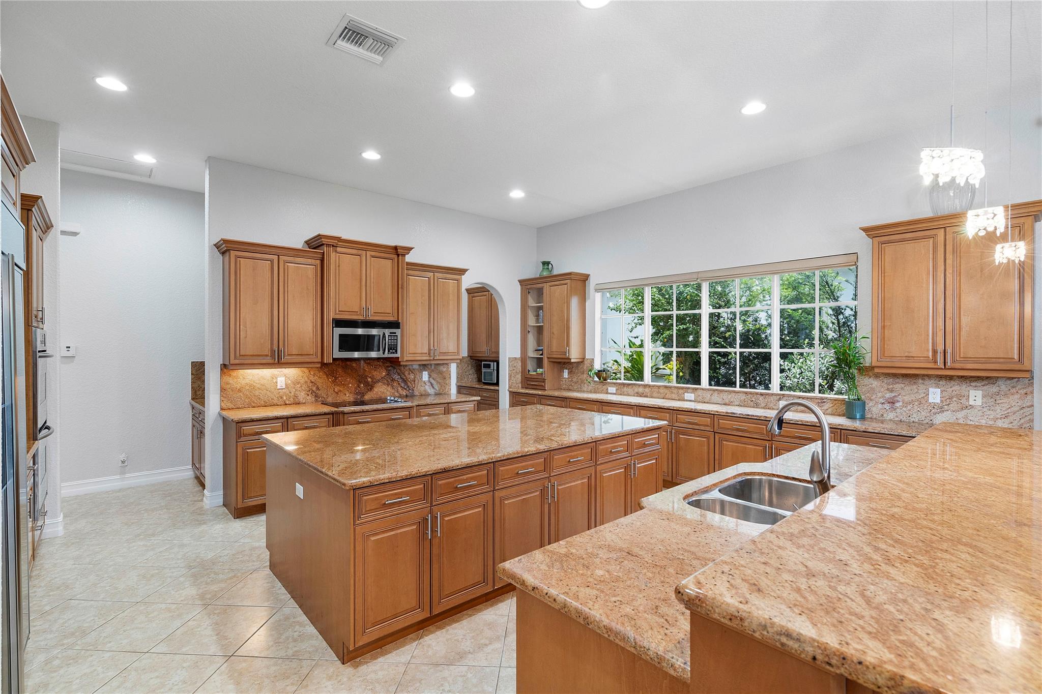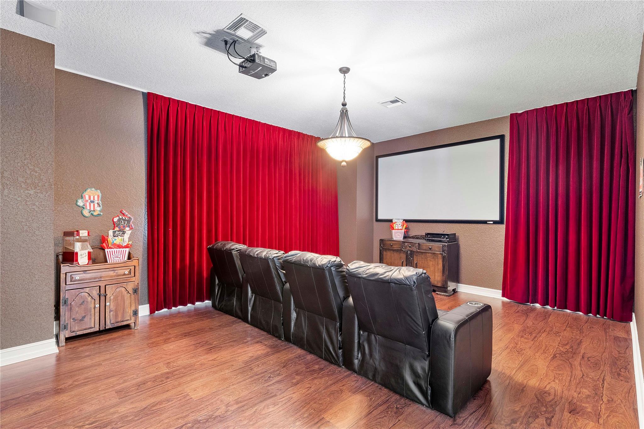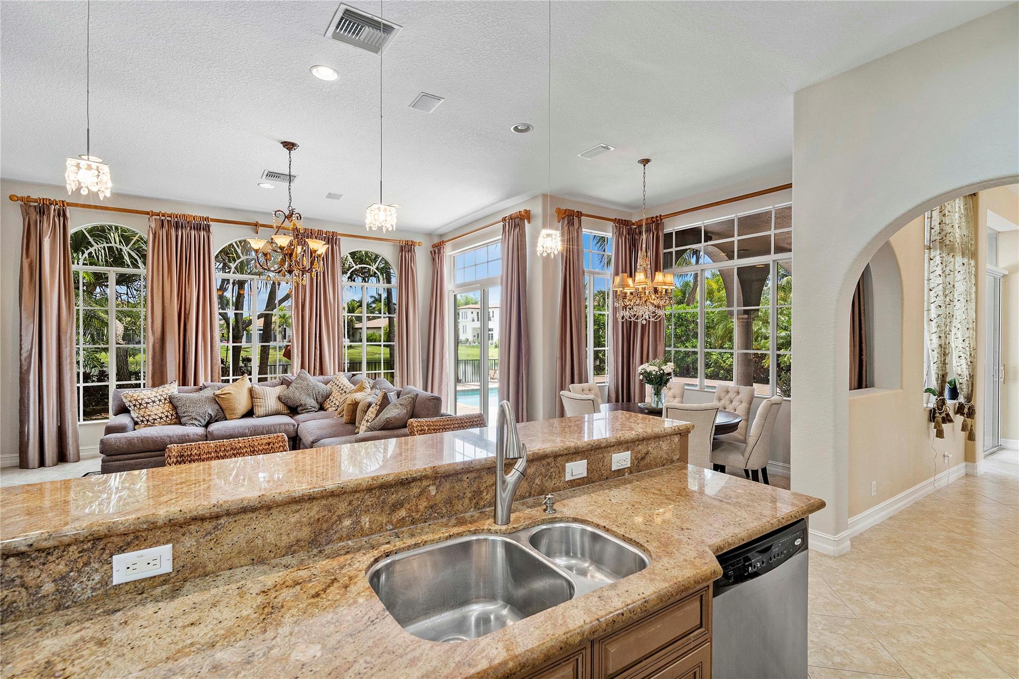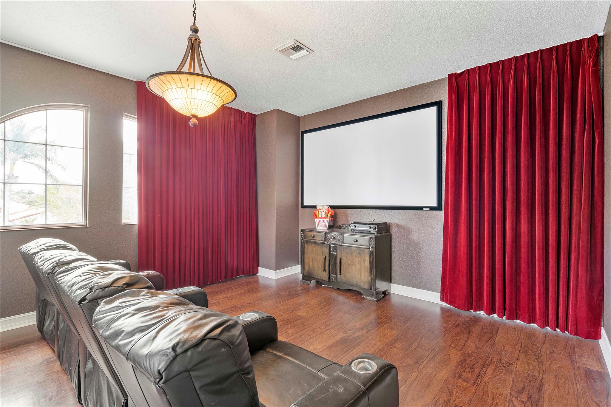 Welcome to this Luxurious HOME in Edgewood at Heron Bay! This waterfront estate features entry courtyard, 6-bedrooms 4.5 baths + 3 garages & tropical pool. This HOME is your castle ~ 5311 total sq ft. Gourmet kitchen perfect for entertaining - wait until you see the island! Tons of storage w/over 30 cabinets, custom pantry, snack bar, granite, stainless steel appliances - open with line of sight to the pool & patio. Royal style primary suite w/private lounging patio & water views. Enjoy movie night in your theater room complete w/red velvet curtains & popcorn maker. One bed & full bath on the 1st floor perfect for guests/home office. A+ Parkland schools, resort clubhouse, community pools, fitness, tennis center, playground, new Splash Pad, basketball, pickleball, event ballroom & more!