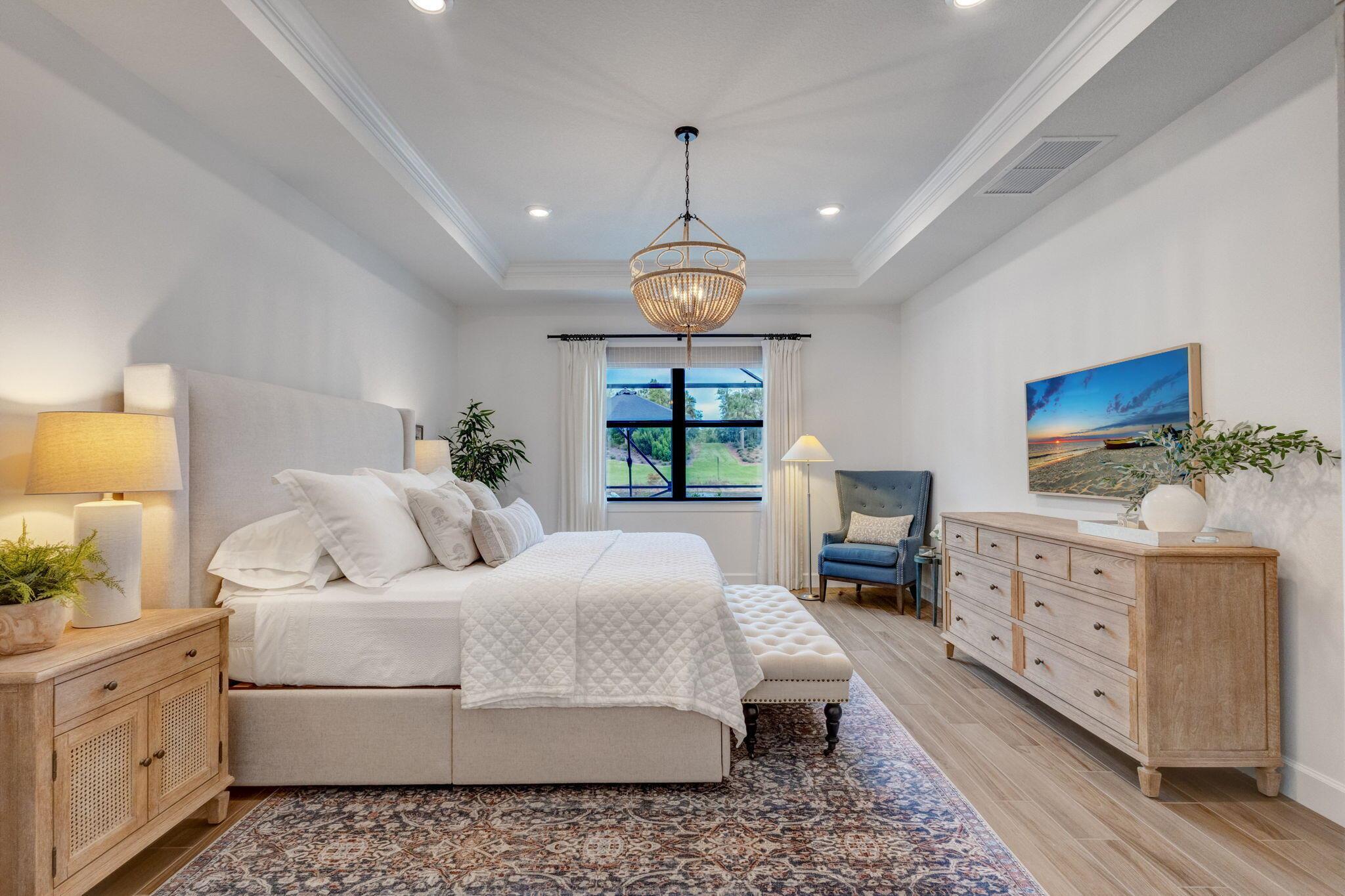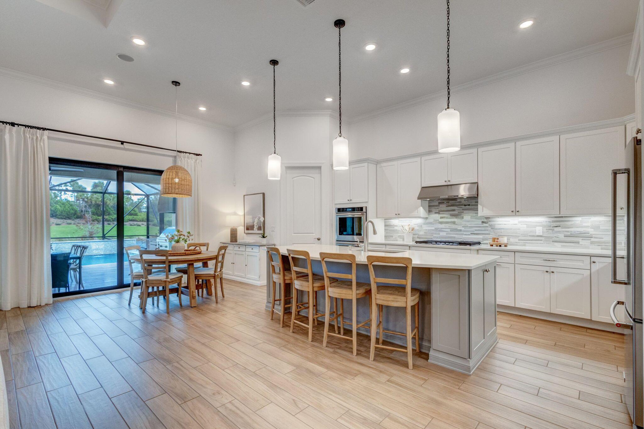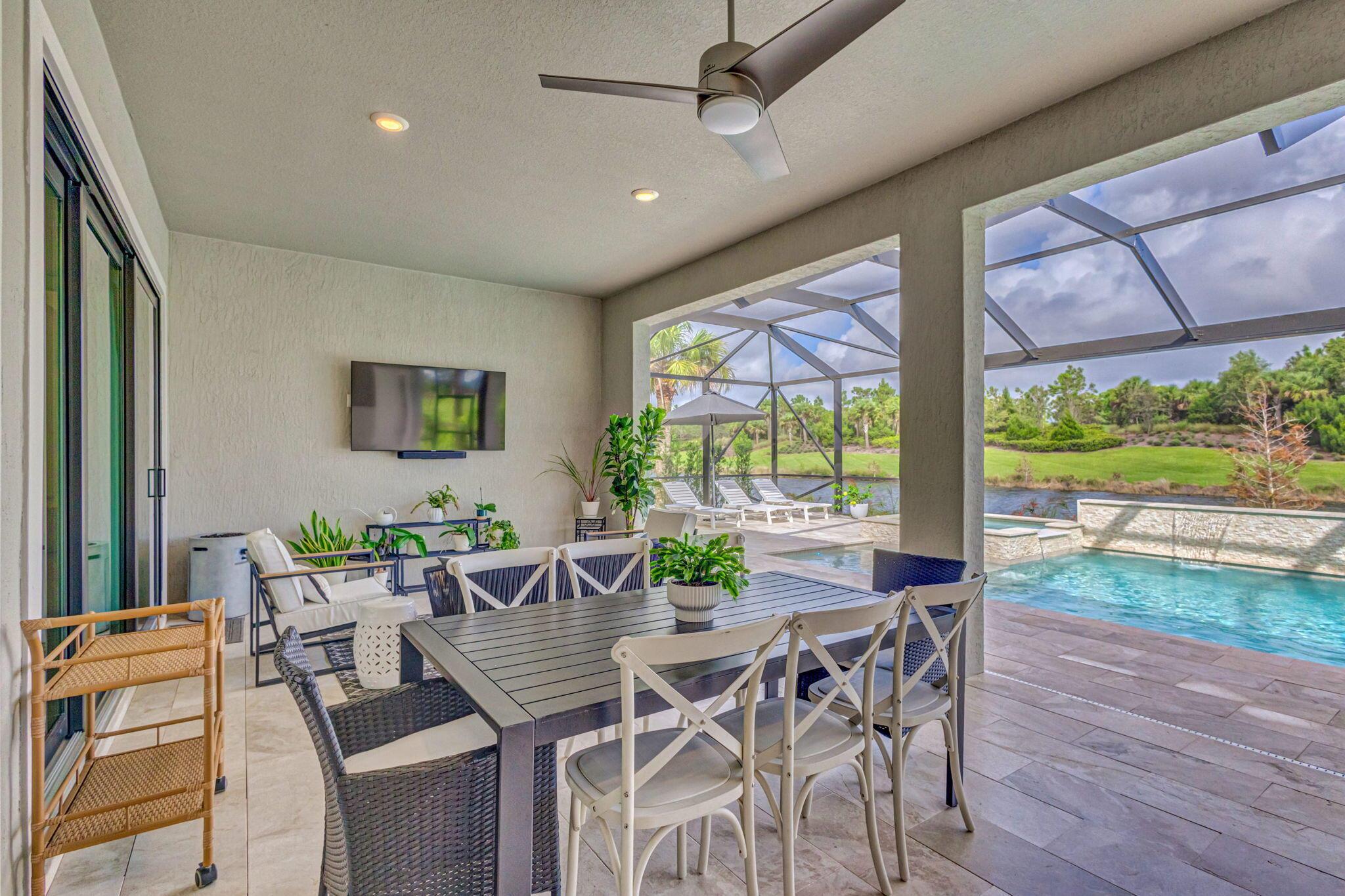 Sought-after single-story 3 bedrooms, 3.5 bathrooms, and a versatile den/office within 2,877 square feet of luxurious living space.Enjoy smart home technology with premium upgrades throughout. The gourmet kitchen includes a walk-in pantry, soft-close drawers, and cabinets. Elfa systems in all closets and the garage to ensure organized storage.The outdoor space is a true oasis, featuring a screened, heated saltwater pool and hot tub, built in 2022, with an Aqualink system, travertine flooring, and a seperate cabana bath. Entertain with the Lynx outdoor summer kitchen, complete with a double refrigerator, sink, and outdoor TV, enhanced by a WiFi extender.Impact doors and windows throughout, tankless water heater and so much more! Resort style amenities within this gated community.