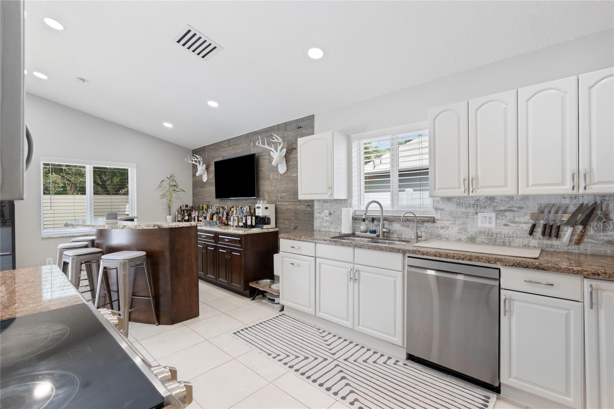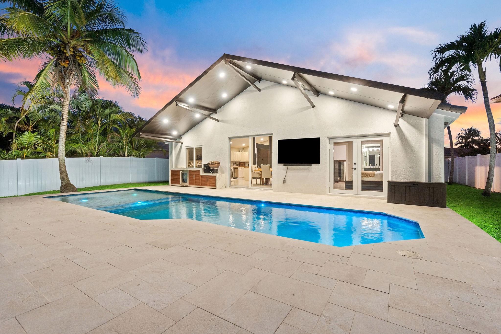 Discover one of the nicest turnkey homes in Stirling Palm Estates, fully renovated and move-in ready. This 3 bed 2 bath gem sits on one of the largest and most private lots with no through traffic. Upgrades include a new roof, impact windows and doors, a remodeled pool and deck with fire pit, outdoor kitchen, Tesla PowerShare home battery back-up, patio awning, and exterior lighting. Inside, enjoy custom wainscoting, LED lighting, an open-concept layout, updated appliances, and a built-in bar perfect for entertaining. The home also features a/c garage, Tesla charger, and modern finishes throughout. Located in a quiet, family-friendly community of just 70 homes with top-rated schools, scenic parks, and nearby police and fire services ideal for those seeking comfort, and peace of mind.