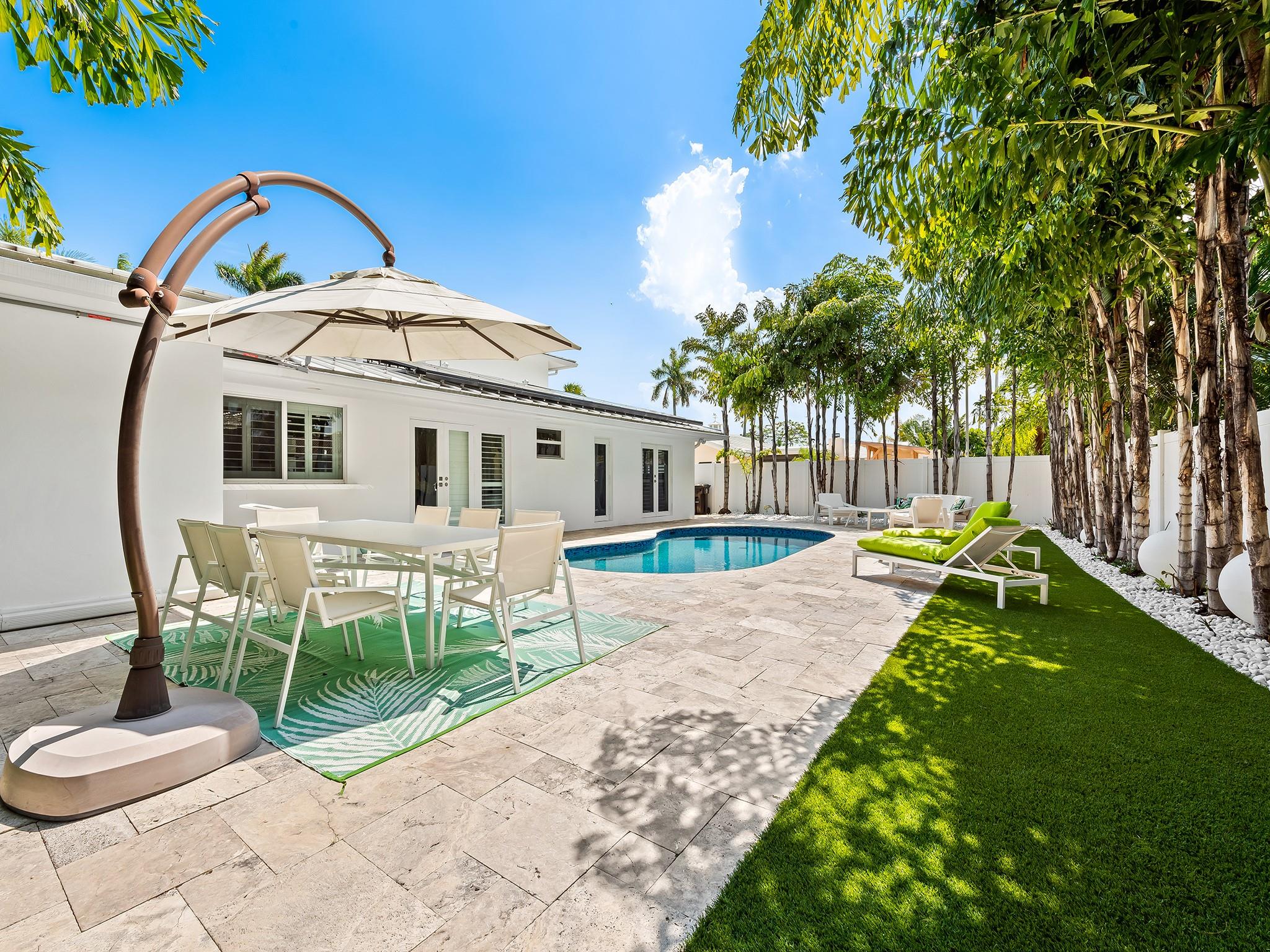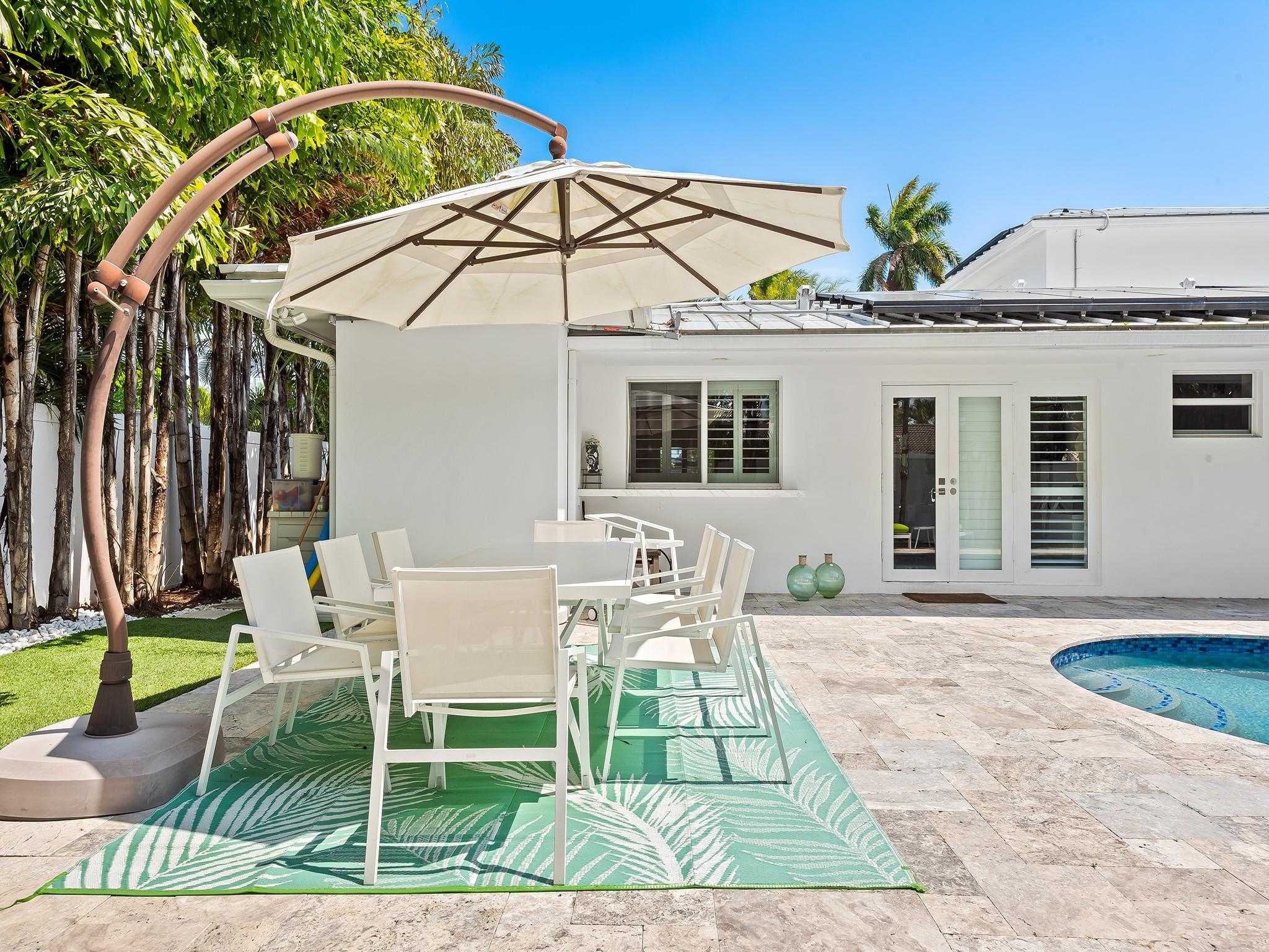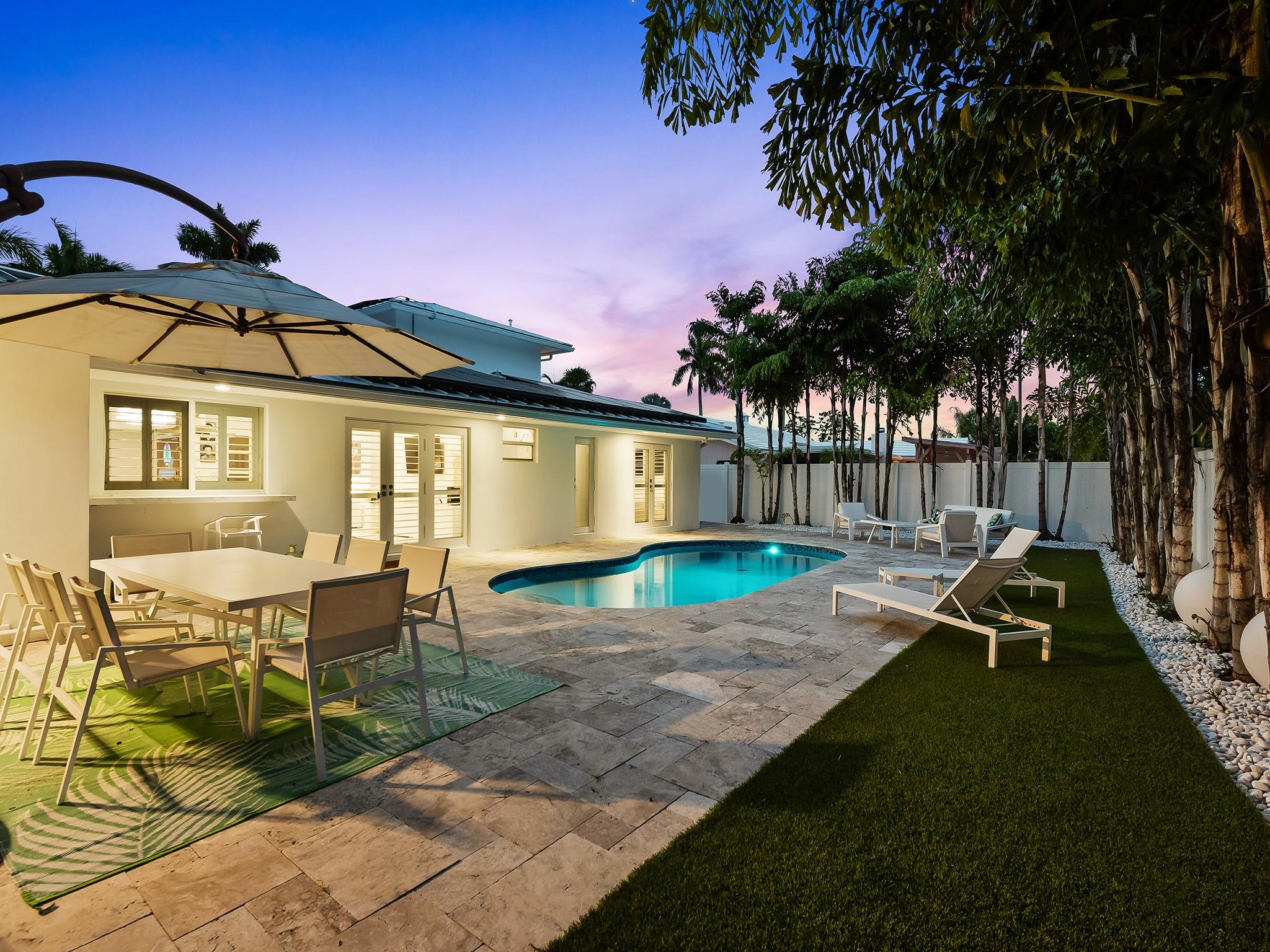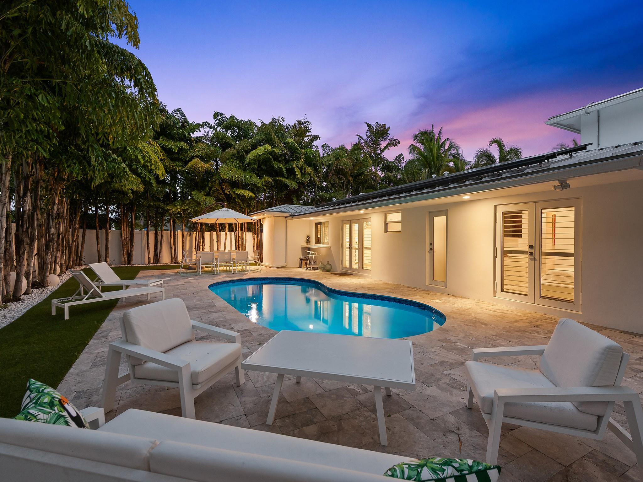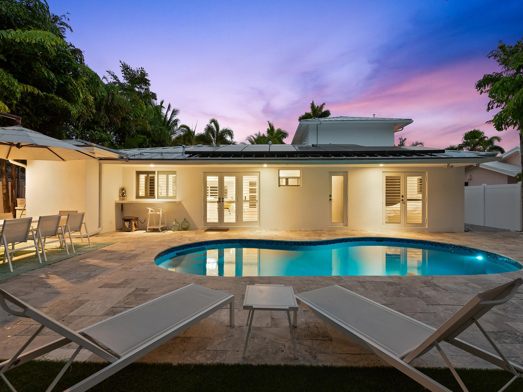 This 4 bedroom, 3 bathroom turnkey home combines thoughtful design, timeless curb appeal with energy efficiency, and storm-ready features including buried powerlines, high impact windows and doors, and a new metal roof with extra added clips ensuring wind speeds up to 165 MPH. This home sits on the only street in imperial point that is not in flood zone per the Broward County flood map, offering added security and lower insurance premiums. The electric bill ranges between $30 and $40 a month due to the newly installed solar panels. Underneath the home all of the cast iron plumbing has been replaced with PVC. Outdoors, unwind in the renovated saltwater pool and on the new pool deck, surrounded by lush landscaping. Conveniently located near shopping, dining, major highways and schools.