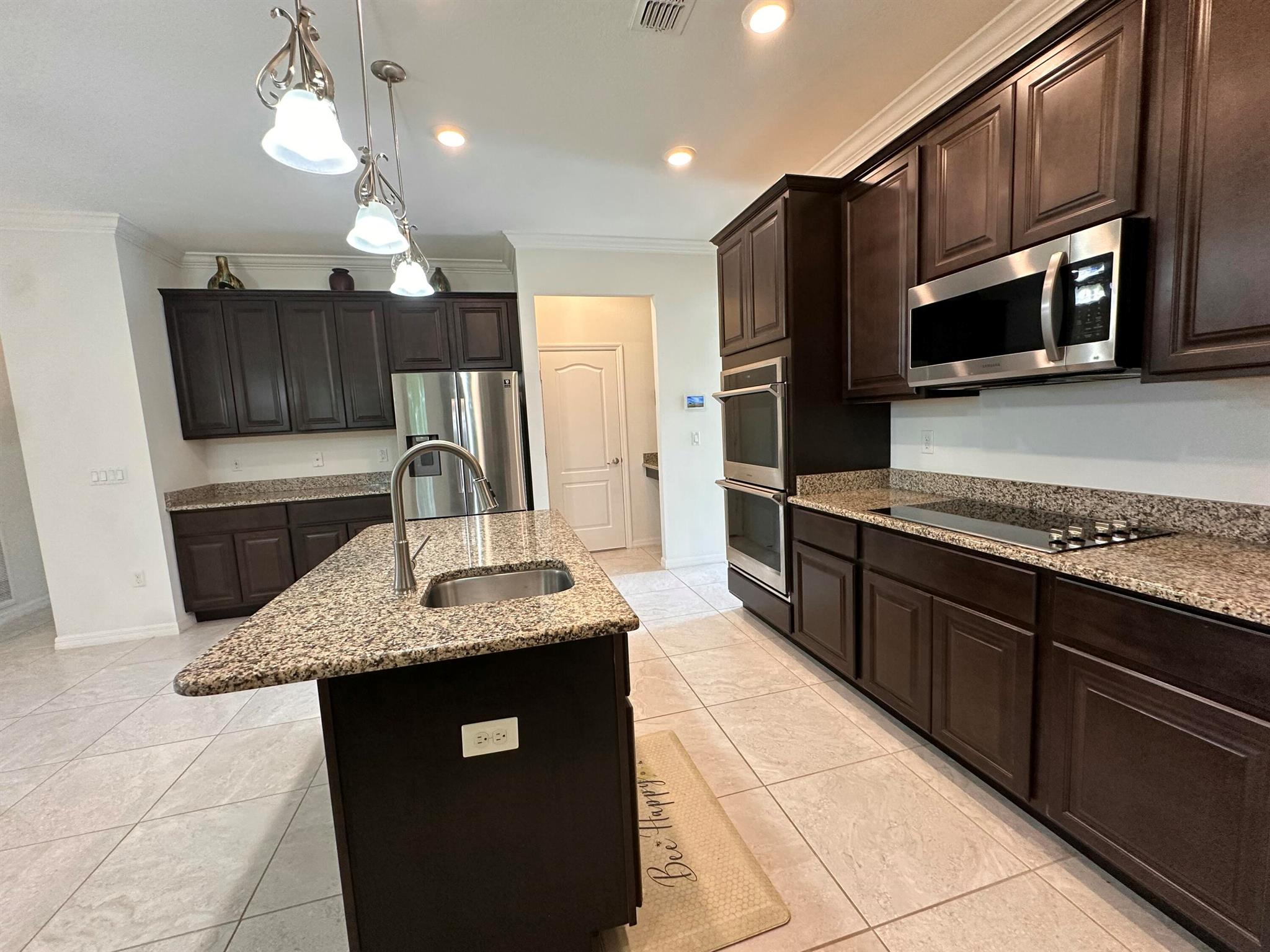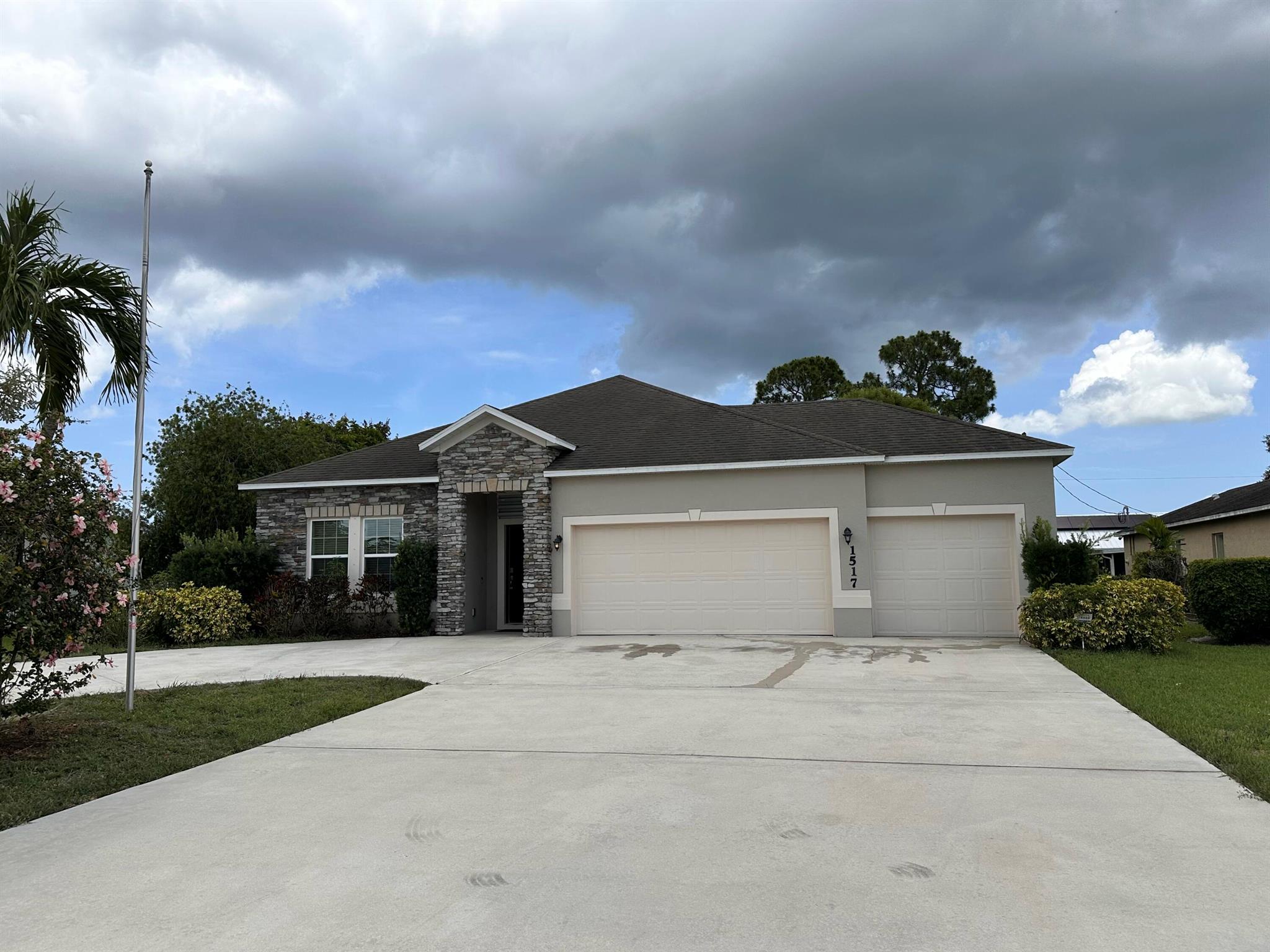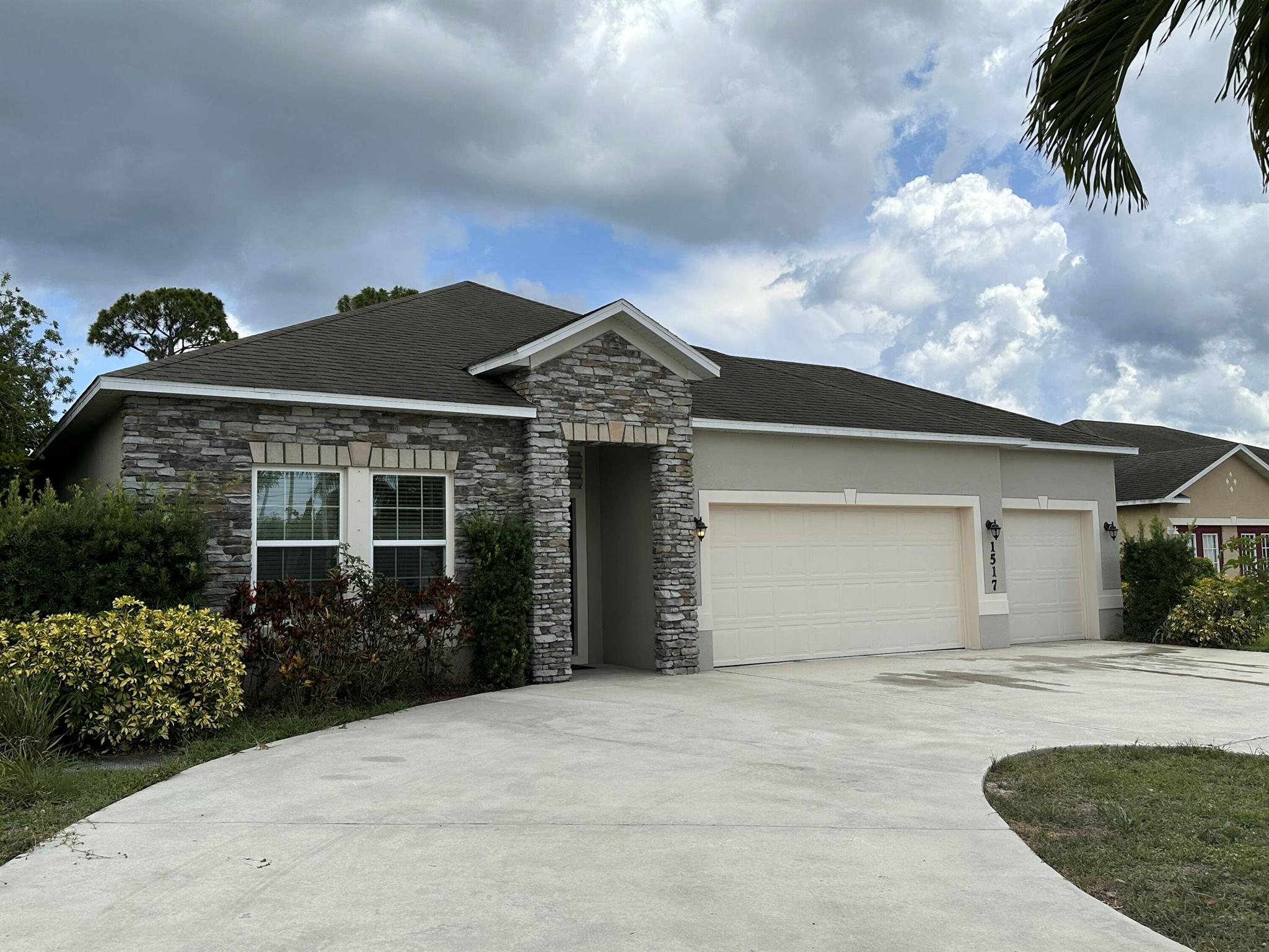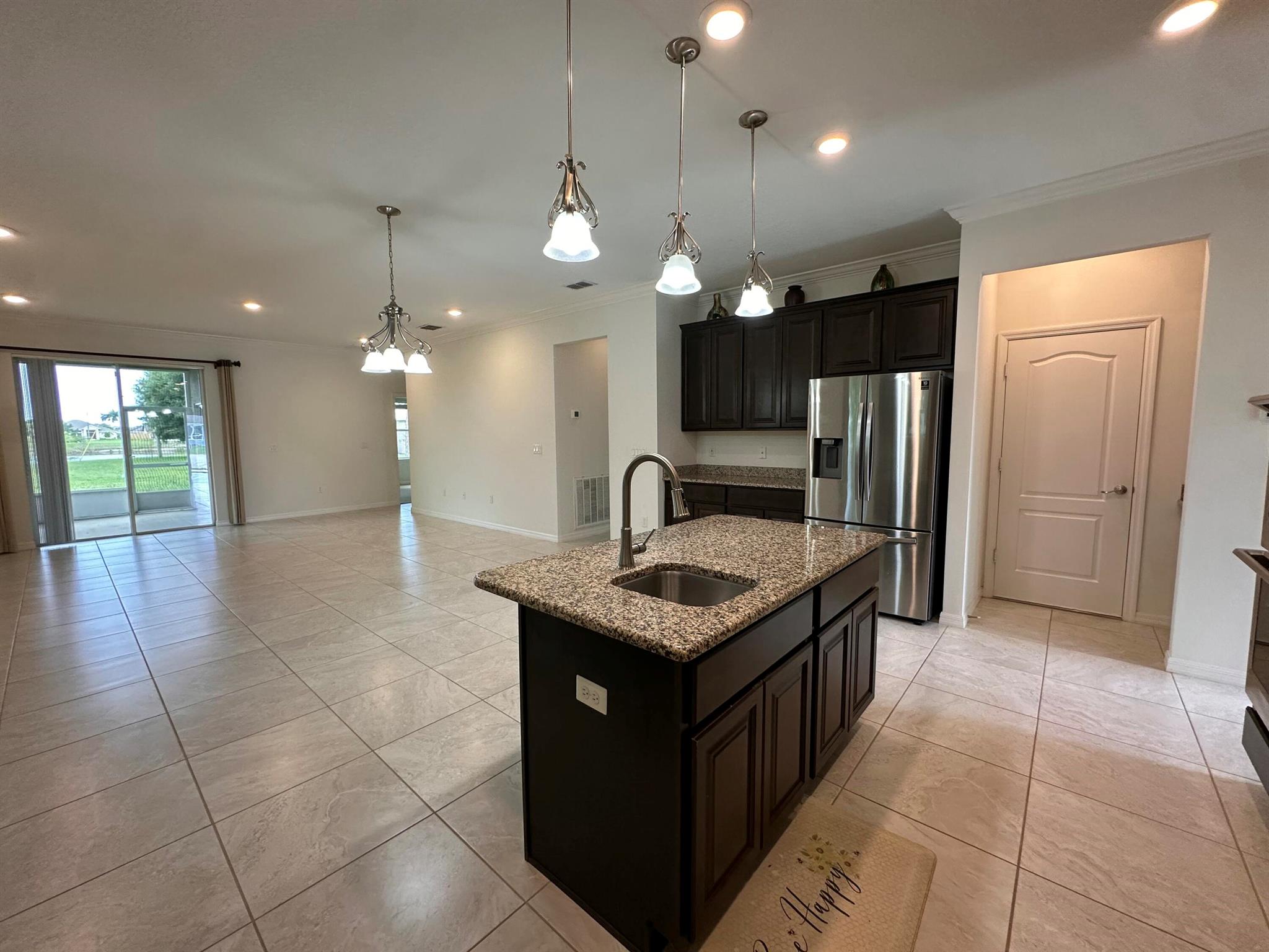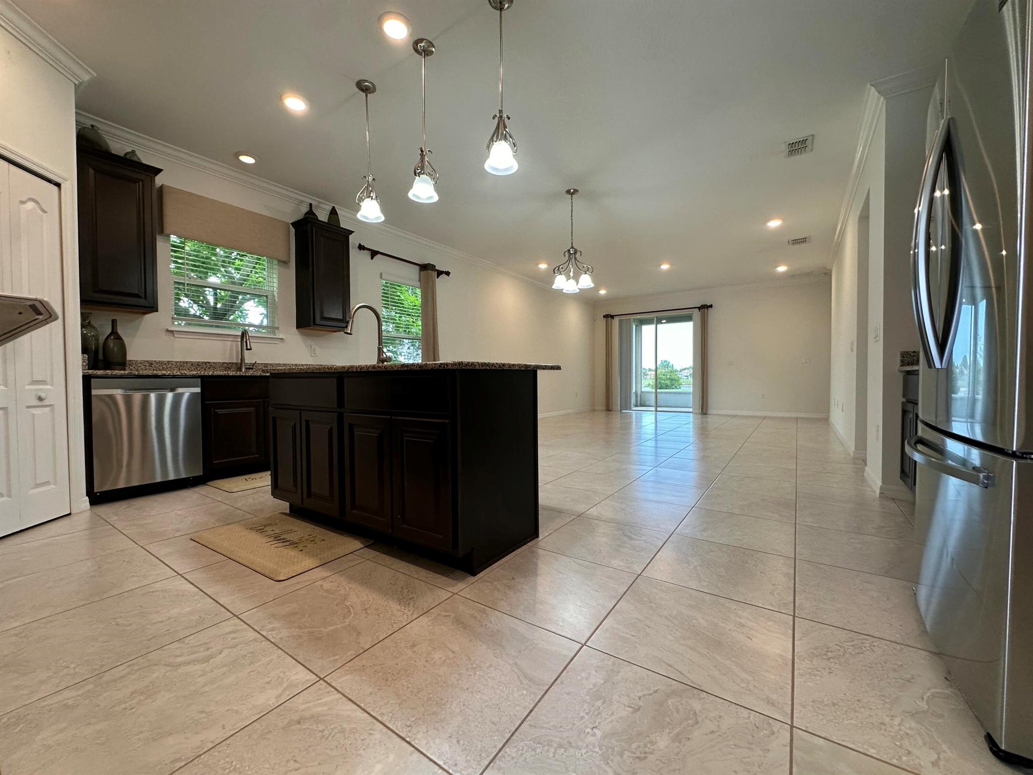 Welcome to this stunning 4-bedroom, 2-bathroom model home with screened patio and lake view. This home features an inviting circular driveway with a thoughtfully designed layout. The open-concept kitchen boasts granite countertops, stainless steel appliances, and ample cabinet space--perfect for cooking and entertaining. Enjoy the convenience of a dedicated office located in the garage, ideal for working from home. Additional highlights include a spacious air conditioned garage, modern finishes, and a comfortable living area designed for family living. Don't miss this move in ready gem!