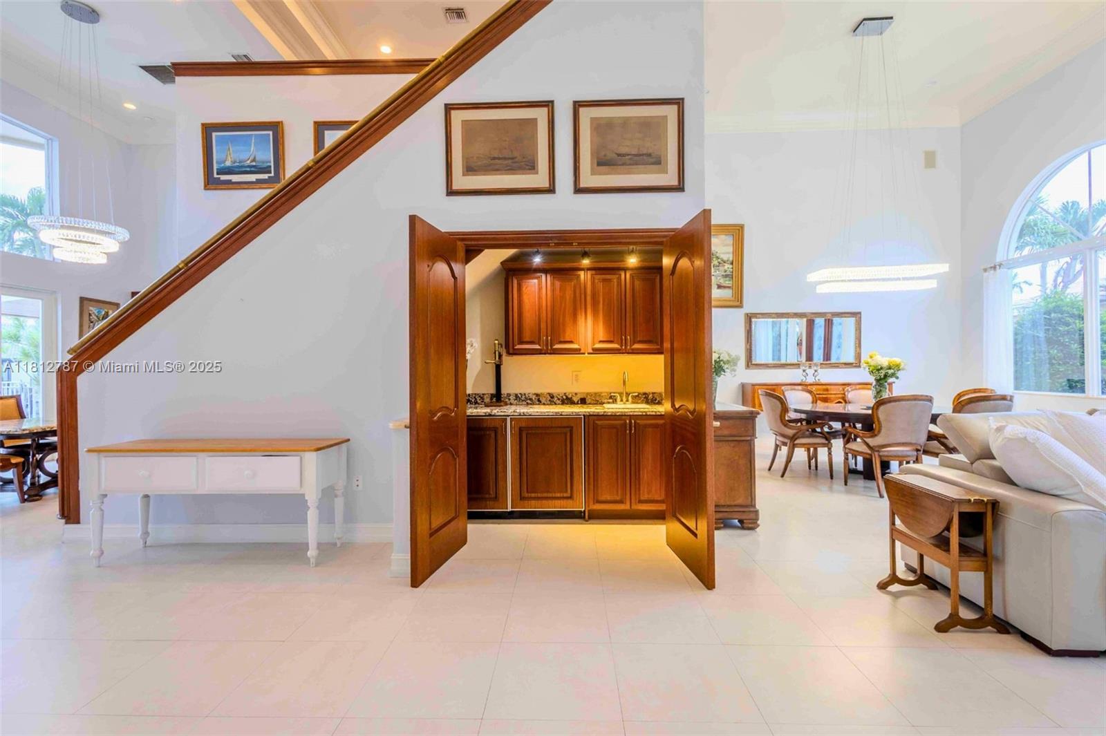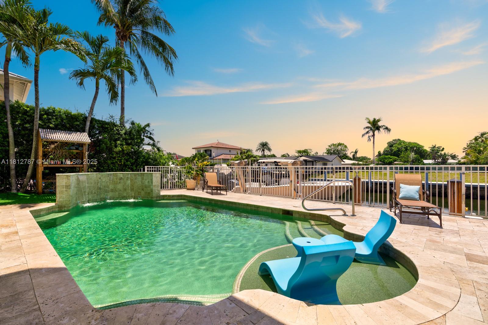 Experience water front luxury in Venetian Isles with this 4-bed, 3.5-bath custom home offering 90 ft of deepwater frontage with direct ocean access and no fixed bridges. Enjoy breathtaking sunrises and sunsets from the heated saline pool or through expansive impact windows. The interior boasts two primary suites, a loft/office, and an oversized attic for storage. The gourmet kitchen features high-end appliances and flows into open living spaces with a hidden Sub-Zero bar for entertaining. The composite dock includes water, electricity, and an ice maker, plus a 20,000-pound boat lift. Additional features: 3 A/C units, 500-gallon propane tank, and whole-home generator.