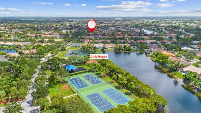 Beautifully maintained 3 bed, 2 bath home on a spacious fully fenced corner lot! Featuring a NEW 2024 roof, brand-new impact windows and doors, new A/C, recent interior and exterior paint, and stylish darkening dual shades. This one-story home offers high vaulted ceilings, tile floors throughout, custom built-in closets, and a large open living/dining area. The grand backyard is filled with fruit trees and has plenty of space to add a pool. Enjoy community amenities like a pool, tennis/pickleball and basketball courts, kids playground, and 24-hr guarded security. Conveniently located in a top-rated school zone, close to shops, restaurants, and major roads. Features a House Alkaline Water System Filtration System but is not part of the sale.