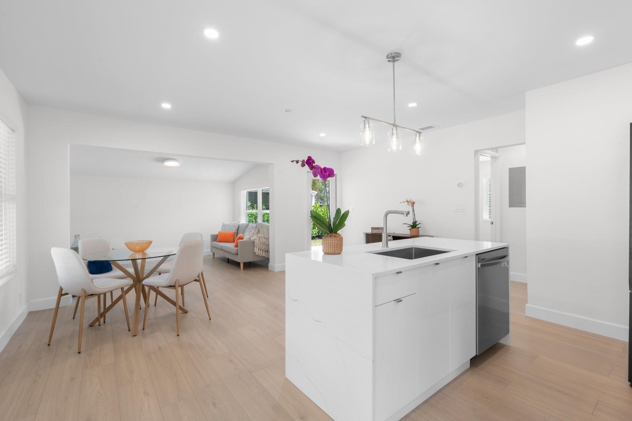 Your new home is near the beach, bowling, movies, restaurant scene, & all that Dania Pointe, Hollywood and Ft Lauderdale have to offer. This 3-bed, 2-bath corner lot completely updated home features a fully fenced yard, expansive driveway, and covered back terrace ideal for outdoor entertaining. Full hurricane-impact windows, 2020 roof, and a new impact-rated front door. Inside, you’ll find new luxury vinyl flooring, LED recessed lighting, quartz waterfall countertops, and sleek cabinetry. Brand-new appliances. Updated bathrooms and a private primary suite with walk-in closet complete the interior. Fresh Paint Inside and Out. Enjoy living close to the beach and FTL entertainment. Only 4 miles to the ocean, 4.7 miles to FLL Airport. No HOA - No Restrictions