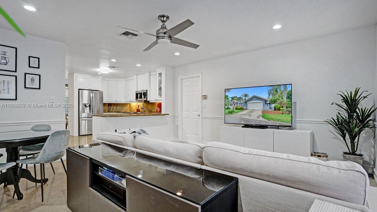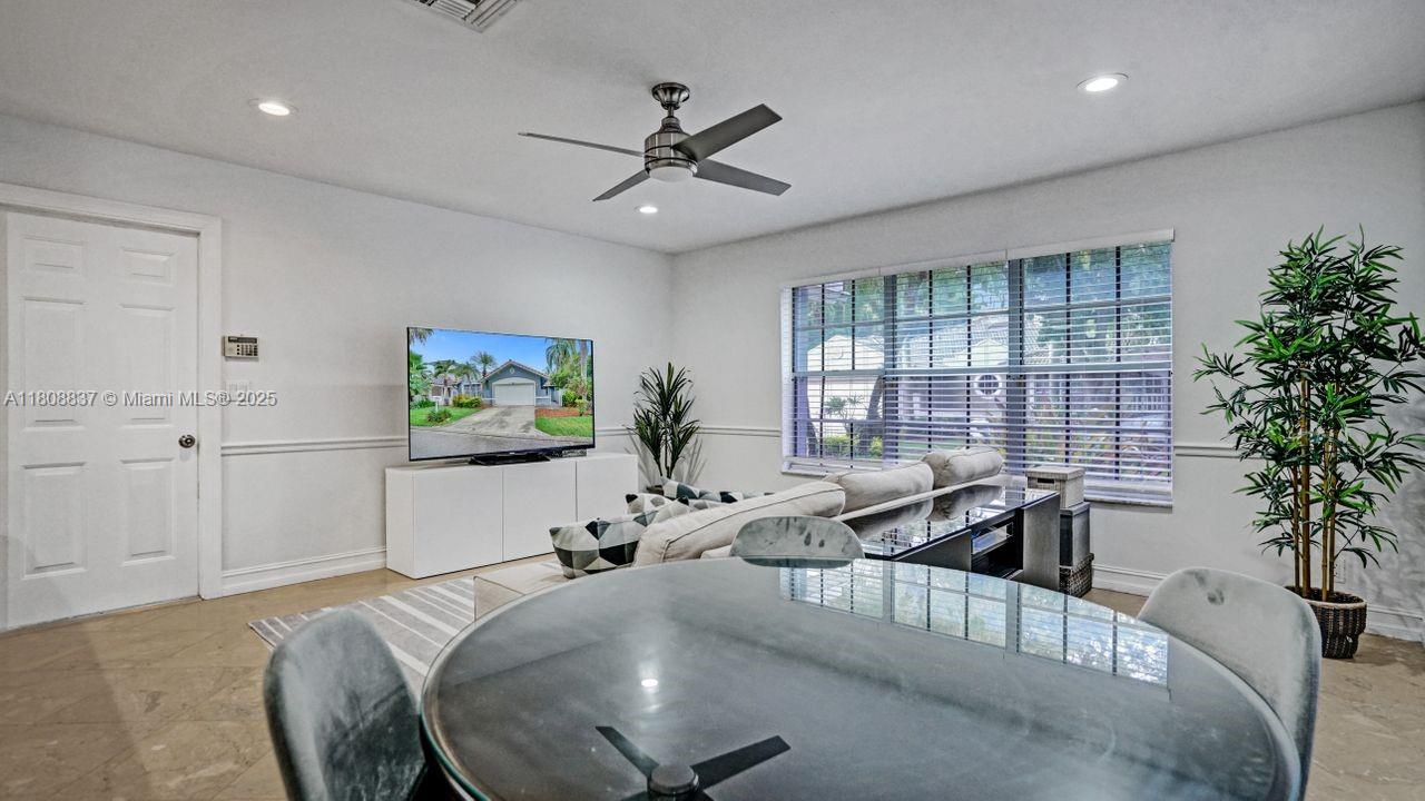 This is a charming and gorgeous home in very attractive Captiva Cay in Weston! Beautifully remodeled one-story 3 bedroom and 3 bath home with vaulted ceilings, large formal dining and family room area. Marble flooring throughout house, accordion hurricane shutters, freshly painted and so much more. Enjoy oversized backyard on covered patio with lush landscaping. and plenty of room for a pool. Landscaping and irrigation covered by HOA. Close to best schools and Weston Town Center. This home will not last!