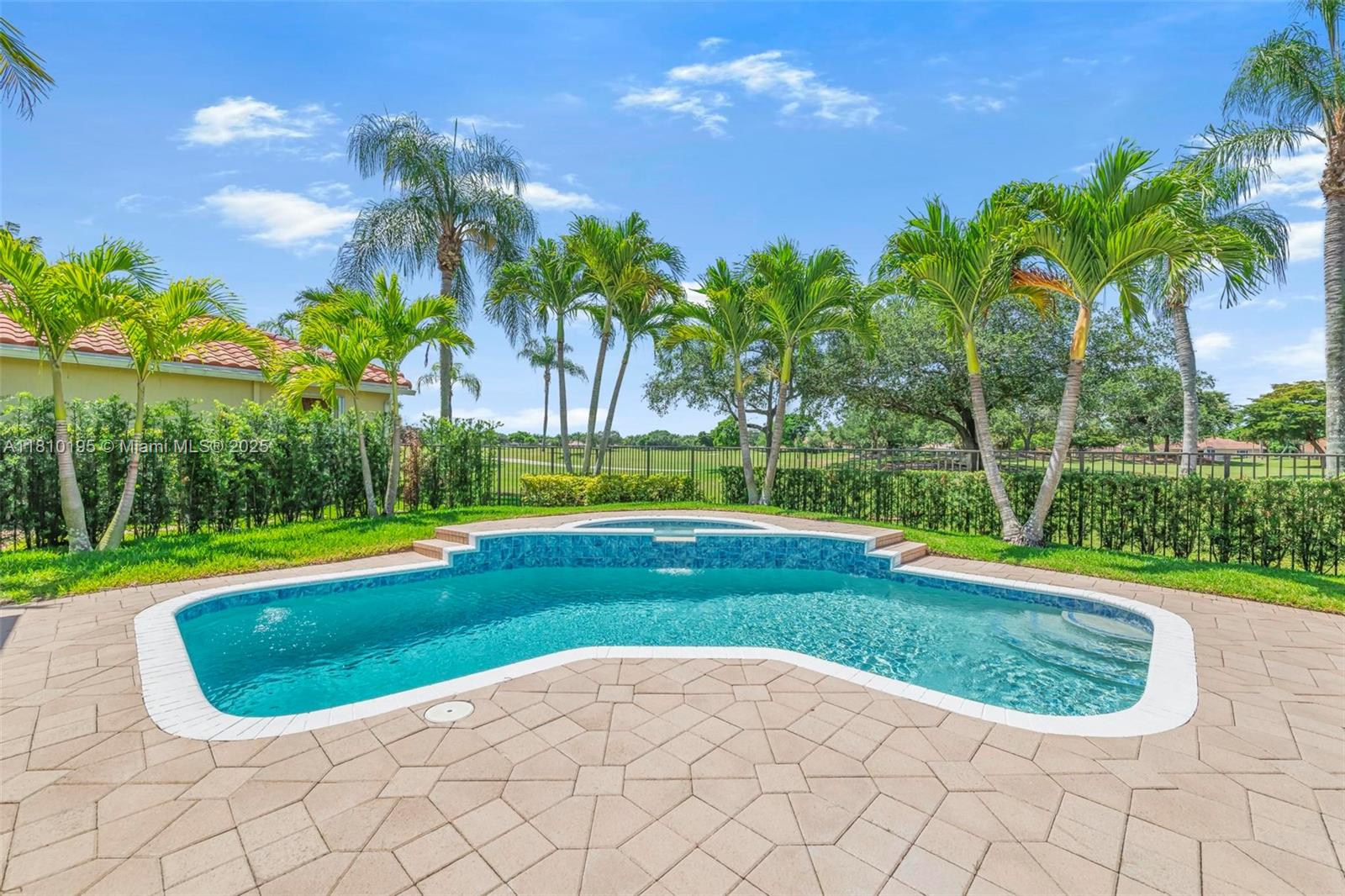 Luxury living awaits in this stunning one-story pool home on the golf course in Weston Hills Country Club. Featuring a brand new roof and 2-zone WiFi A/C, this home offers both style and peace of mind. Relax and enjoy the resurfaced pool & spa with an amazing salt water system and tranquil golf course views! The custom kitchen is truly a centerpiece and boasts quartz countertops, waterfall island, and premium Monogram & Gaggenau appliances. Enjoy expansive living spaces highlighted by updated flooring, a modern fireplace wall + freshly painted interior/exterior. The split 5-bedroom plan includes one room used as an office. The open layout boast natural lighting and space and is ideal for entertaining. 3-car garage! Excellent location with top-rated schools complete this exceptional home!