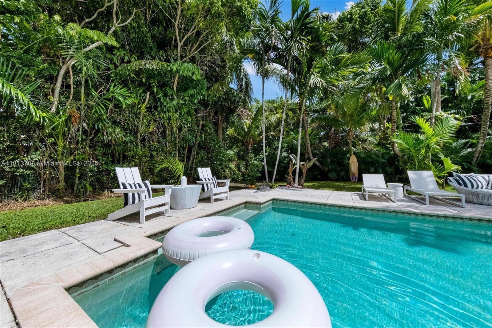 A Must See to Appreciate Expansive 15,700 sq ft tropical lot in NE Miami Shores. Renovated in 2005. This rare-gem features a secluded backyard with an oversized pool and covered patio, lush landscaping—perfect for year-round entertaining and relaxation. Inside, a beautiful bright, open layout with skylights, abundant natural light, and a working fireplace that adds a cozy charm. The one-car garage and circular driveway offer ample parking for family and guests. Whether you’re looking for a move-in ready retreat or a place to build, this unbeatable location offers endless potential. Don’t miss this exceptional opportunity—drive by and see the beauty of this 15,700 sq ft lot by the bay. Survey Available, Call for more details !