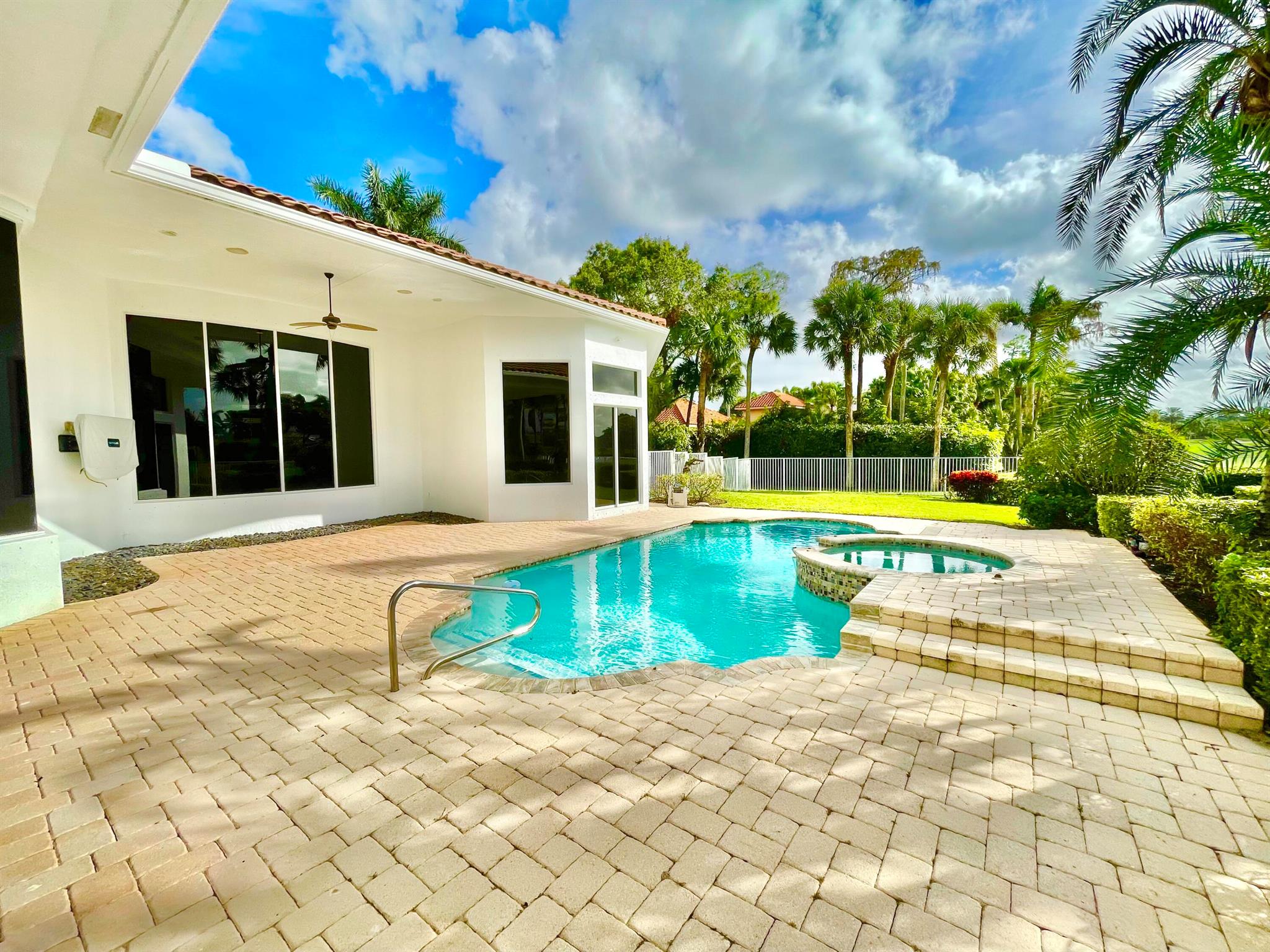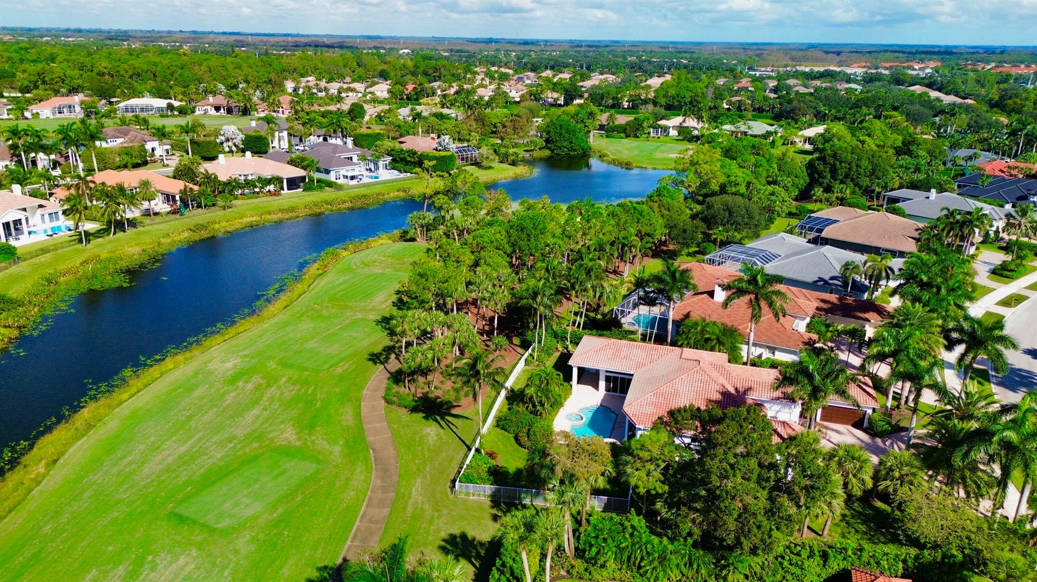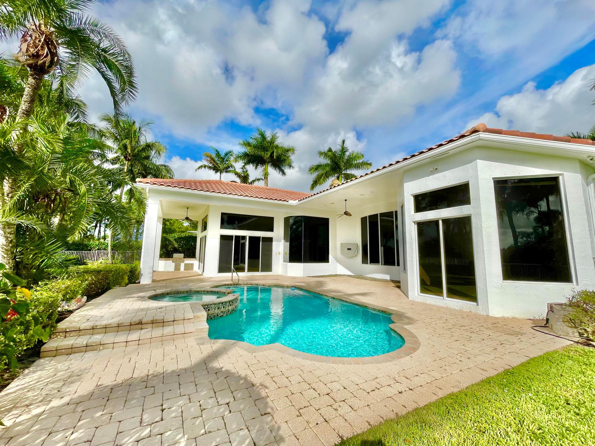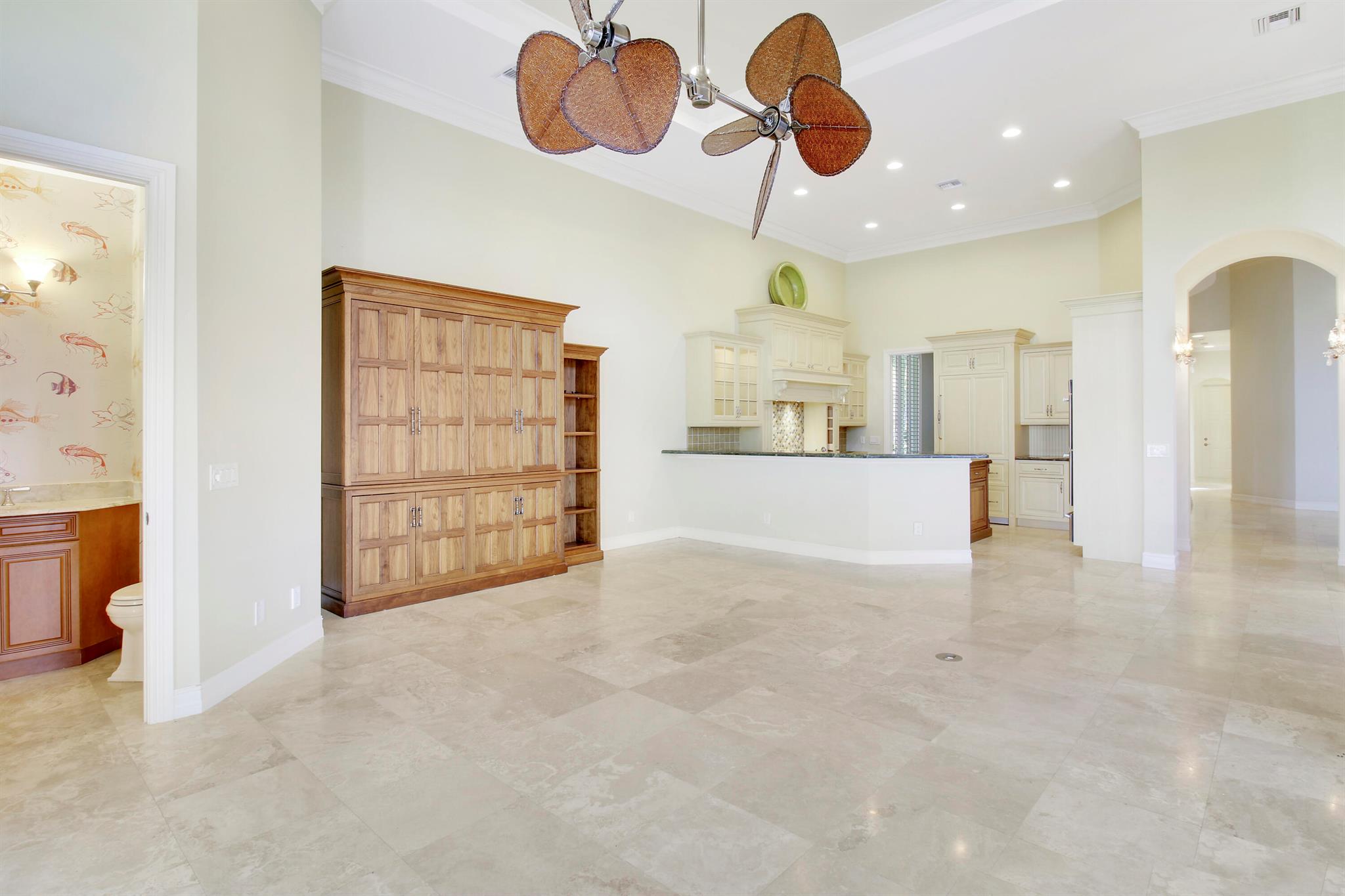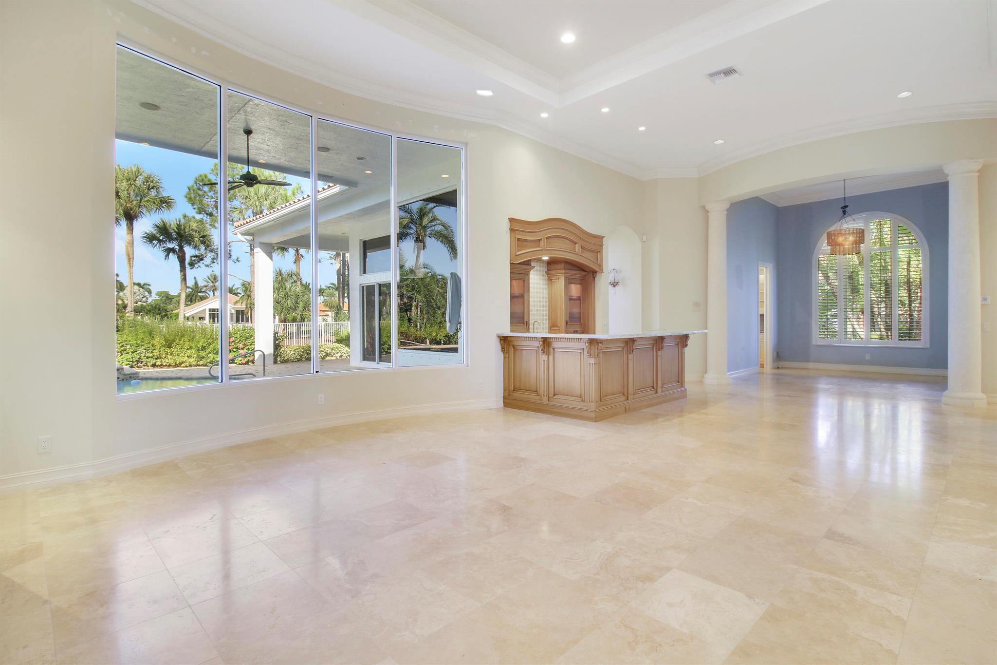 MAJOR PRICE REDUCTION! BRING OFFERS! Nestled on nearly a half acre estate lot with picturesque sunset, golf and lake views. Over 3,600 SF of open and expansive living space with 3 bedrooms + a den/office, 4 full baths, 2 half baths, private pool and spa. Luxurious appointments such as a chef's kitchen, marble floors, custom wet bar, enormous primary suite with lake and golf views. This house has so much potential to be everything you could ever want! Membership is not mandatory but is available if you'd like to enjoy the country club lifestyle with an exceptionally renovated golf course as well as fitness, dining, racquet sports, and social events. If you're looking for a oversized estate lot with timeless views in one of WPB's finest neighborhoods, then this is the house for you!