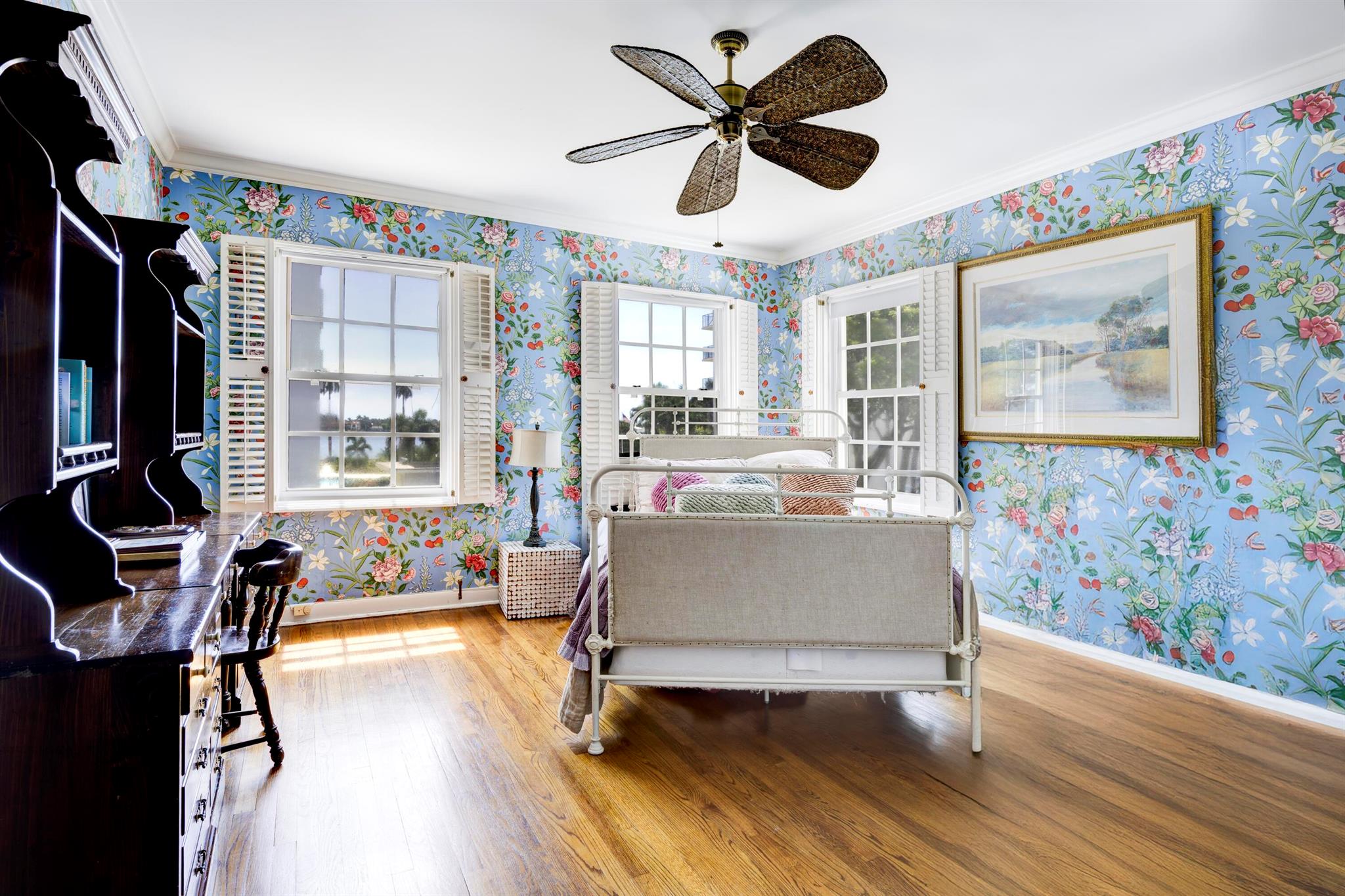 Timeless charm meets comfortable elegance in the heart of West Palm Beach. This Georgetown-style two-story pool residence blends timeless character with thoughtful upgrades, creating the perfect setting for relaxed living and effortless entertaining.Inside, Miami Dade Pine hardwood floors, elegant crown molding, and soaring 9-foot smooth ceilings set the tone. Custom built-ins offer both beauty and function throughout. Gather in the formal living room around the decorative fireplace or take in garden views from the bay window and adjacent home office. First floor features bedroom with wall-to-wall built-in shelving and pool view. Full downstairs bath with counter height vanity, tiled countertops imported from Bali, and a walk-in shower with glass doors and tiled flooring.