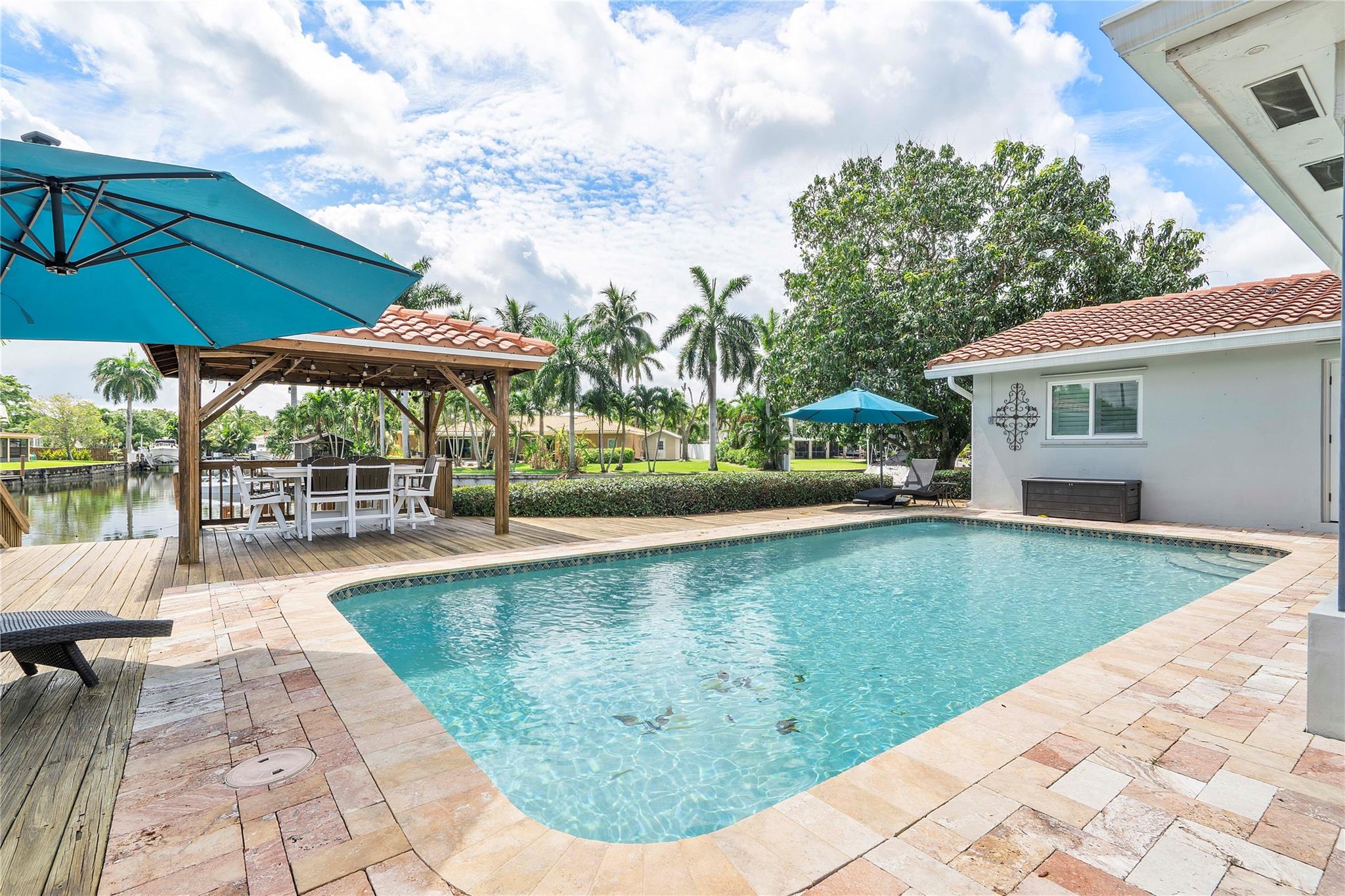 This home encompasses Florida living. A 4/2 beauty with an incredible chef’s kitchen equipped with top of the line Wolf/Monogram appliances, a massive 16-ft stone island, and plenty of room for entertaining. The backyard is your private resort with a pool, pergola, and a dock ready for boating adventures to the ocean. Impact windows and doors for peace of mind, and no HOA to cramp your lifestyle. Sleek, modern, and ready to impress.