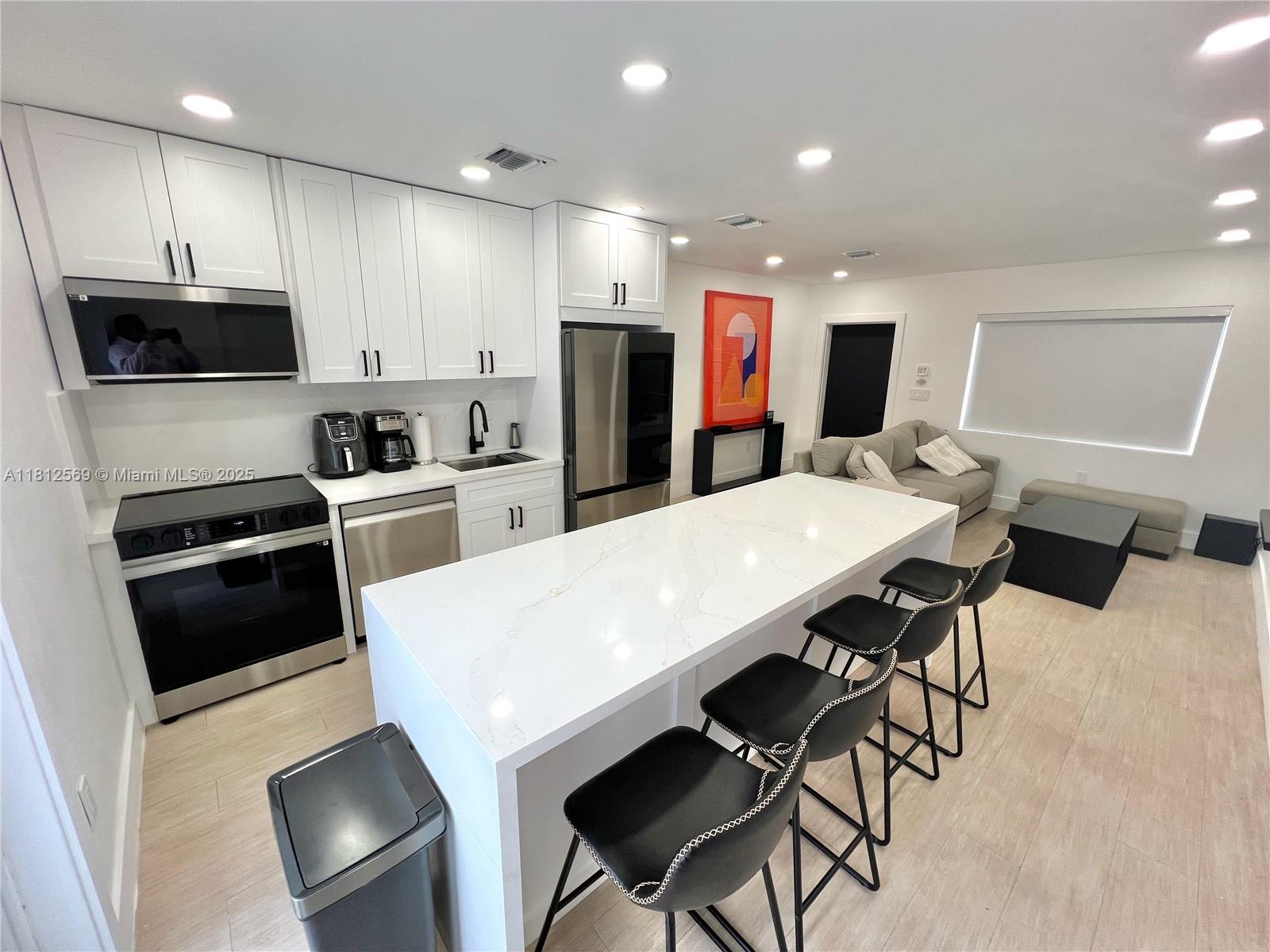 Absolutely stunning, fully furnished home—completely renovated from top to bottom! This turnkey property features all-new electrical, plumbing, appliances, kitchen with large island and elegant quartz countertops, as well as new walls, roof, flooring, and water heater. Enjoy resort-style living with a brand-new pool, turf-covered backyard, hot/cold outdoor shower, updated stairs, and sleek new driveway. No detail was overlooked in this modern transformation—move right in and start living your dream!