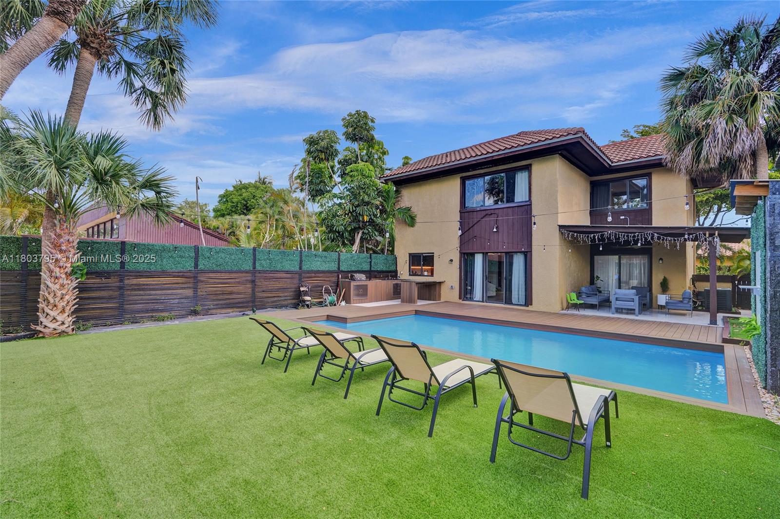 Fall in love with this fully renovated designer home in the exclusive gated California Club! Boasting one of the largest backyards in the community, this private retreat features a saltwater heated pool, outdoor sauna, and an incredible summer kitchen with island and sink—perfect for entertaining. Inside, enjoy high-end finishes throughout, including Italian doors, smart LED lighting, a custom walk-in closet, separate tub and shower, and a full smart home system. Purified water system for the entire house, updated A/C, and low HOA. This is luxury, comfort, and convenience wrapped into one exceptional home Nestled in a quiet, family-oriented neighborhood just minutes from world-class shopping and dining. A rare opportunity to enjoy the best of indoor-outdoor living.