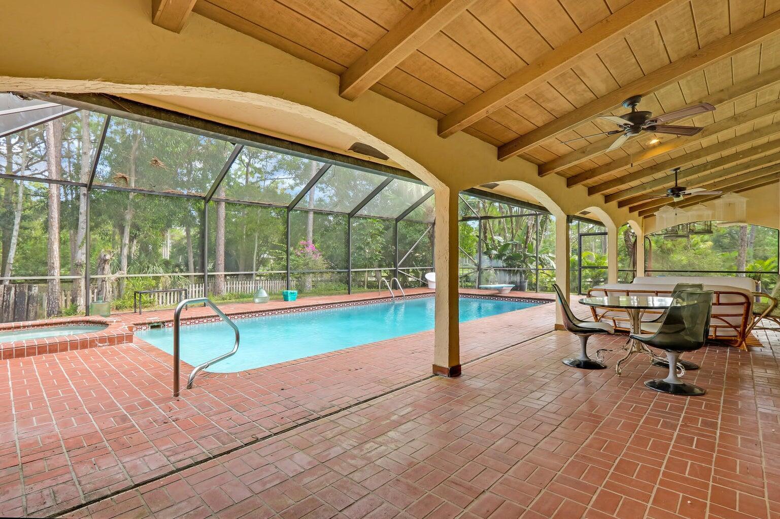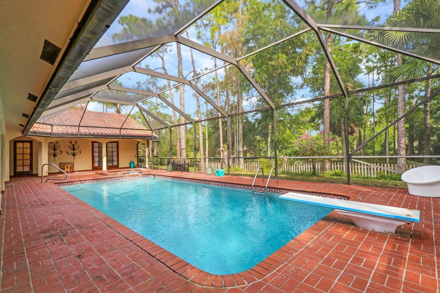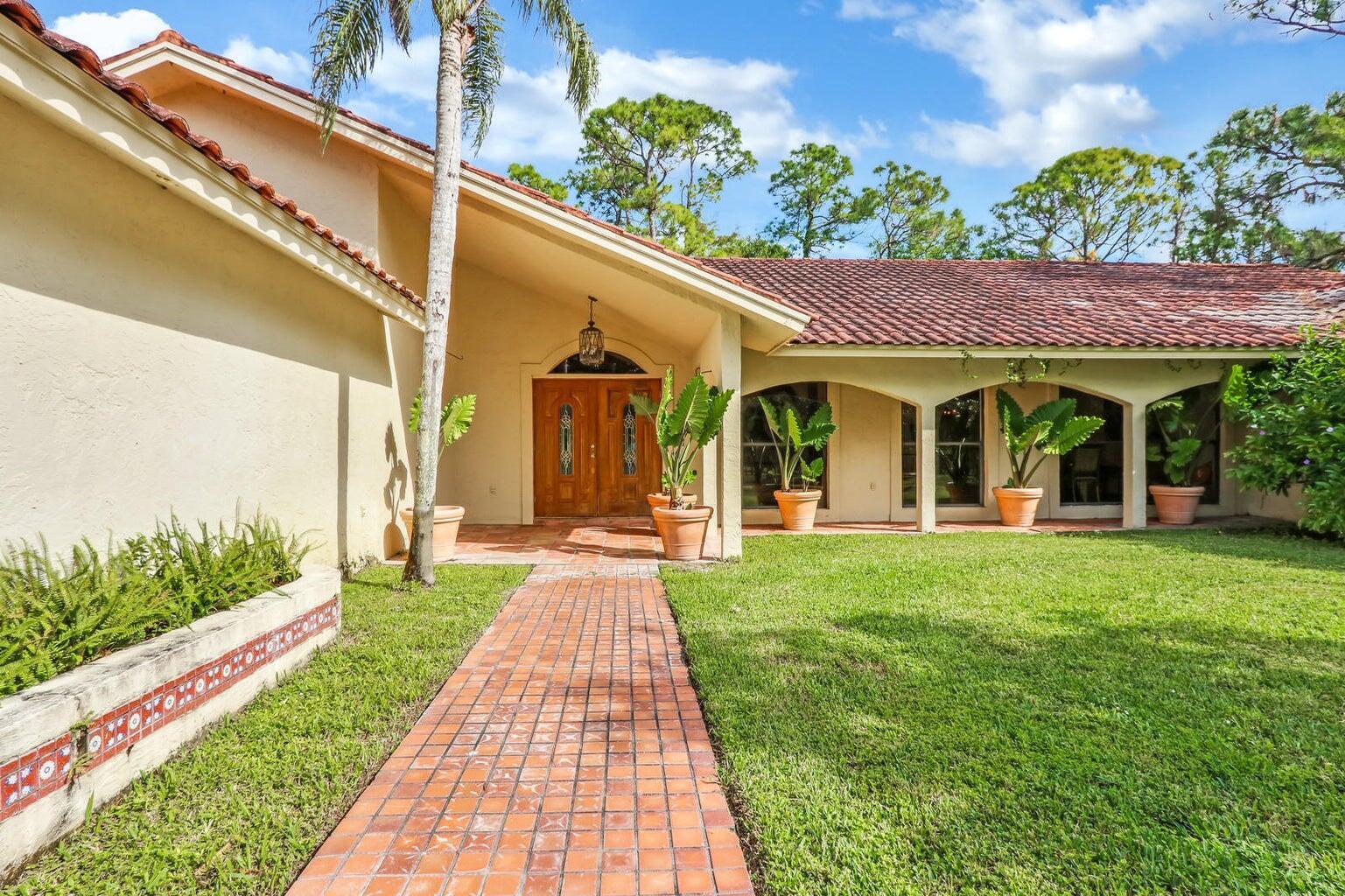Discover 5 acres of equestrian charm in the highly sought-after, gated community of Homeland. This spacious 6-bedroom, 4-bathroom pool home features a comfortable and functional layout with generous living areas, an updated primary suite, and new appliances. Outdoors, the property is perfectly equipped for the equestrian lifestyle, offering a 12-stall barn and paddocks shaded by mature Florida pines. A screened-in pool and patio area provide a quiet retreat, ideal for relaxing after a day. With direct access to scenic riding trails and just minutes from Wellington's premier equestrian venues, fine dining, and shopping, this home offers the ultimate blend of laid-back luxury and equestrian convenience in one of South Florida's most desirable communities.