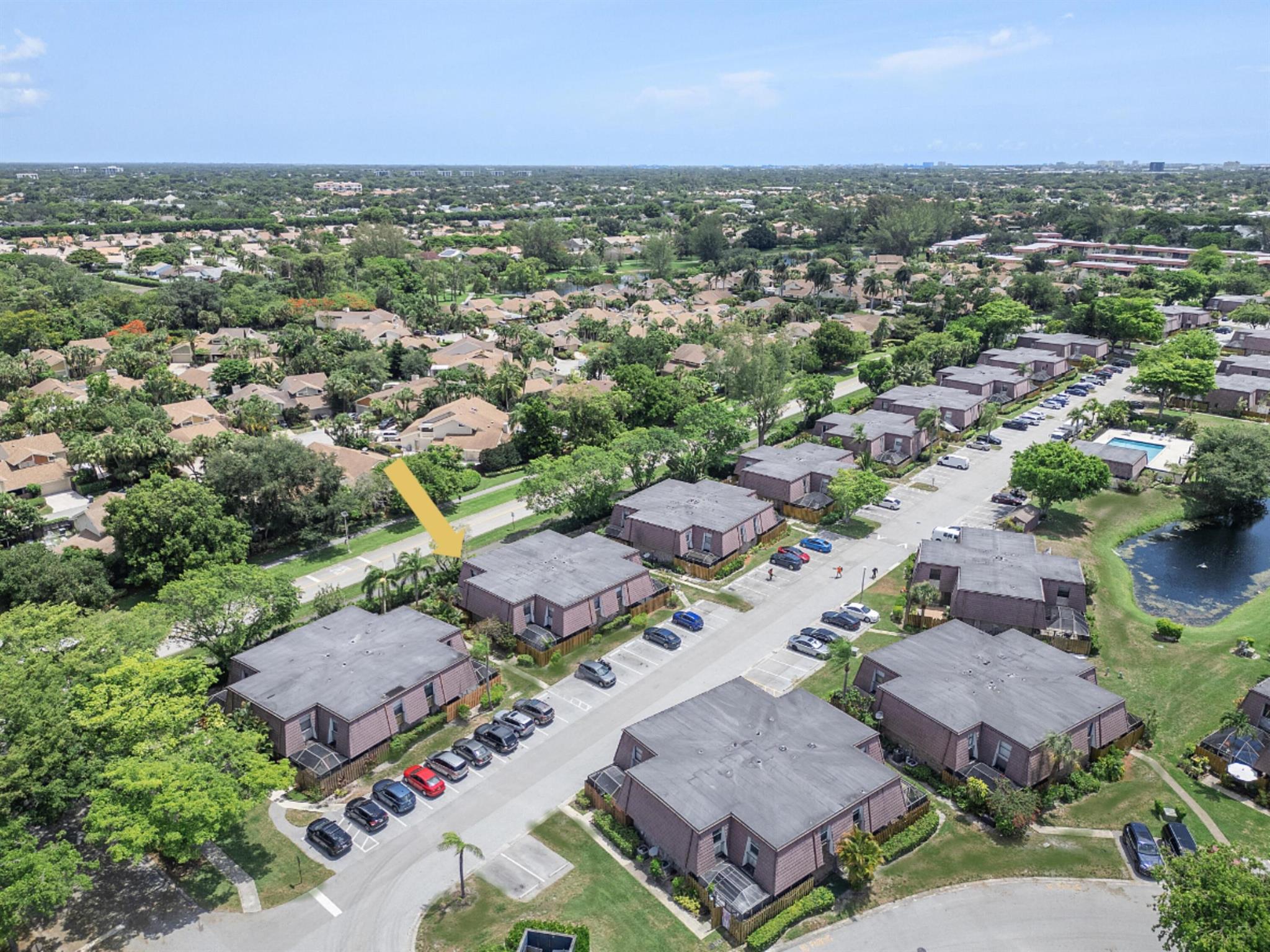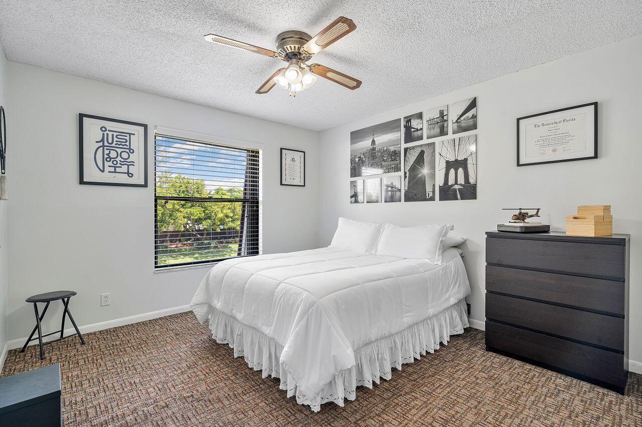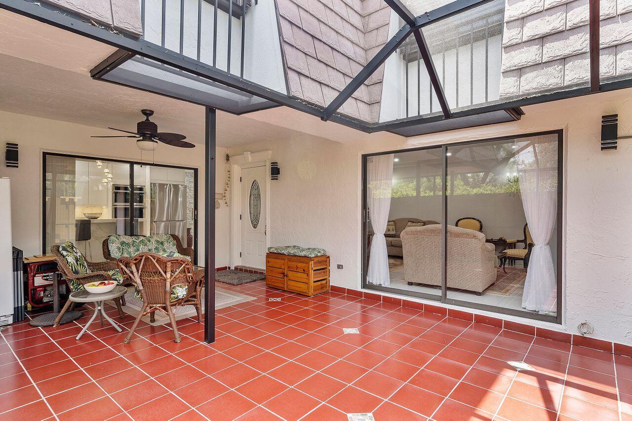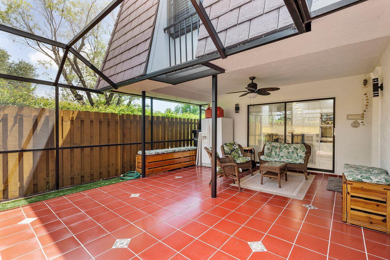 Lovely, move-in ready 3 bedrooms & 2.1 bathrooms Townhouse. New porcelain tile flooring & flat ceiling w/embedded LED lights throughout the 1st flr. Kitchen thoughtfully renovated w/SS appliances *Quartz countertops, backsplash & Island *LED lighting around countertops *Cabinets & drawers w/soft close hardware *Corner floor cabinet w/removable swivel hardware. Living room has decorative fireplace w/heating feature. Bathrooms are upgraded. Half bath & W/D on 1st flr. Bedrooms & full bathrooms on 2nd flr. Accordion shutters on windows. Screened courtyard w/tile floor & new wood fencing perfect for enjoyment & entertainment. Ideal assigned parking space. Property is in a pet-friendly community w/pool, close to A rated schools, shopping, dining, and houses of worship. This is a must see!