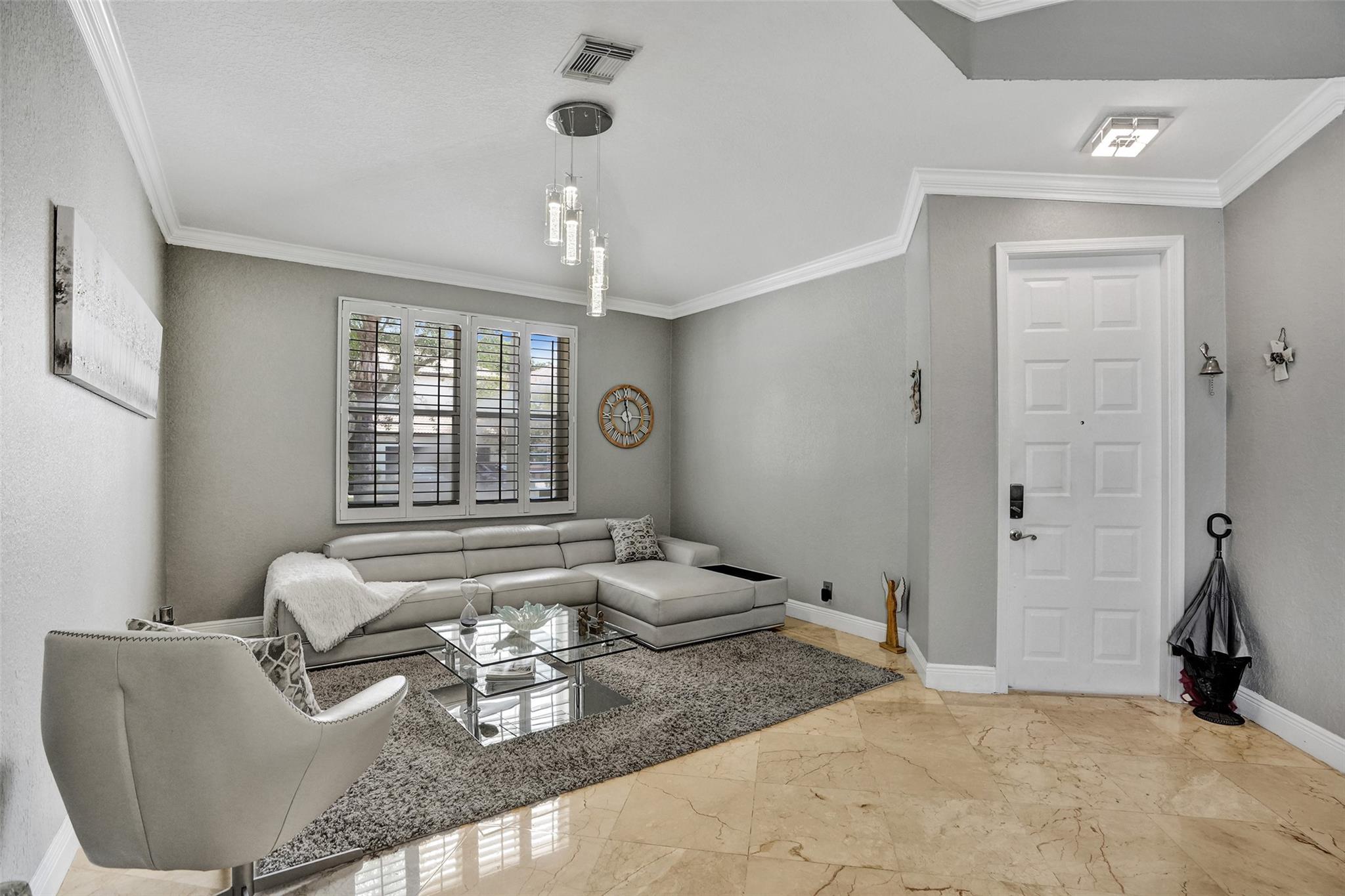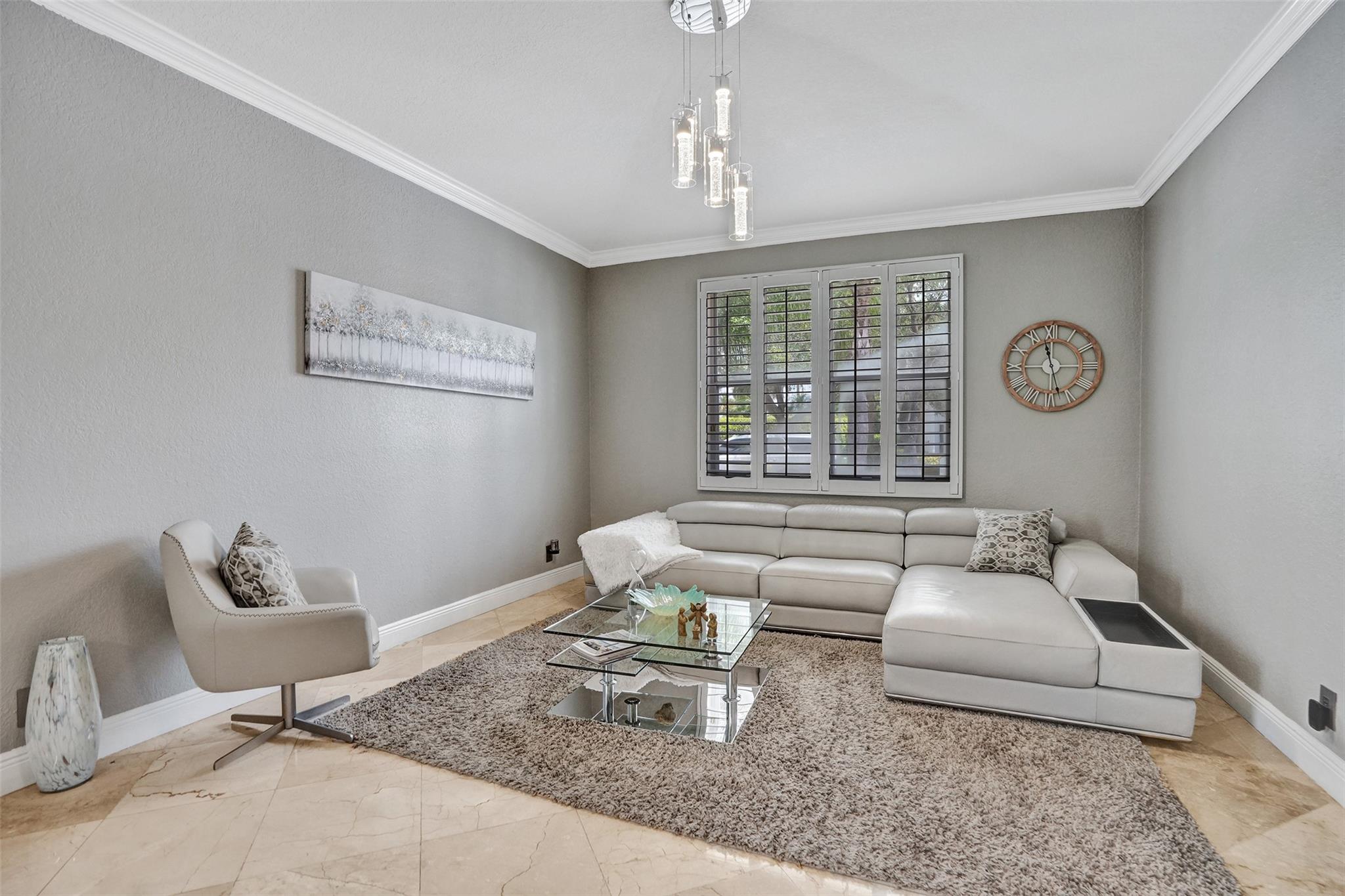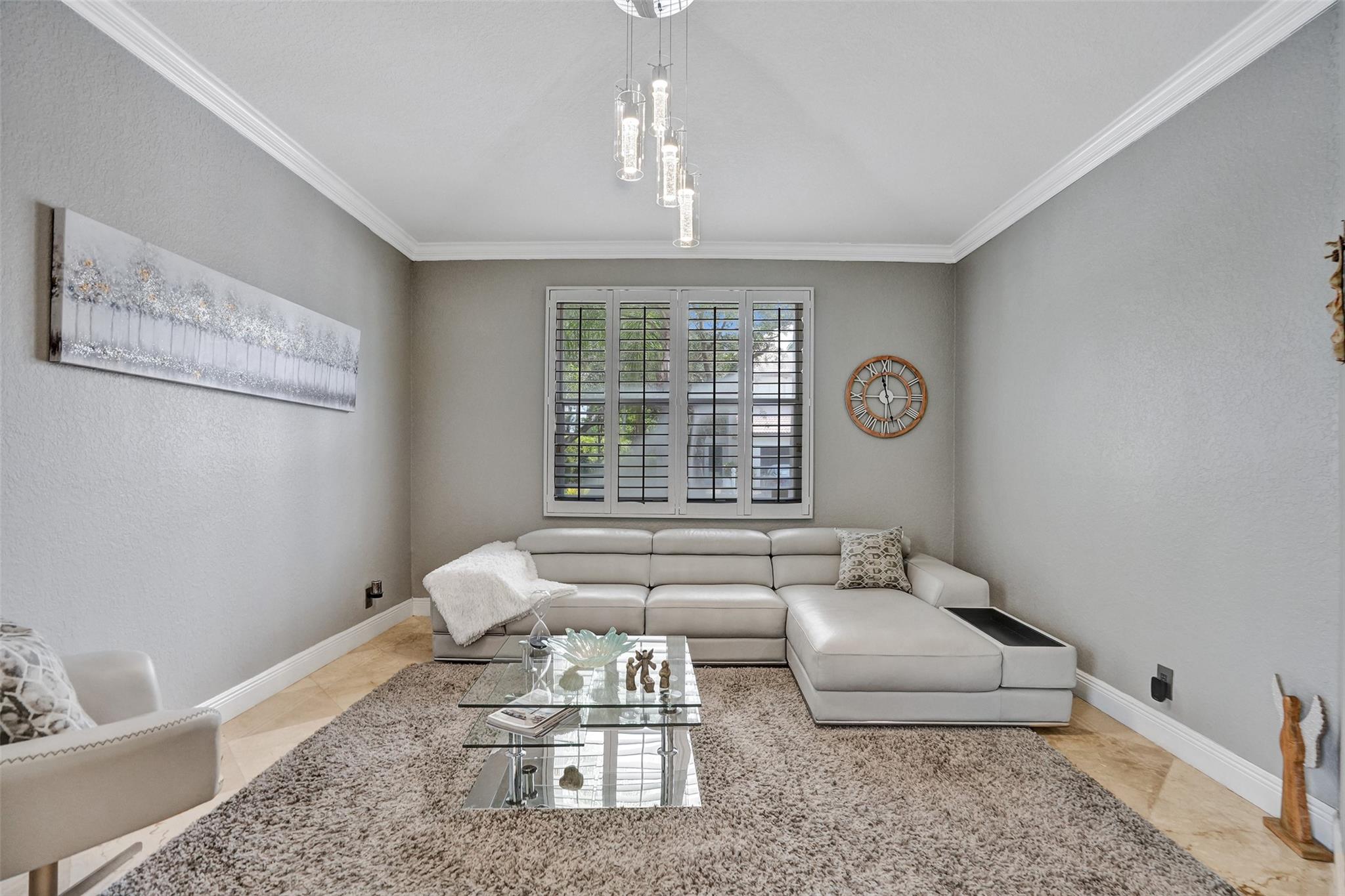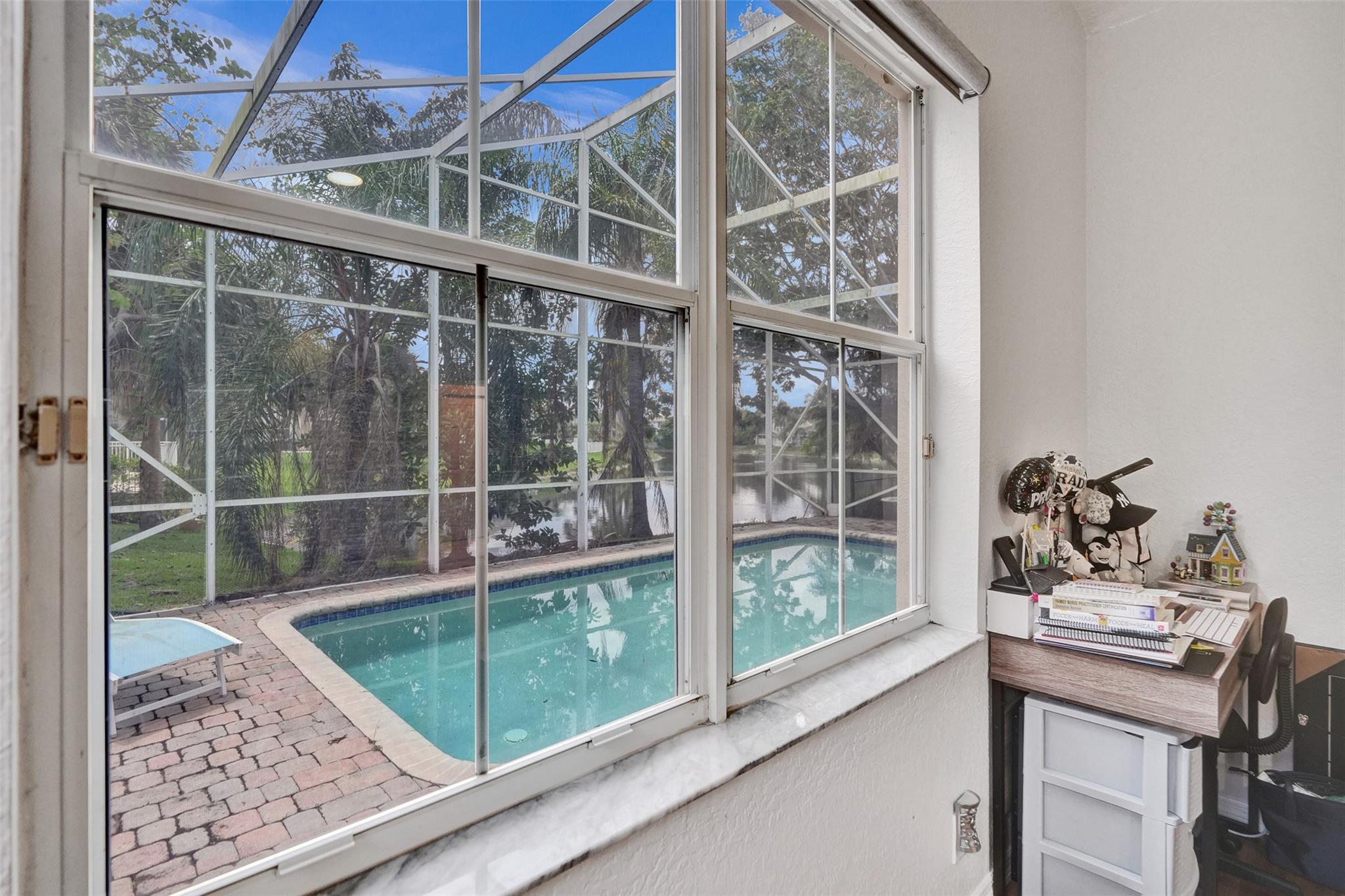 Coral Shores Perfection, Poolside Views & Polished Living. This 4-bedroom 2-bath residence offers a spacious, single-story layout featuring marble floors, rich wood bedroom finishes, and a private bonus office ideal for remote work. The chef-inspired kitchen boasts granite countertops, wood cabinetry, stainless steel appliances, and a generous walk-in pantry. Vaulted ceilings, custom closets, and a dedicated laundry room add to the home’s elevated feel. Enjoy serene lake views from the screened-in patio with a private pool, perfect for entertaining. A gated and safe community adds peace of mind. Nestled near top-rated schools and just minutes from the Sawgrass Expressway and major highways, this home is the total package of style, comfort, and convenience.