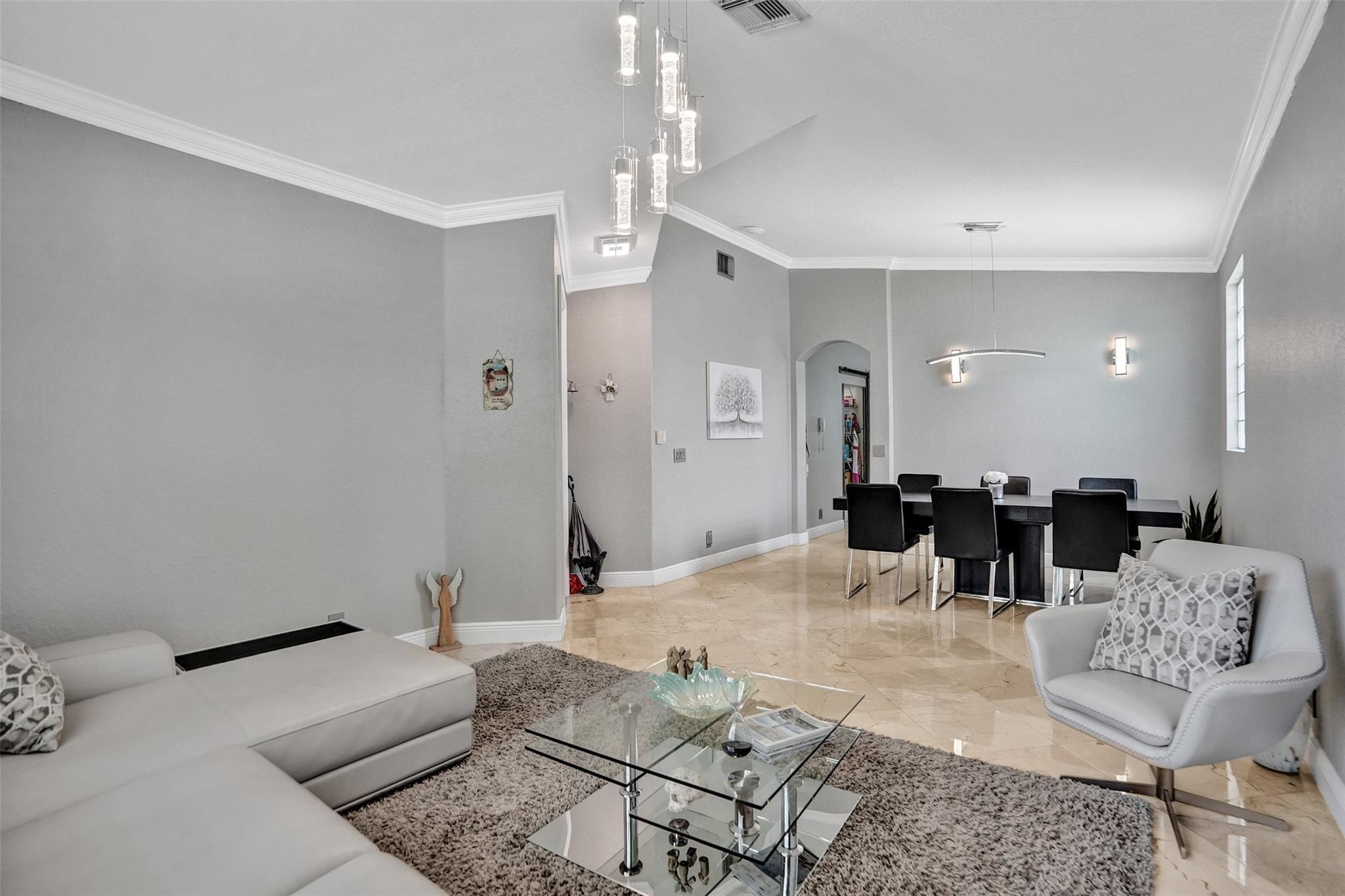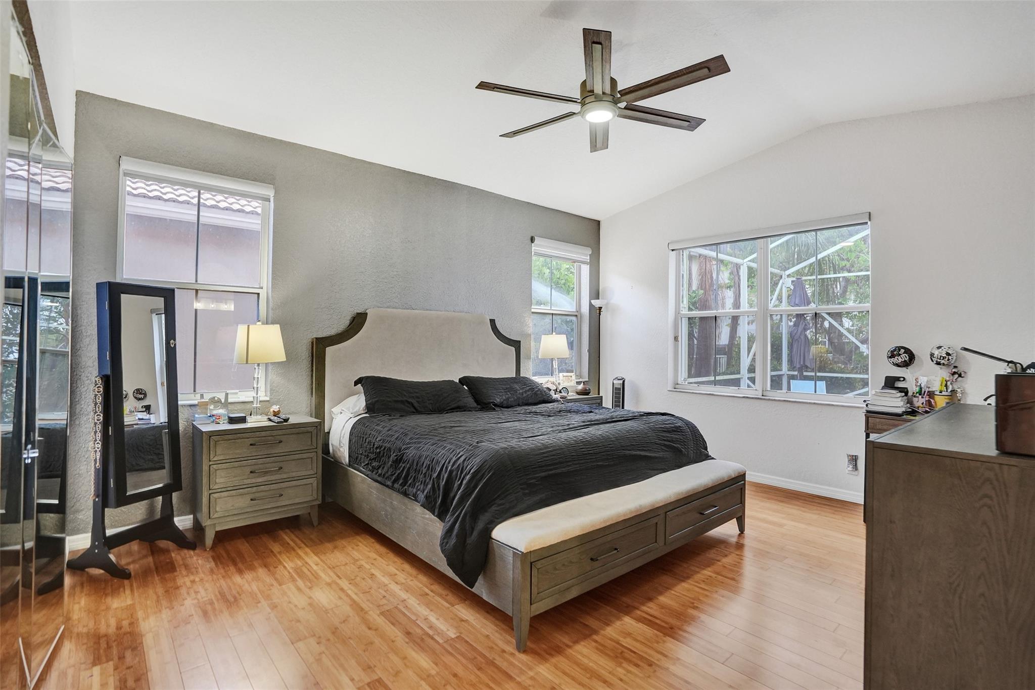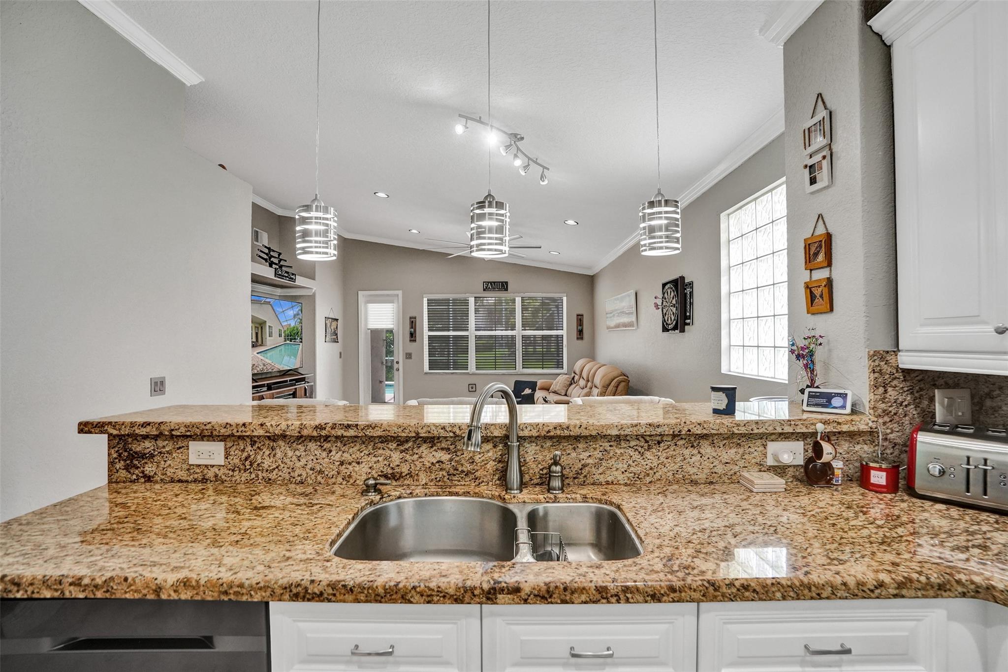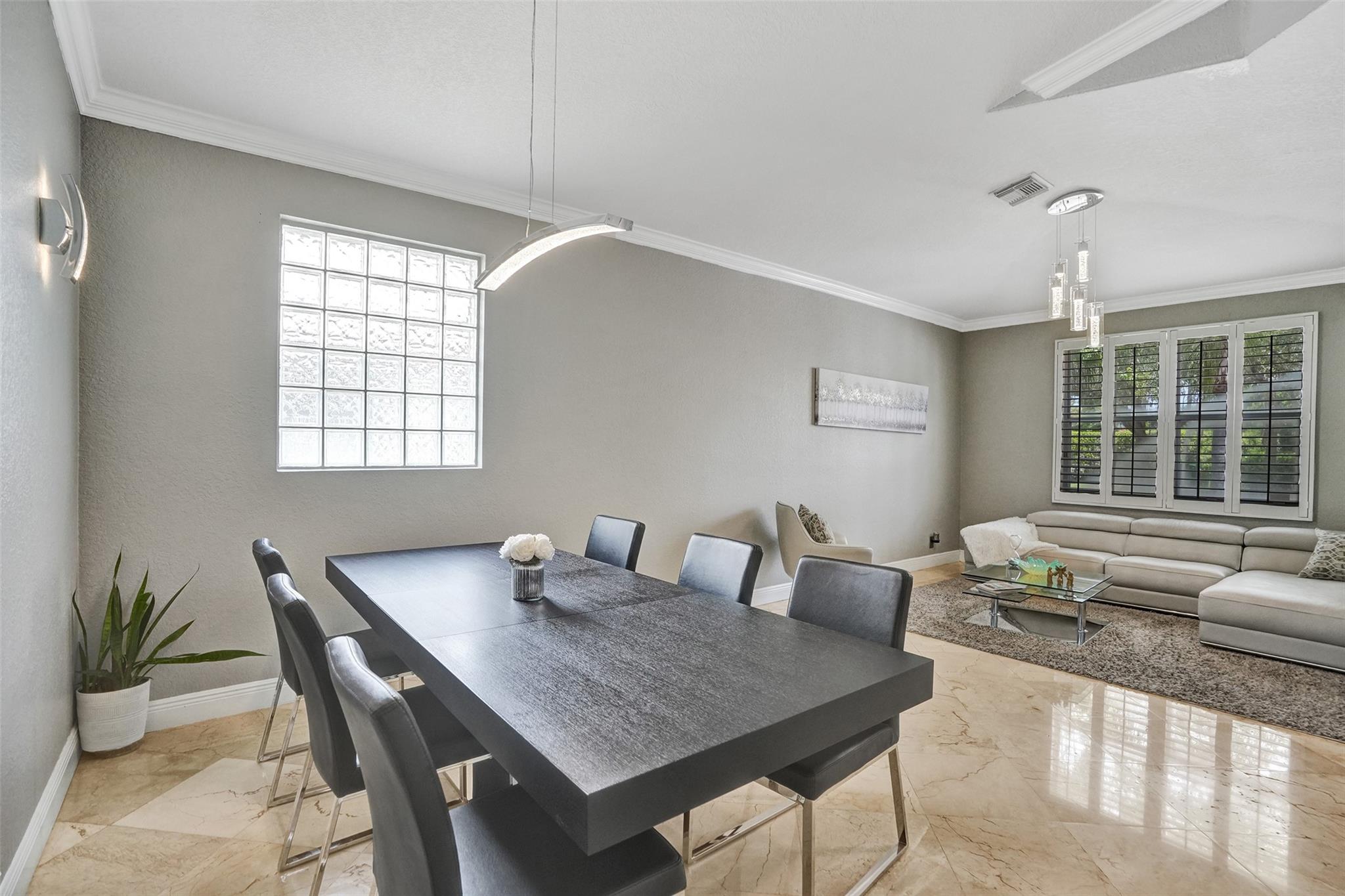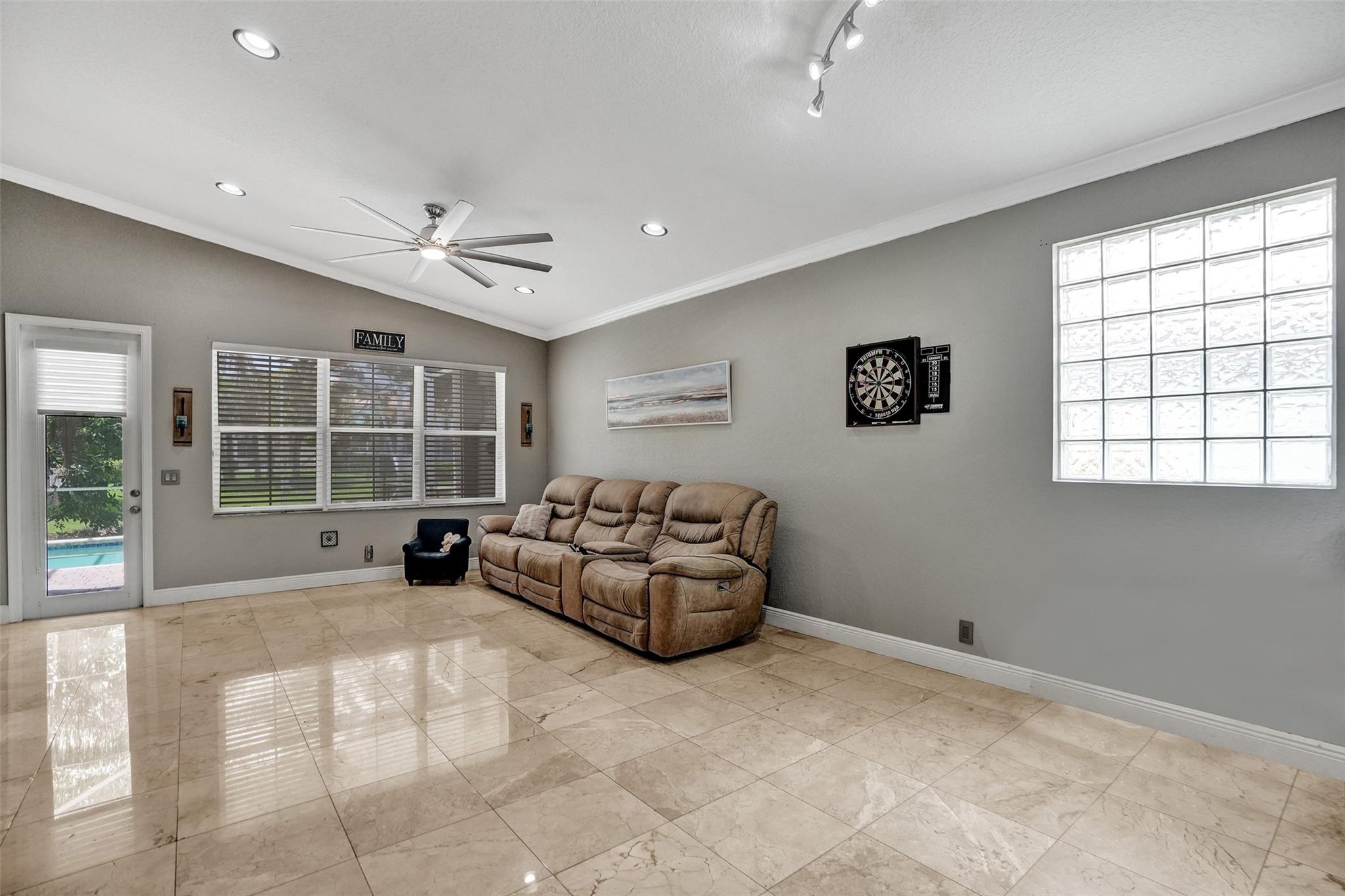 Coral Shores Perfection, Poolside Views & Polished Living. This 4-bedroom 2-bath residence offers a spacious, single-story layout featuring marble floors, rich wood bedroom finishes, and a private bonus office ideal for remote work. The chef-inspired kitchen boasts granite countertops, wood cabinetry, stainless steel appliances, and a generous walk-in pantry. Vaulted ceilings, custom closets, and a dedicated laundry room add to the home’s elevated feel. Enjoy serene lake views from the screened-in patio with a private pool, perfect for entertaining. A gated and safe community adds peace of mind. Nestled near top-rated schools and just minutes from the Sawgrass Expressway and major highways, this home is the total package of style, comfort, and convenience.