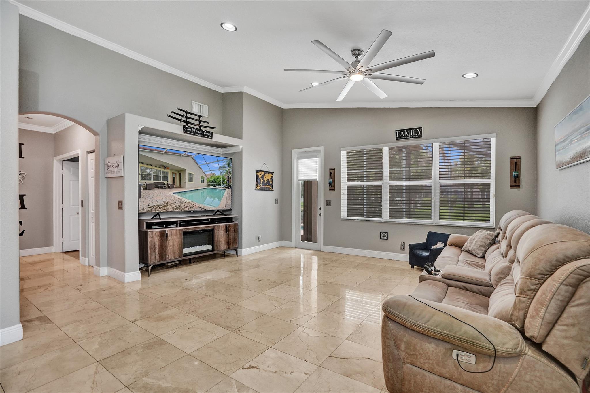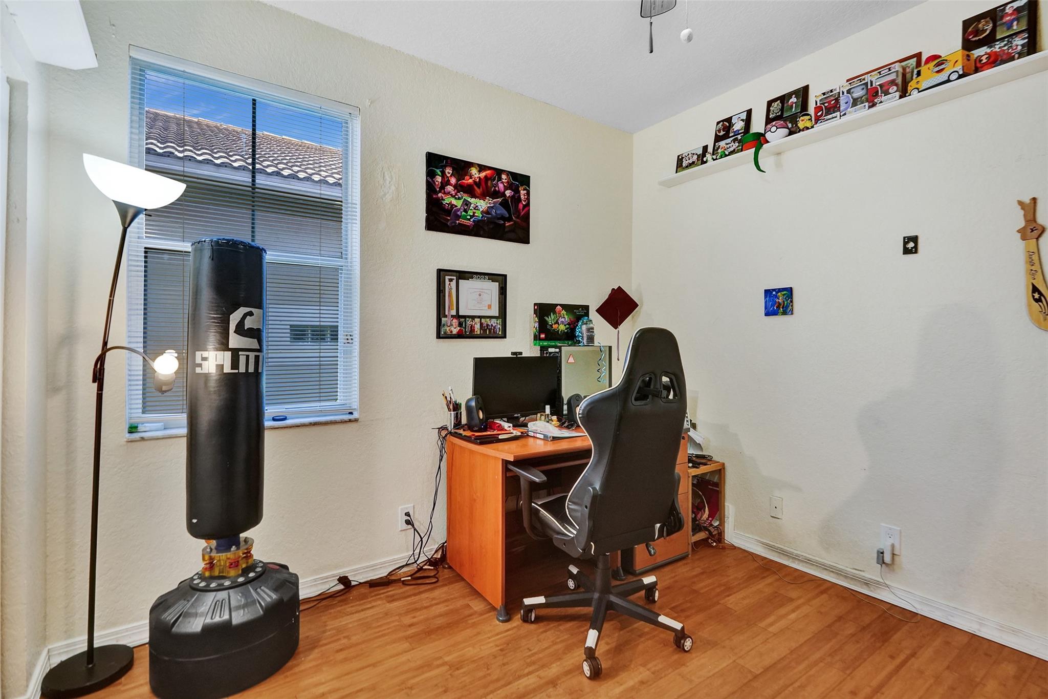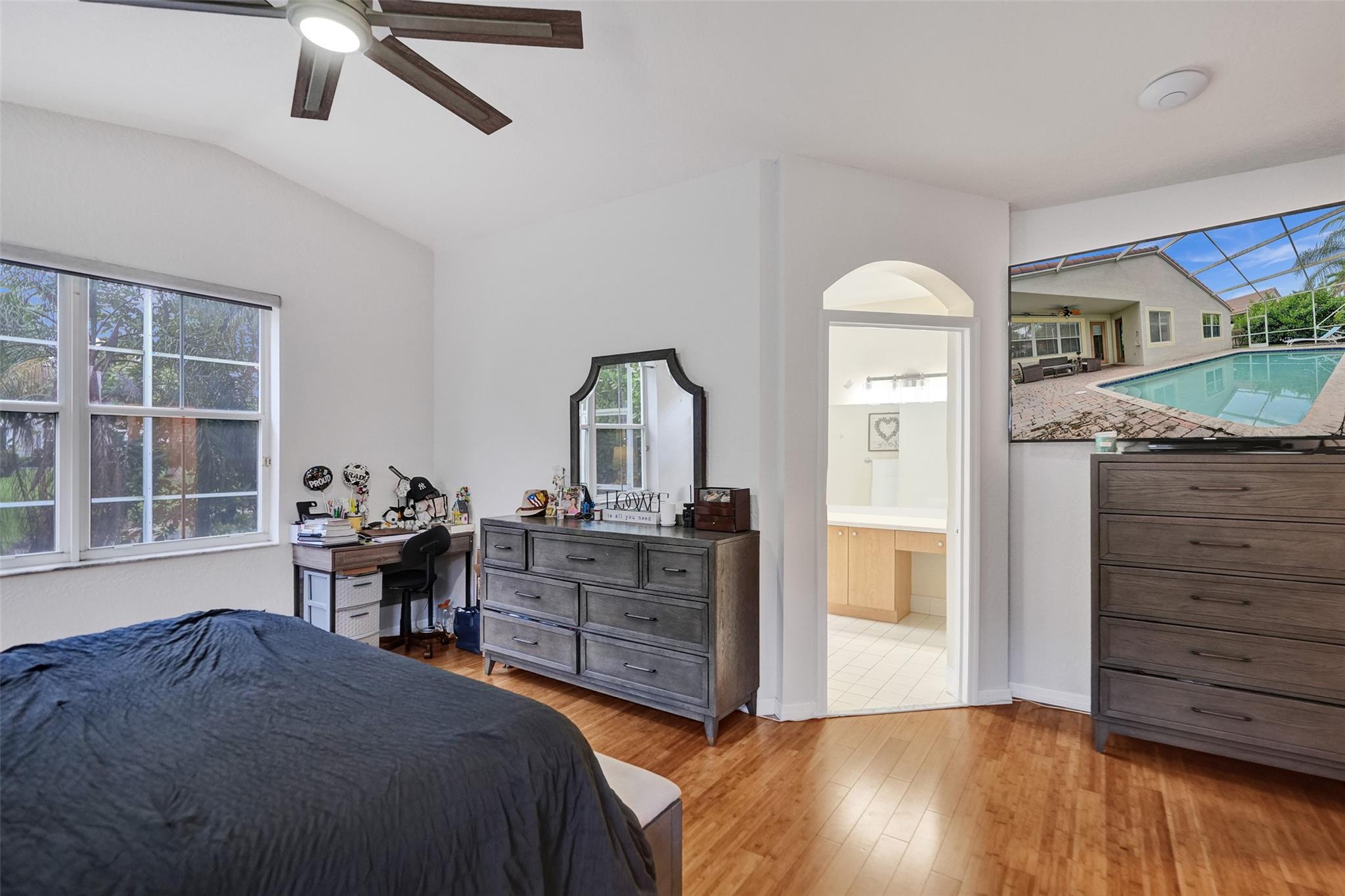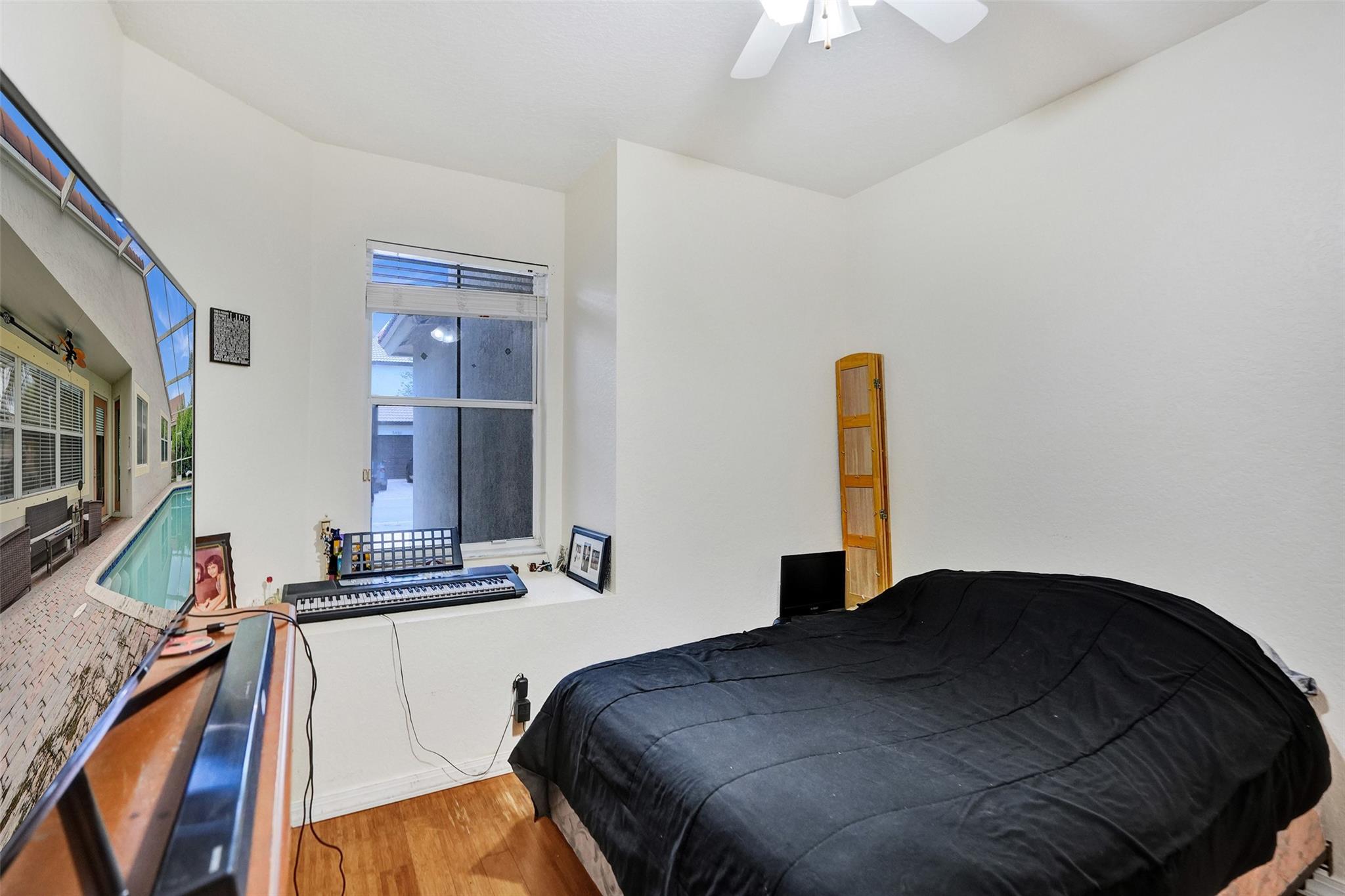 Coral Shores Perfection, Poolside Views & Polished Living. This 4-bedroom 2-bath residence offers a spacious, single-story layout featuring marble floors, rich wood bedroom finishes, and a private bonus office ideal for remote work. The chef-inspired kitchen boasts granite countertops, wood cabinetry, stainless steel appliances, and a generous walk-in pantry. Vaulted ceilings, custom closets, and a dedicated laundry room add to the home’s elevated feel. Enjoy serene lake views from the screened-in patio with a private pool, perfect for entertaining. A gated and safe community adds peace of mind. Nestled near top-rated schools and just minutes from the Sawgrass Expressway and major highways, this home is the total package of style, comfort, and convenience.