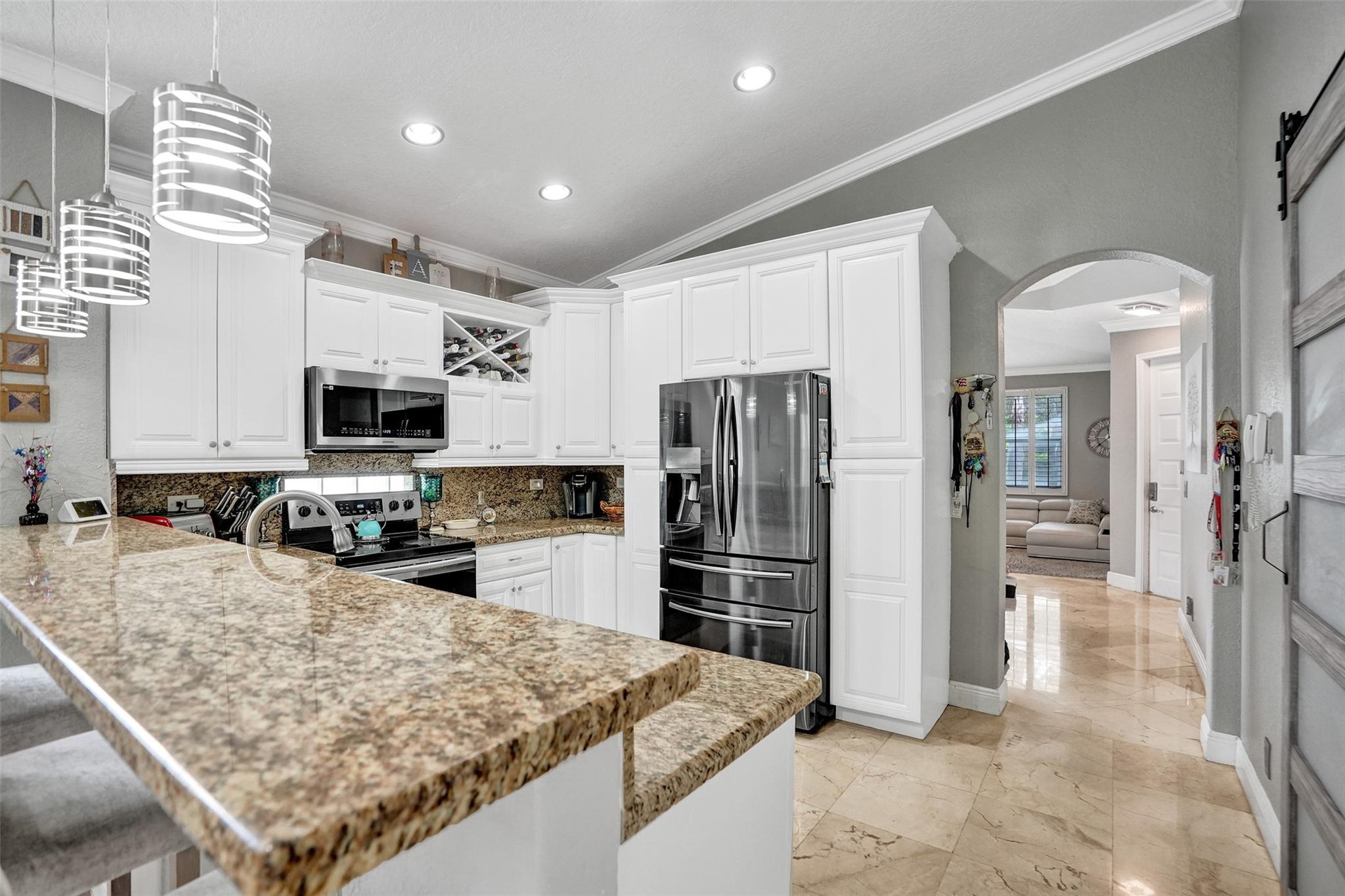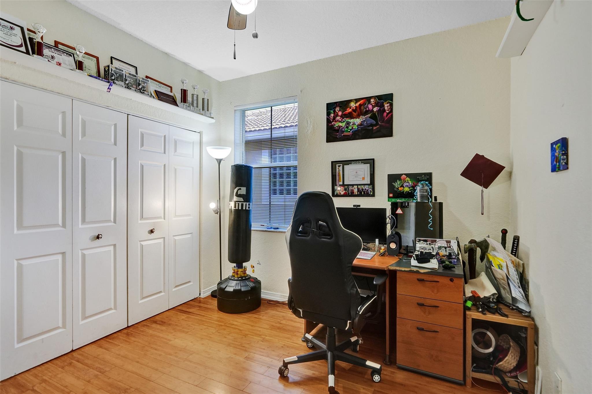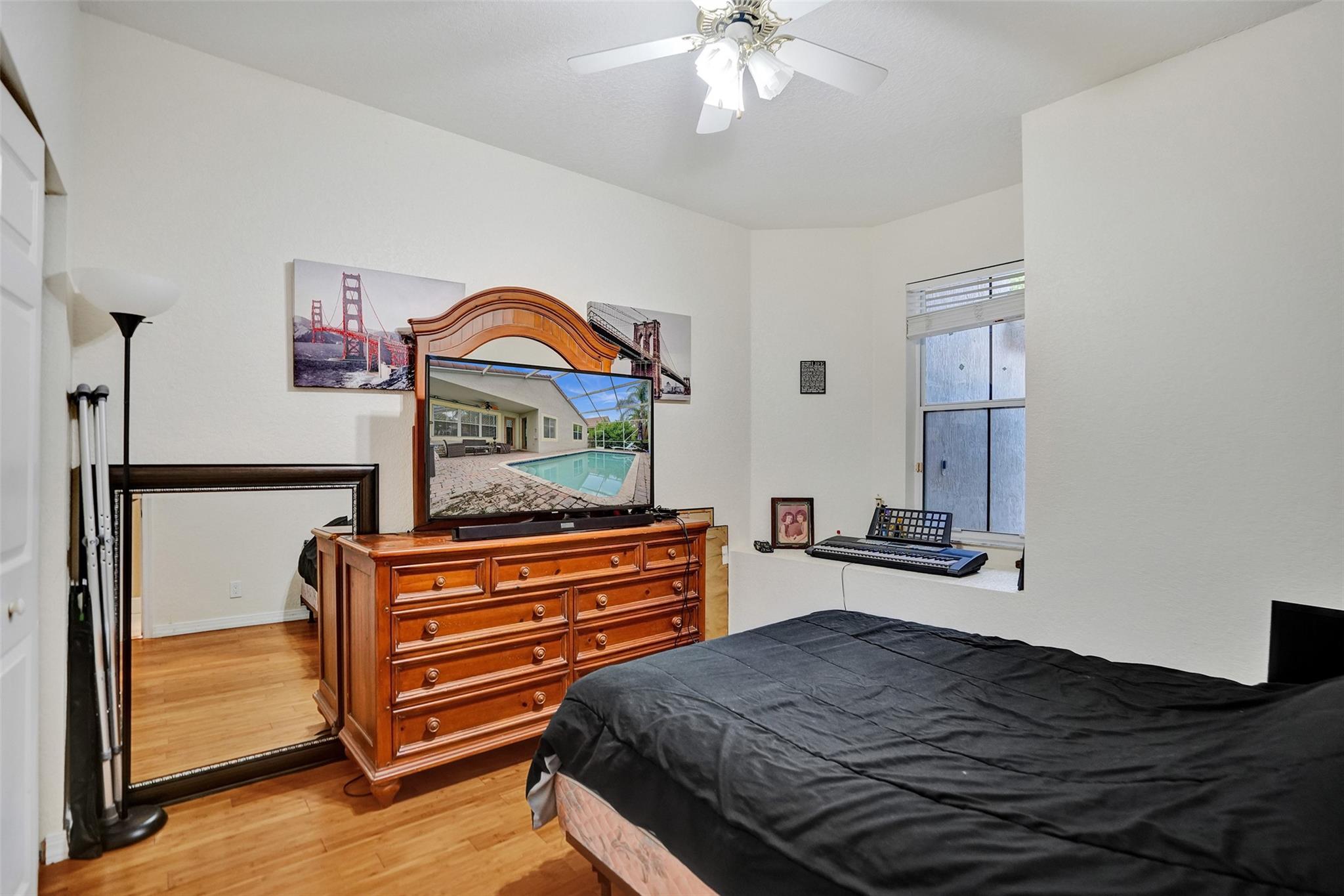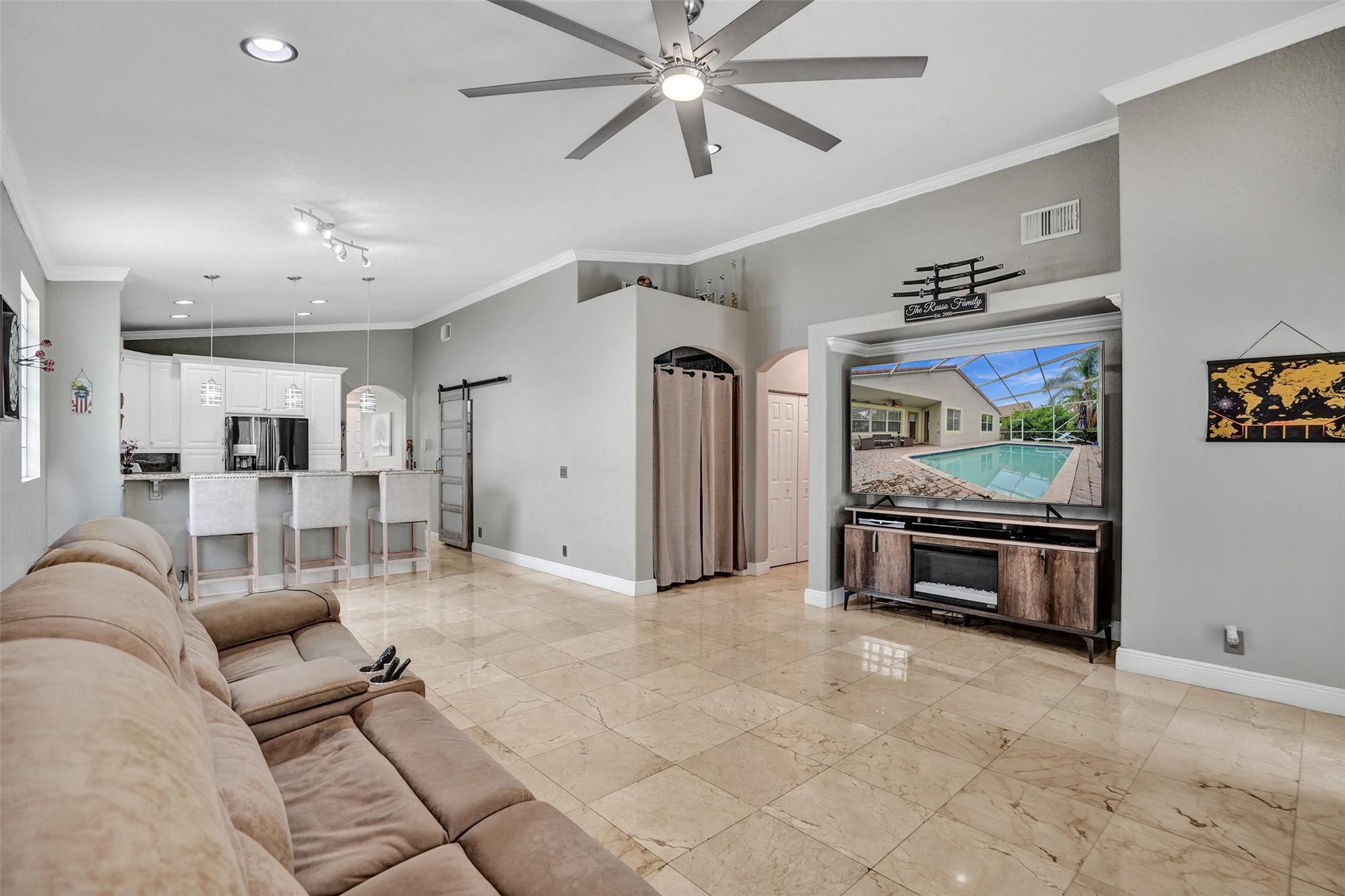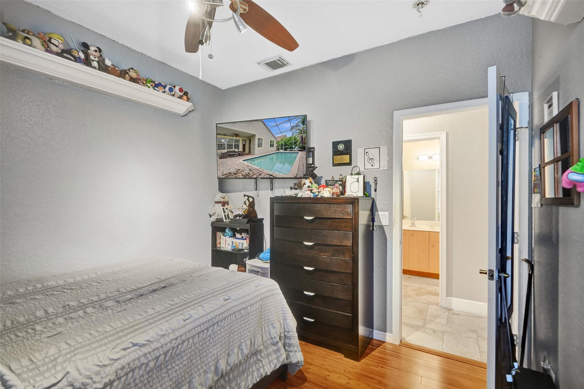 Coral Shores Perfection, Poolside Views & Polished Living. This 4-bedroom 2-bath residence offers a spacious, single-story layout featuring marble floors, rich wood bedroom finishes, and a private bonus office ideal for remote work. The chef-inspired kitchen boasts granite countertops, wood cabinetry, stainless steel appliances, and a generous walk-in pantry. Vaulted ceilings, custom closets, and a dedicated laundry room add to the home’s elevated feel. Enjoy serene lake views from the screened-in patio with a private pool, perfect for entertaining. A gated and safe community adds peace of mind. Nestled near top-rated schools and just minutes from the Sawgrass Expressway and major highways, this home is the total package of style, comfort, and convenience.