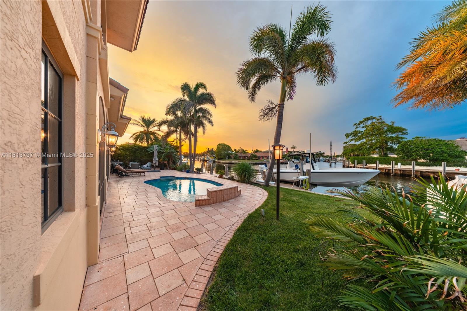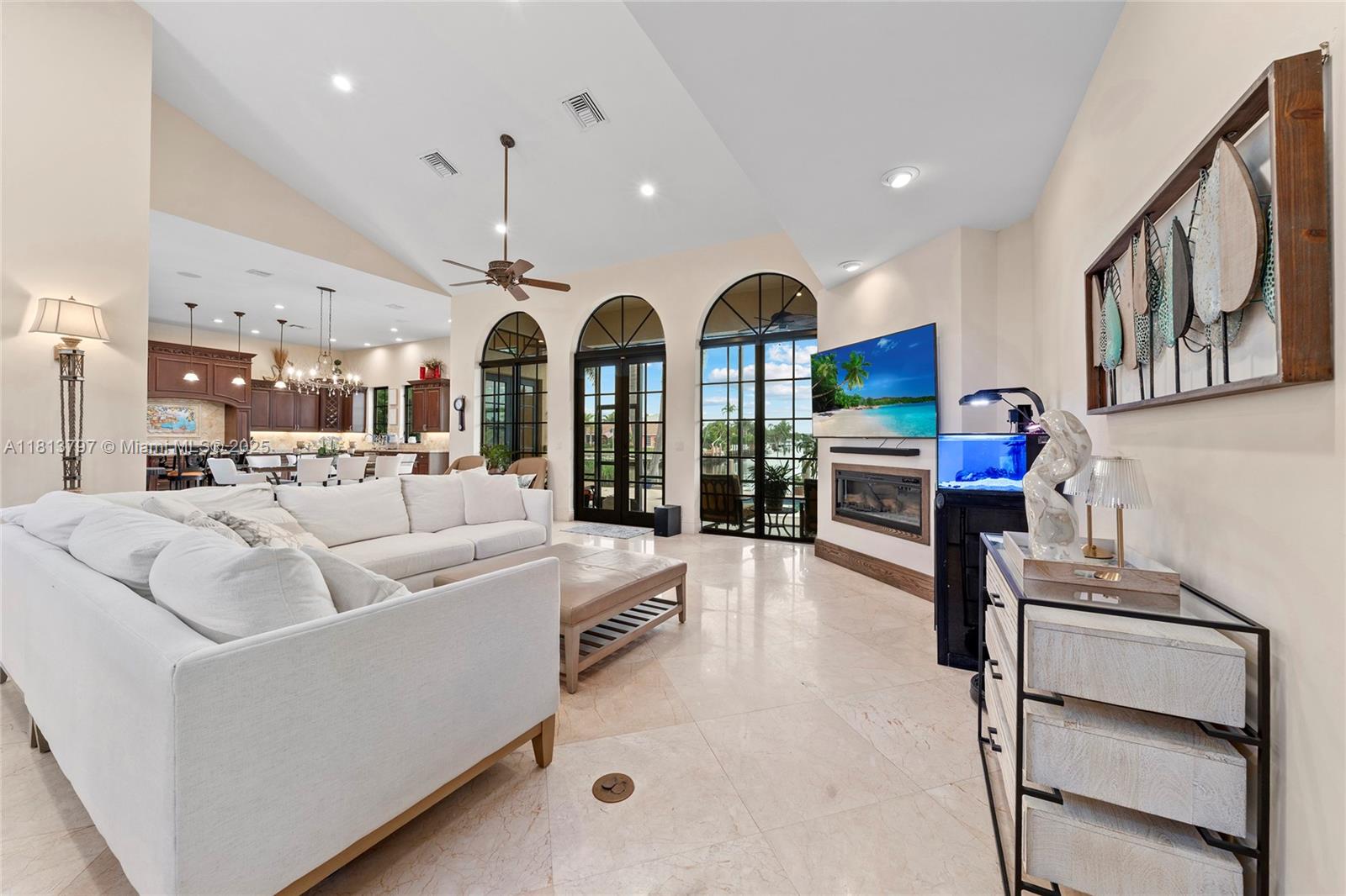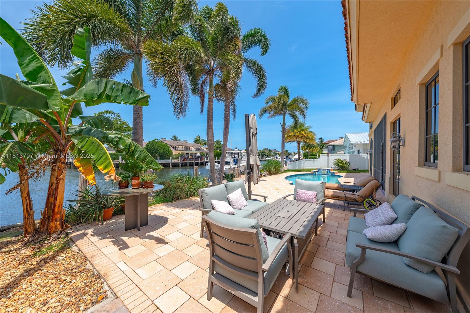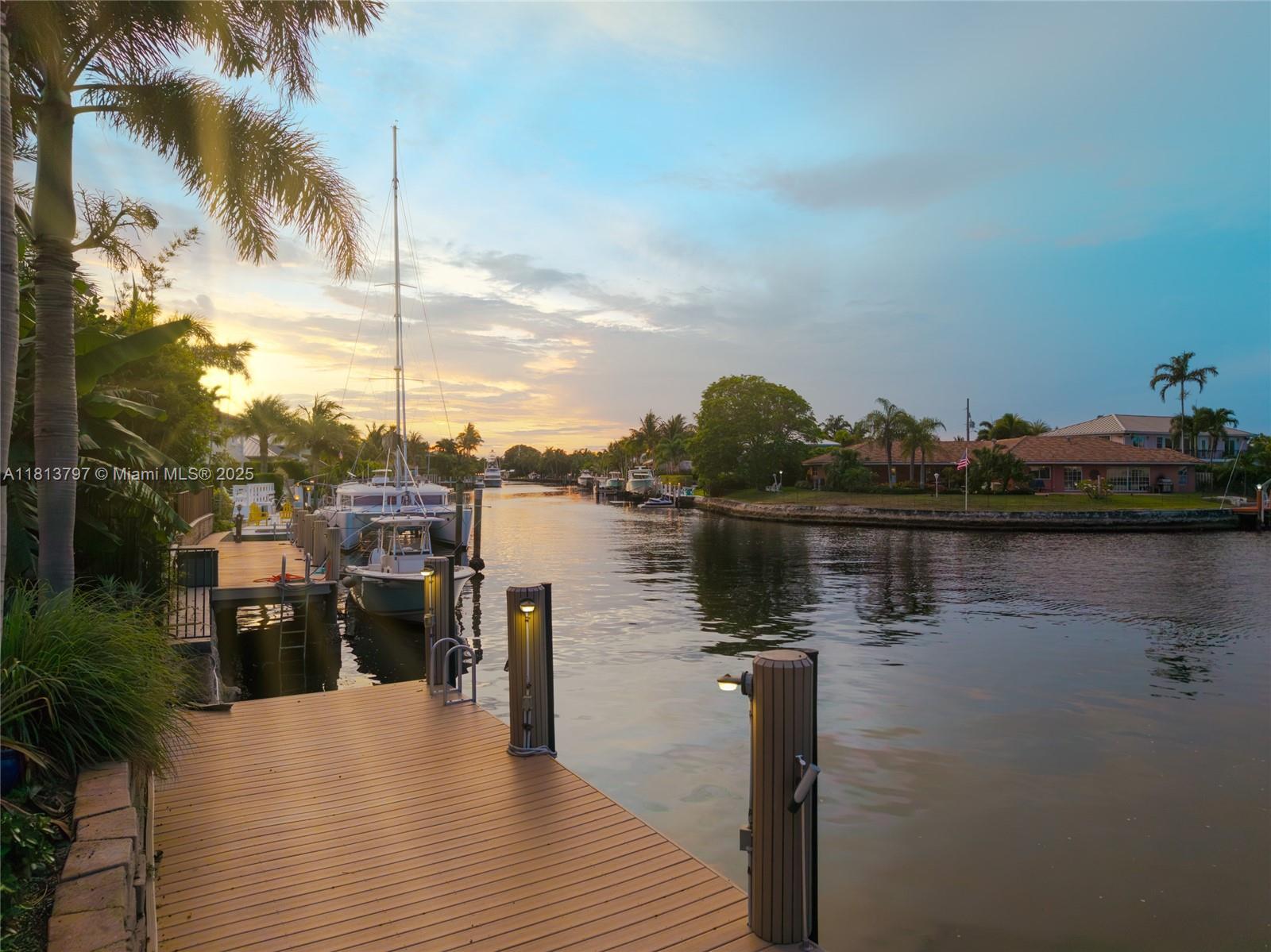 Welcome to your dream home in —THE COVE— where luxury meets lifestyle. This 4BD/3BA waterfront estate offers 90 ft on a rare turning basin, perfect for easy boat maneuvering. Featuring 3,746 sq ft, 5-zone AC (new in 2024), impact windows, new dock, brand-new 20W generator, and laundry hook-ups on both levels. The chef’s kitchen boasts high-end appliances and ample space for entertaining. Open layout with natural light, central media closet, built-in speakers, and a pool with electric heat. Home water is solar-heated with whole-home carbon filtration. Meticulously maintained and built to last—this home offers the best of South Florida living.
