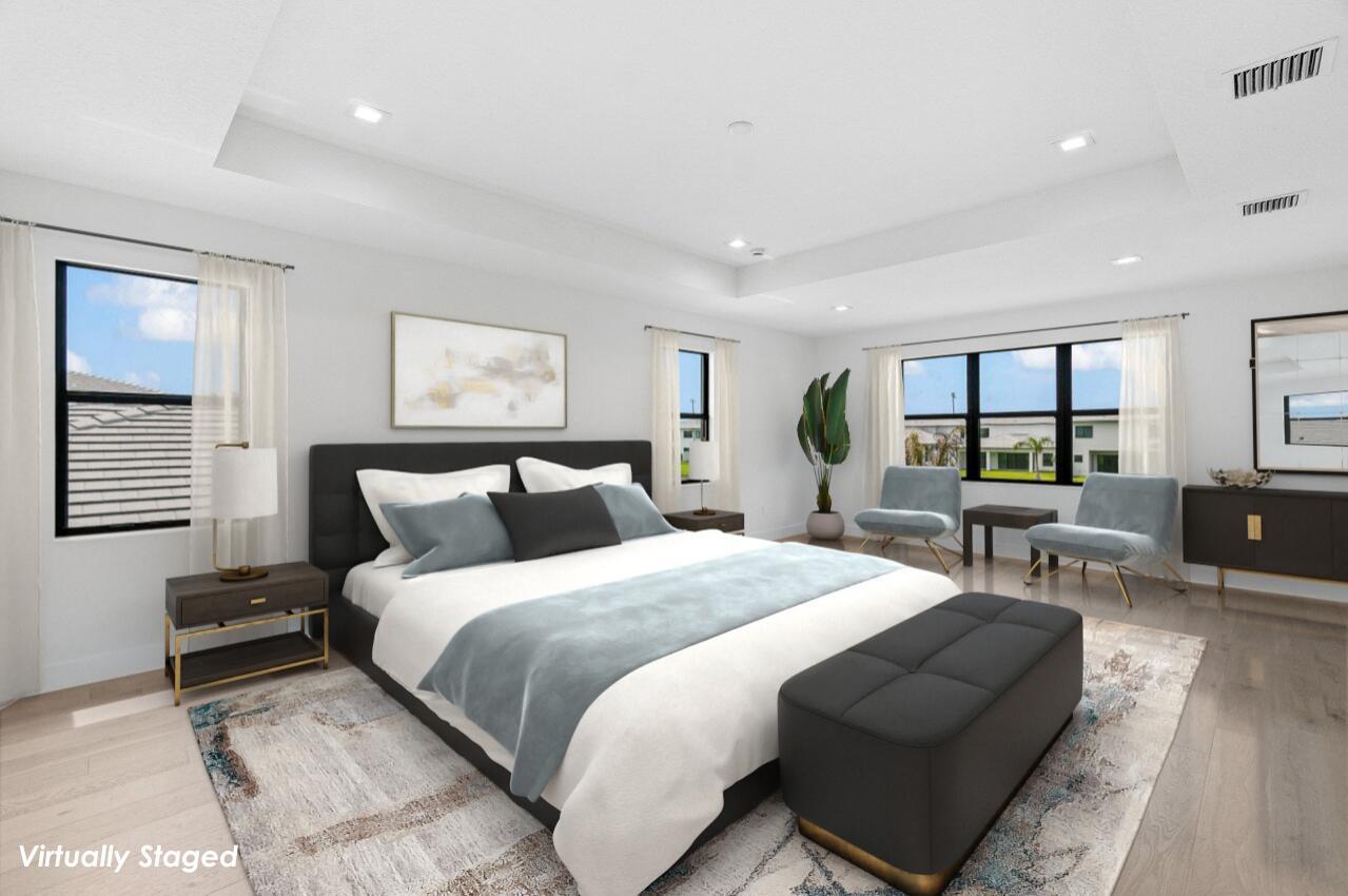 Welcome to this stunning, never-lived-in contemporary home, move-in ready and located in the highly sought-after Lotus Edge community. Designed for modern luxury and comfort, this expansive residence offers 5 spacious bedrooms, 6.5 designer bathrooms, a club room, an upstairs loft, and a 3-car garage--all crafted with impeccable attention to detail.Step inside and be greeted by an open-concept layout that is ideal for entertaining. The gourmet kitchen is a chef's dream, featuring stainless steel appliances, quartz countertops, and elegant sandy oak cabinetry. Beautiful white oak wood stairs lead you to the upper level, where the airy loft provides an ideal space for relaxation or play.The primary suite is a true retreat with two generous walk-in closets and a spa-inspired