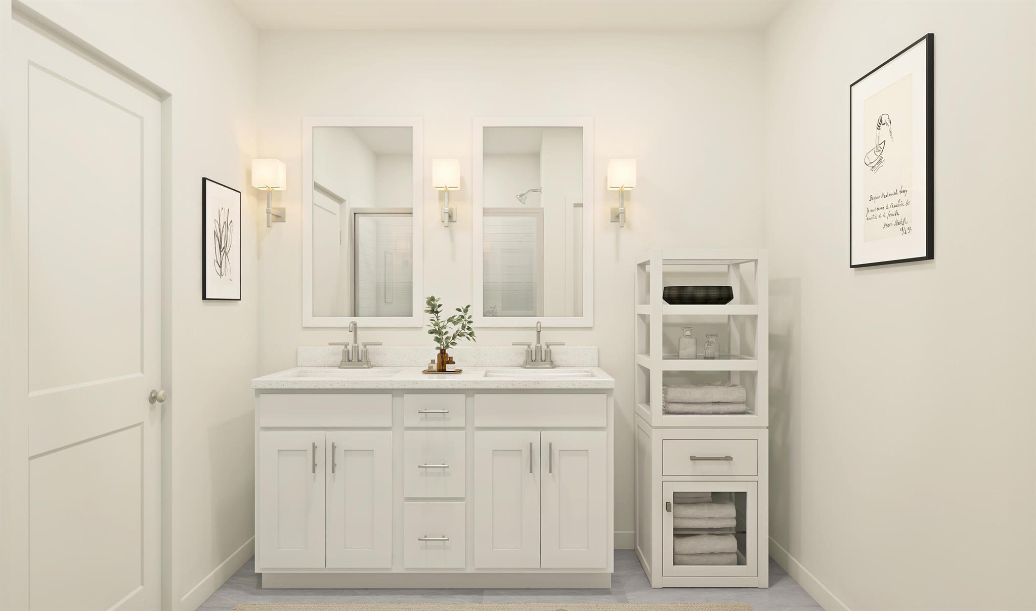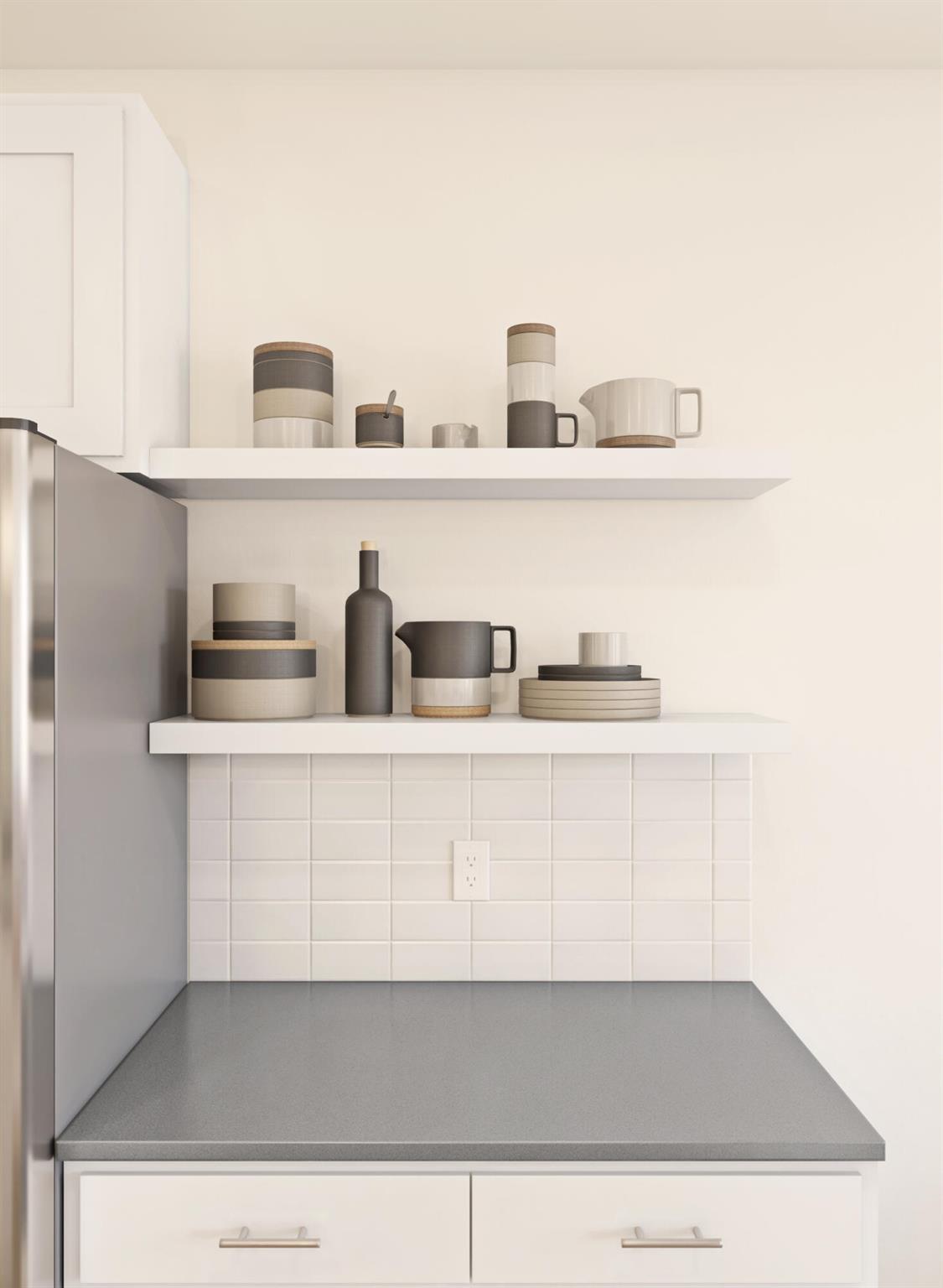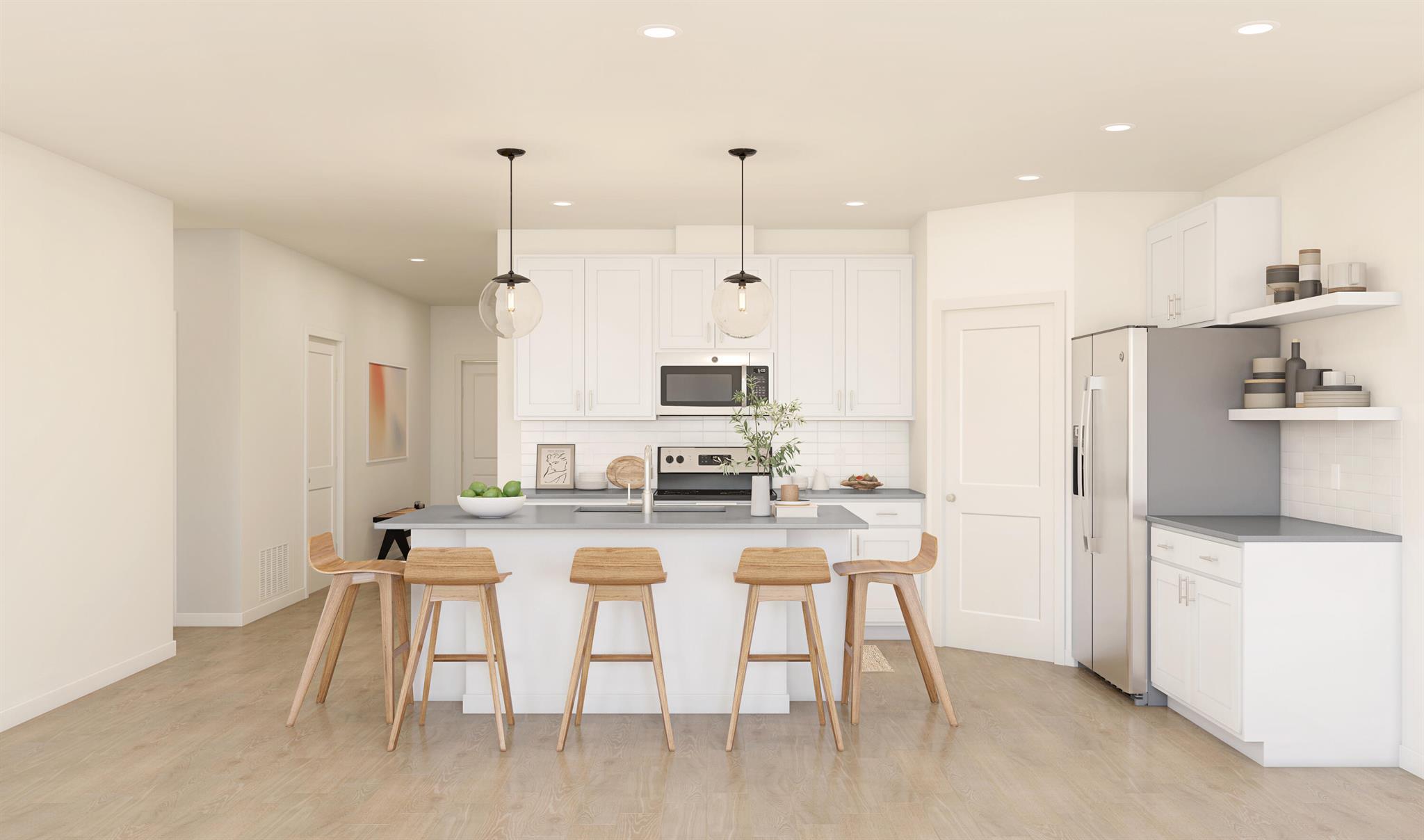 Stylish and Smart Living in the Goldenrod II - No HOA! This home's backyard will be fully fenced in with gate!Discover effortless style and modern convenience in the Goldenrod II, crafted with a fresh, Loft-inspired design. The open-concept kitchen is a showstopper, featuring crisp Aristokraft White cabinets, paired with a bold Meridian Grey quartz island. Accented by floating shelves and chic pendant lights, this kitchen is built for both form and function, complete with GE stainless steel appliances.A spacious dining area flows naturally to a covered patio, creating the perfect setup for indoor-outdoor entertaining. The secluded primary suite offers comfort and privacy, with a well-designed walk-in closet and a sleek bathroom finished with polished chrome fixtures.