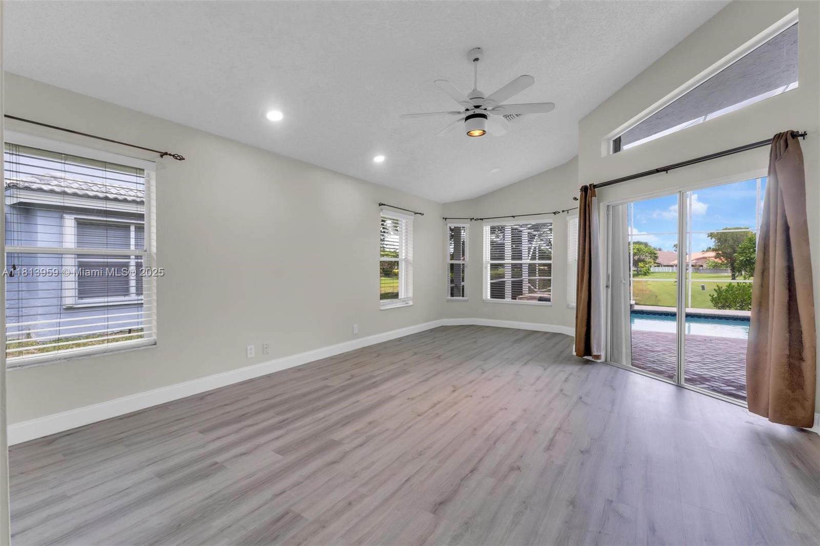 Wow! Gorgeous 3,475 sq. ft, 5 Bedroom 3 Bathroom, 2-Car Garage with Water View in beautiful Coral Springs. Awesome Updated Open Kitchen/Family Room Concept with Granite Countertops, White Cabinets, Pantry, Stainless Steel Appliances, and tied into a Casual Dining Area. Wood and Tile Flooring Throughout the Home. Vaulted ceiling with lots of natural light. Large Master Suite With Walk-In Closets and Updated Bathroom with his/hers vanities and shower with dual shower heads. The two other bathrooms have been updated also. The roof is 2008 and has 2 AC Zones. Hurricane Shutters, Pool, and Built-in Grill. No HOA and Great Coral Springs Schools. Central to Malls, Sams, Costco and Major Highways. Rented till 9/30/2025.
