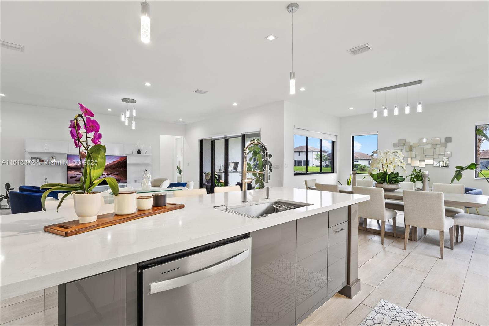 Experience luxury living in this impeccable 5BD/4BA lakefront home in Marbella, built by CC Homes on a 9,100 SF lot. Over $200K in upgrades: impact windows/doors, steel staircase, upgraded showers, wet bar, quartz countertops, and built-in summer kitchen. Open floor plan with stunning lake views from the moment you walk in. Primary suite + guest/in-law room on 1st floor. Upstairs: 2 bedrooms with a Jack & Jill bath, full suite, loft, and wet bar. 10-ft ceilings, abundant natural light, 2 A/C units, tile & laminate floors, and professional landscaping. Spacious backyard ready for your dream pool and outdoor living. Gated community with clubhouse, gym, pool, playground, and easy access to major highways. Schedule your private tour today—start your next chapter here.