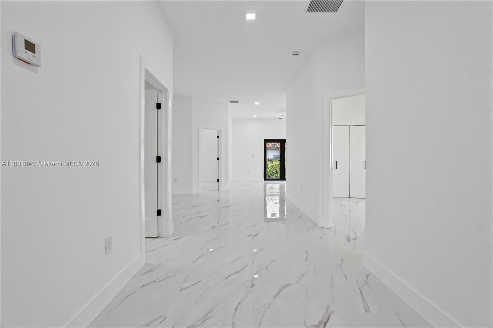 New Construction- Priced to Sell. 4-bedroom, 2-bath house is a masterpiece of modern design. The kitchen is a chef's delight, featuring a porcelain farm sink, hardwood cabinets with designer hardware, soft-close drawers, SS appliances and sleek quartz countertop, the range is complemented by a designer over-range hood. The bathrooms are adorned with mosaic glass tiles & Bluetooth speakers, creating a spa-like experience. Rooms boasts solid single shaker doors-added elegance Equipped with an integrated sprinkler system, exterior lighting, impact doors and windows, and a high-efficiency washer and dryer this home has everything you need. No HOA means you can enjoy your home your way. Great outdoor space for entertaining. Conveniently located near restaurants, shopping, and major highways.