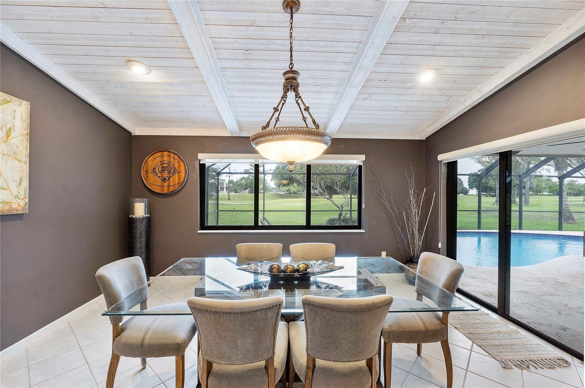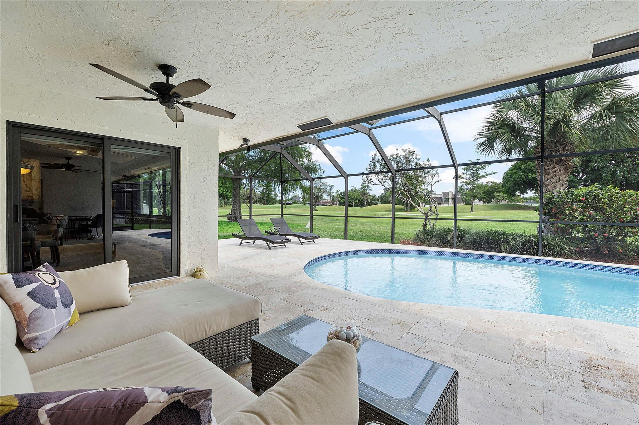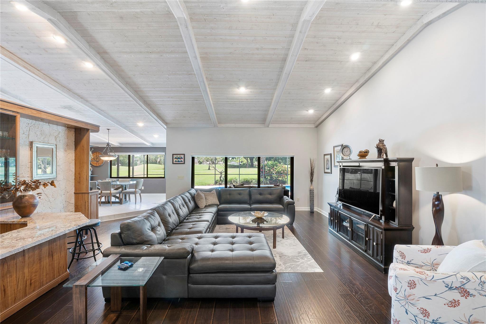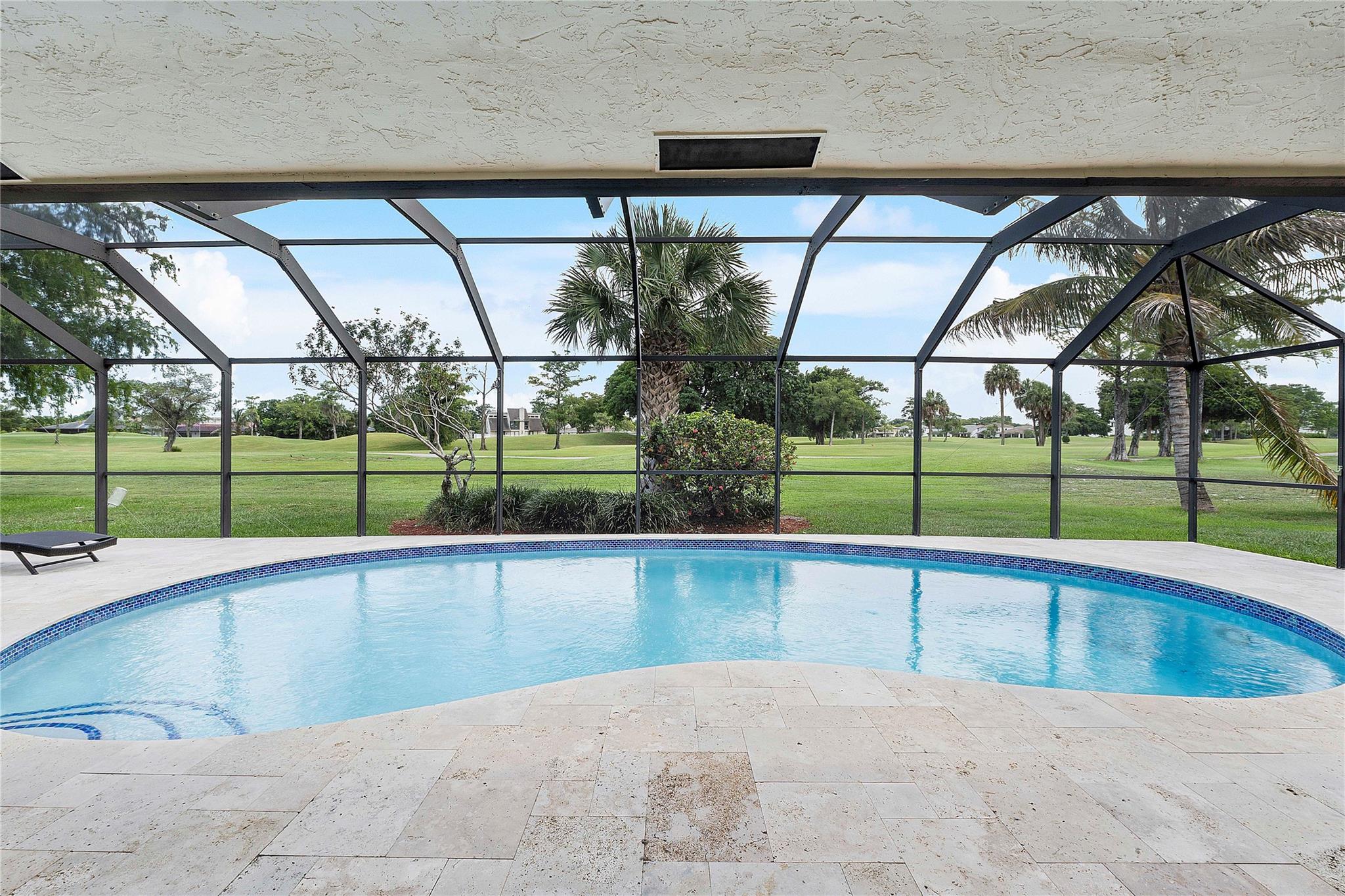 Buyer's home sale fell through! LISTING ACTIVE. Updated Immaculate 3-Bedroom, 2.5-Bath Pool Home located in Woodmont. Breathtaking Golf Course Views and a quiet Cul-da Sac Location! Step inside to discover vaulted wood ceilings that add warmth and character! Tons of natural light pours in through expansive IMPACT WINDOWS (2022), IMPACT DOORS (2020) and skylights (2024) BRAND NEW ROOF (2024)! Oversized master suite includes a sitting area and remodeled bathroom. Enjoy Florida living at its finest with a remodeled pool and travertine deck (2022), complete with a new saltwater pump and filter (2024). The oversized screened-in patio is perfect for entertaining or relaxing, all while soaking in serene golf course views. Woodmont Country Club is Open to the Public memberships are available!!!