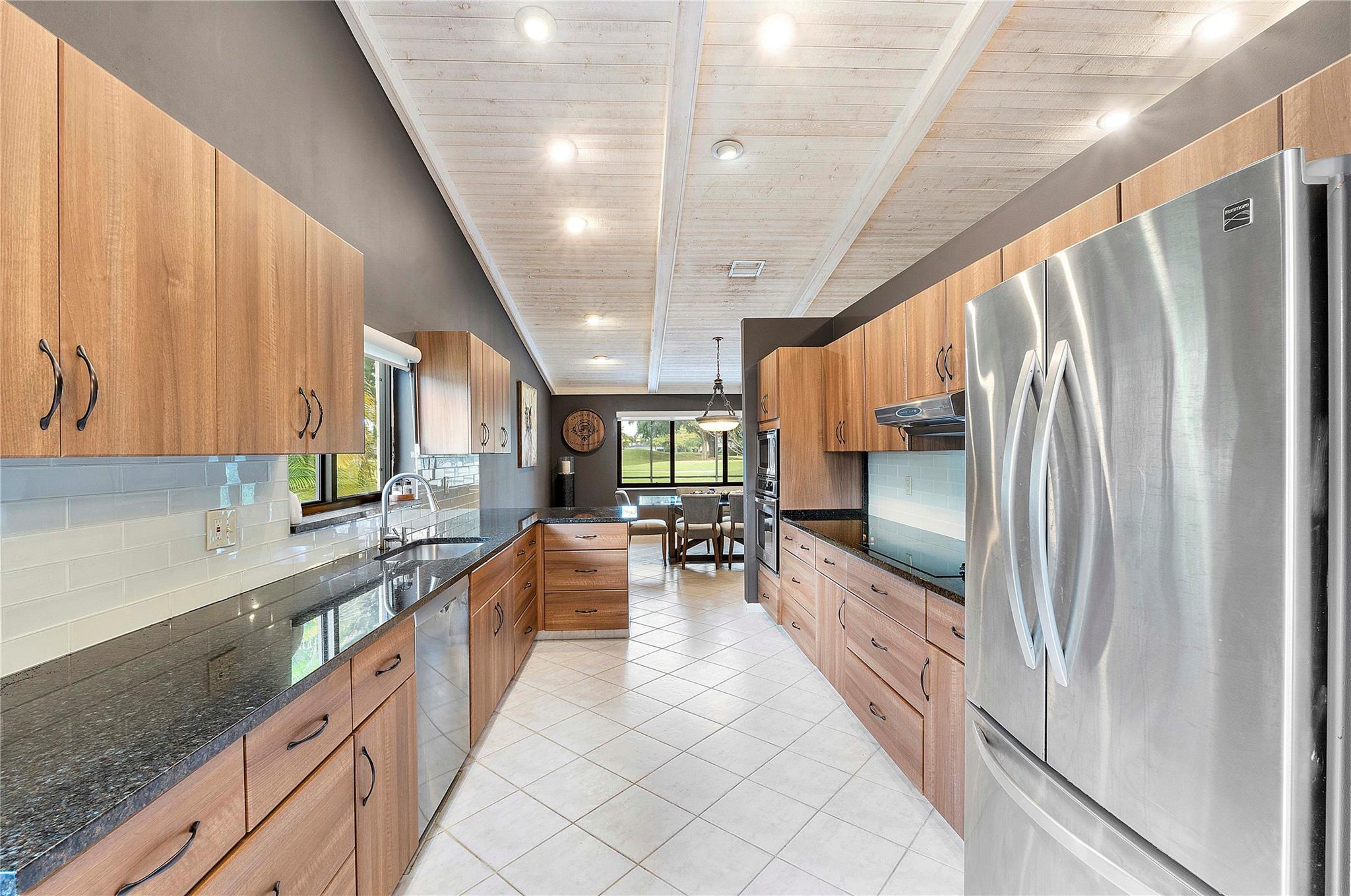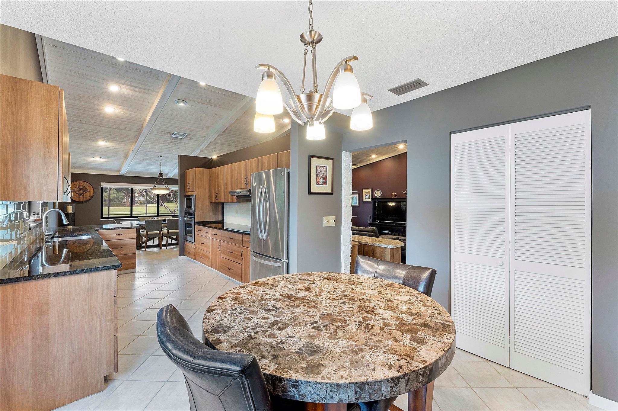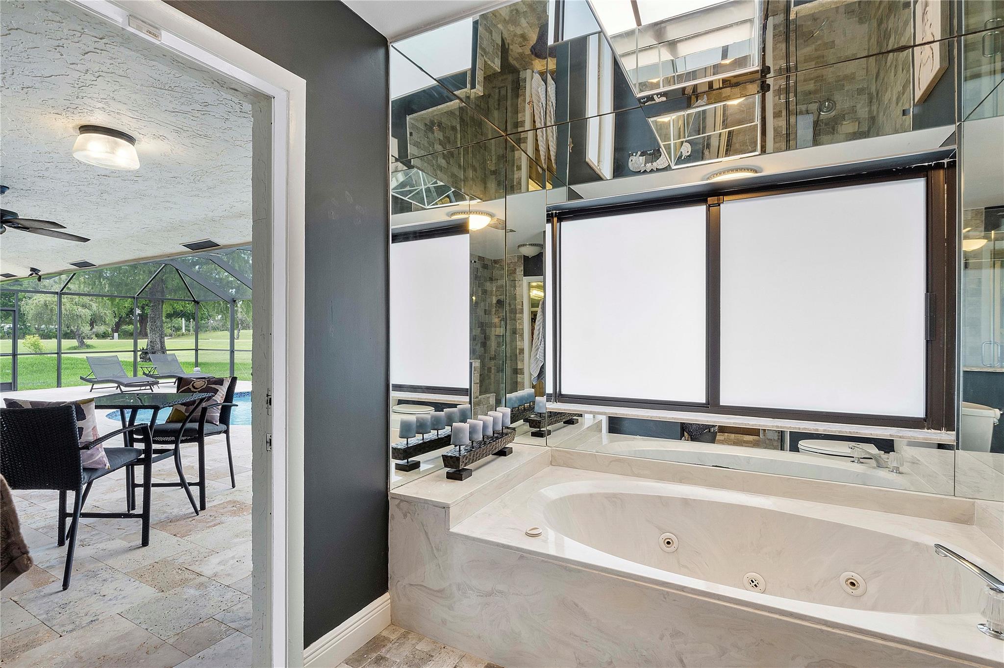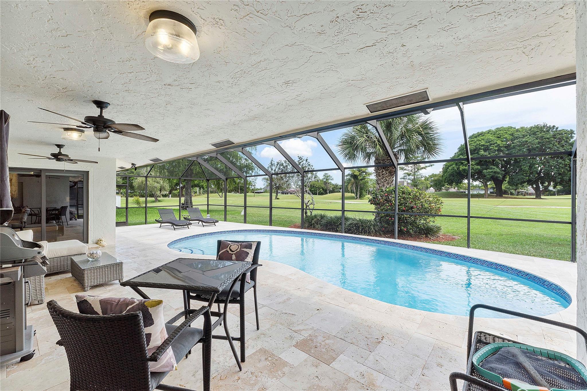 Buyer's home sale fell through! LISTING ACTIVE. Updated Immaculate 3-Bedroom, 2.5-Bath Pool Home located in Woodmont. Breathtaking Golf Course Views and a quiet Cul-da Sac Location! Step inside to discover vaulted wood ceilings that add warmth and character! Tons of natural light pours in through expansive IMPACT WINDOWS (2022), IMPACT DOORS (2020) and skylights (2024) BRAND NEW ROOF (2024)! Oversized master suite includes a sitting area and remodeled bathroom. Enjoy Florida living at its finest with a remodeled pool and travertine deck (2022), complete with a new saltwater pump and filter (2024). The oversized screened-in patio is perfect for entertaining or relaxing, all while soaking in serene golf course views. Woodmont Country Club is Open to the Public memberships are available!!!