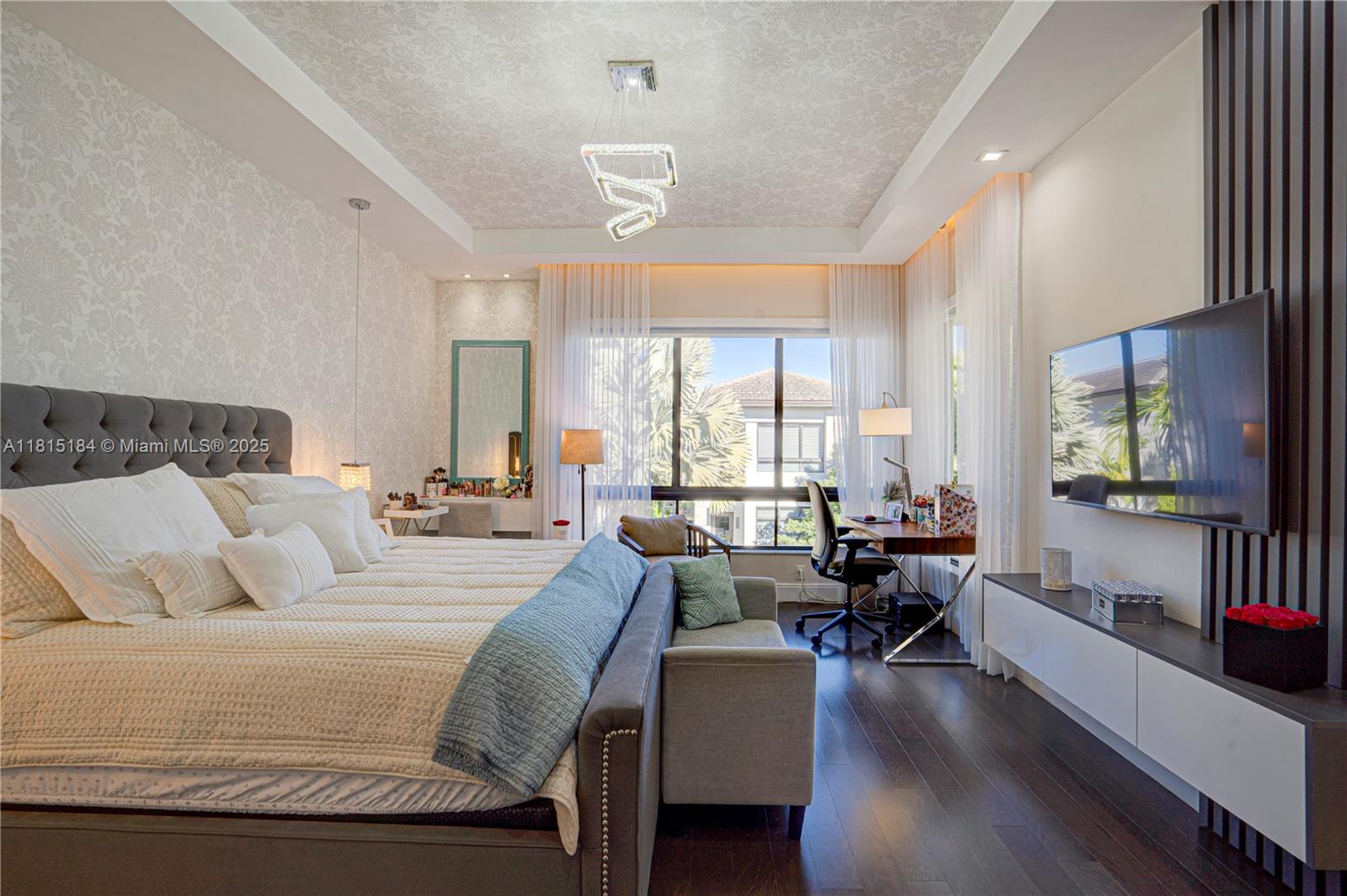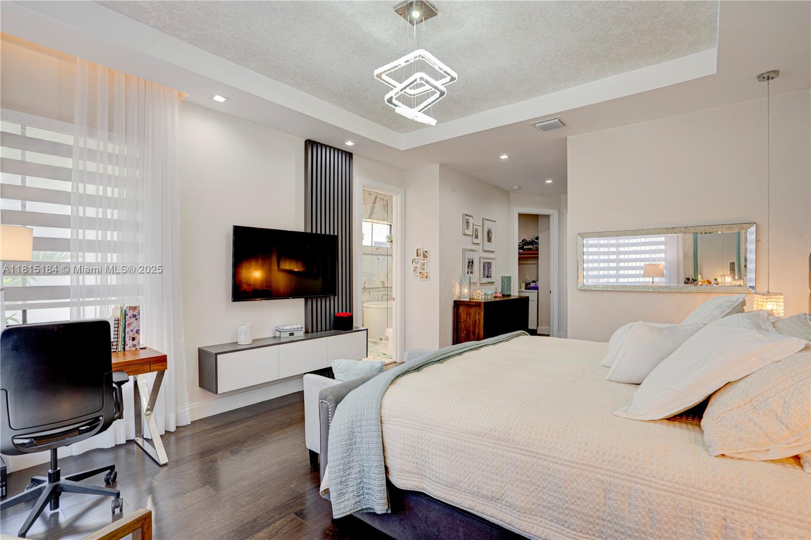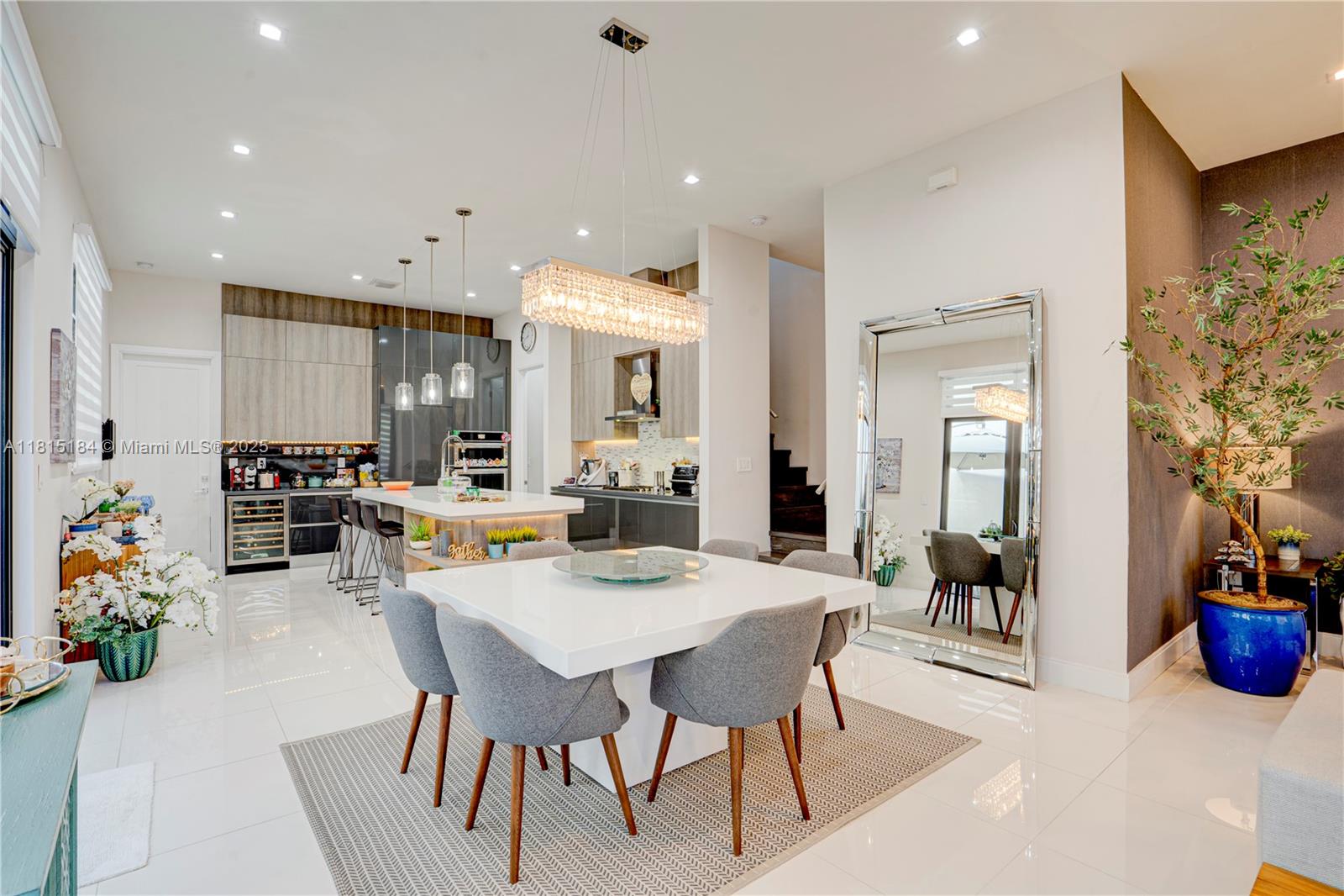Upgraded Home in Canarias! Step into luxury with this stunning residence featuring high-end upgrades throughout. Enjoy elegant ceramic floors downstairs and laminated floors upstairs, creating a sophisticated ambiance. The upgraded kitchen boasts premium cabinetry, luxury countertops, designer faucets, and a built-in wine cooler. The master bathroom has been fully upgraded, while the second full bath now features a sleek glass shower. Additional highlights include built-in closets, electric curtains, Google-powered home automation, a new washer/dryer, and a garage with ceiling storage shelves. This is Model Cadiz B and 4th bedroom is an open office. The private patio is perfect for relaxing or entertaining. Minutes from Downtown Doral Charter Schools!