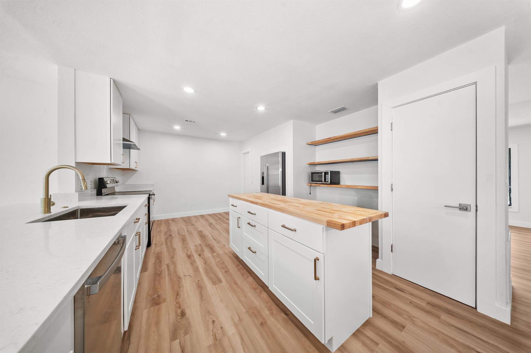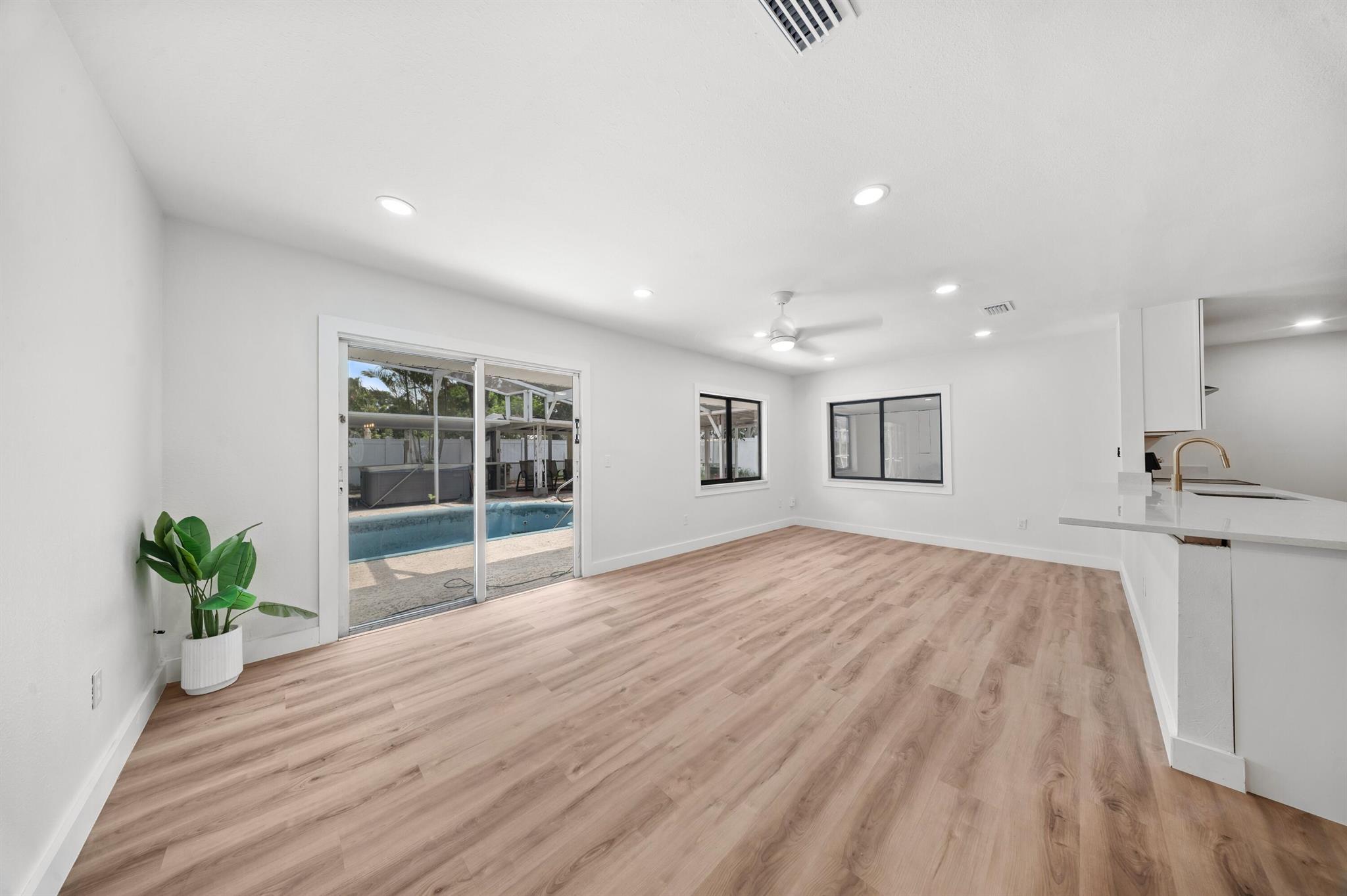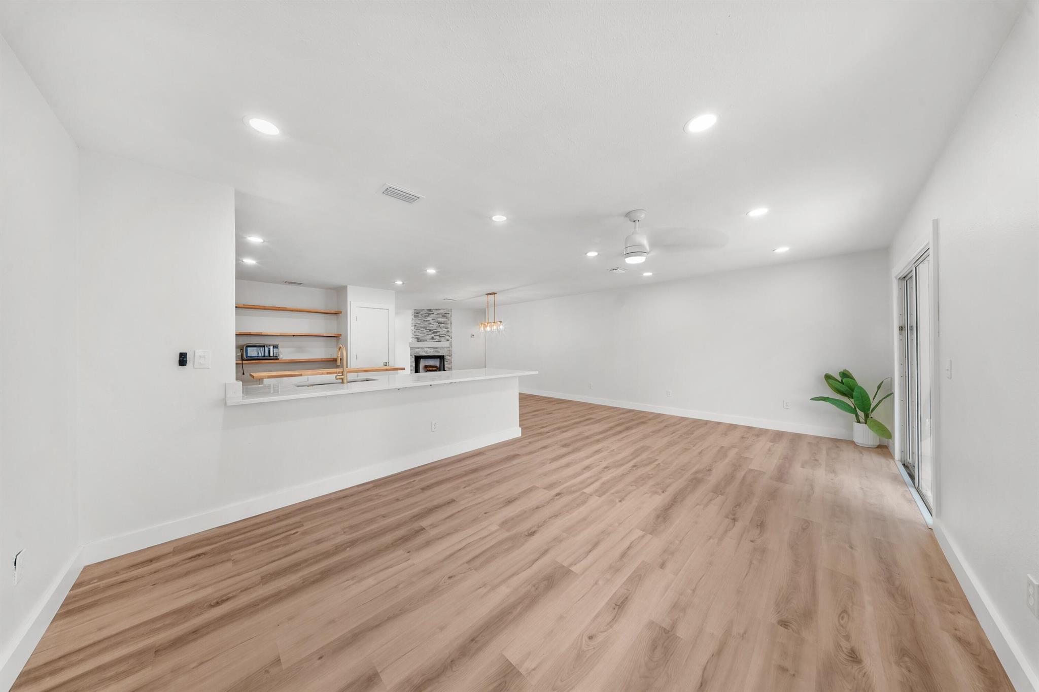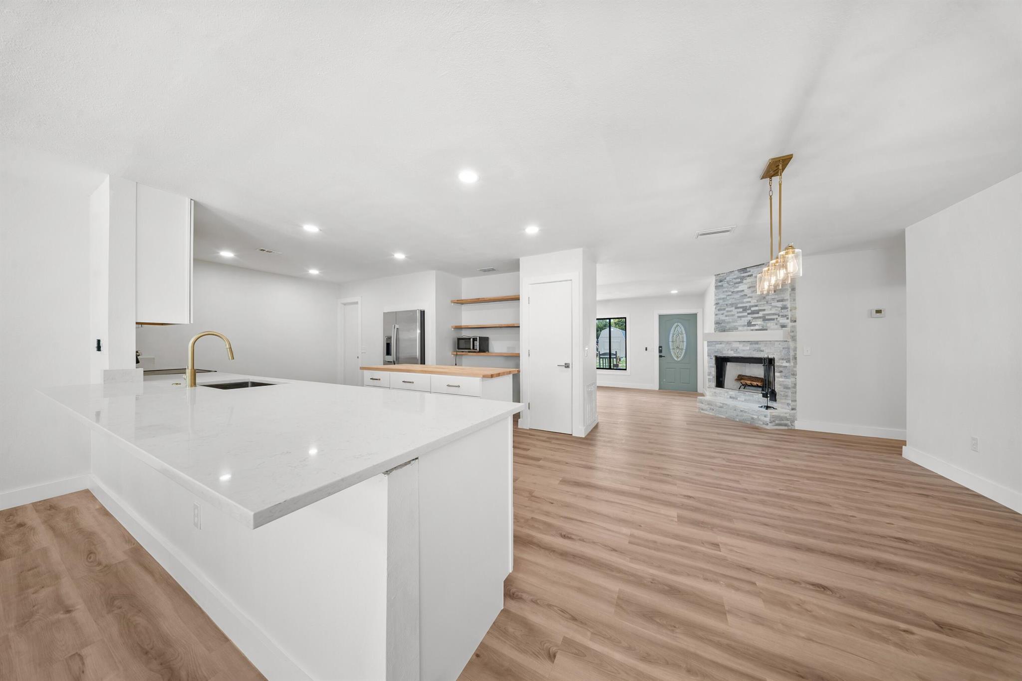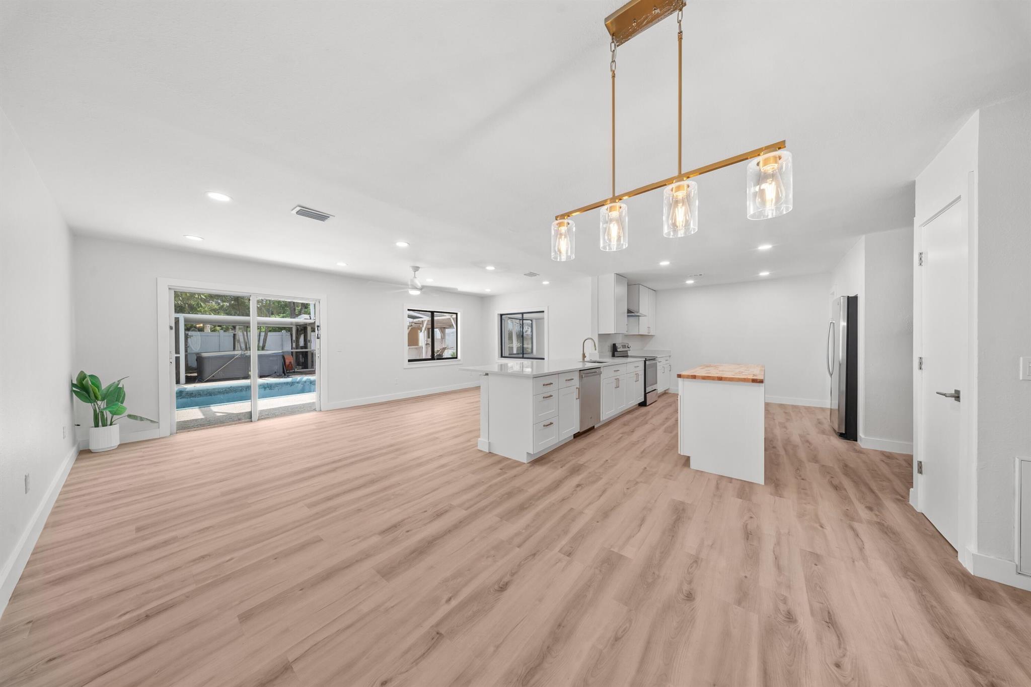 Motivated seller bring all offers! Welcome to this beautifully renovated 3-bedroom, 2-bathroom home that is perfectly positioned on an oversized corner lot in a quiet neighborhood. Step inside to find luxury vinyl flooring throughout, modern appliances, and a stylish kitchen featuring quartz countertops and a butcher block island--perfect for entertaining. The updated, natural stone fireplace adds warmth and charm to the spacious living area. Both bathrooms have been completely remodeled with spacious double vanities and contemporary finishes. Outside, enjoy your private backyard complete with an in ground pool, relaxing hot tub, and outdoor kitchen area. The home also includes a solar electric system for reduced electric bills! *This home is for sale or rent.