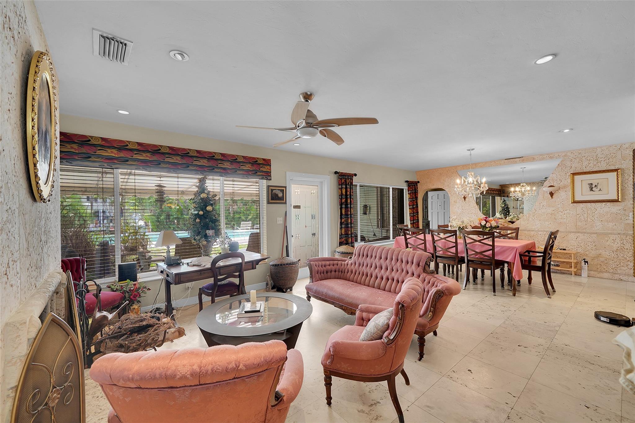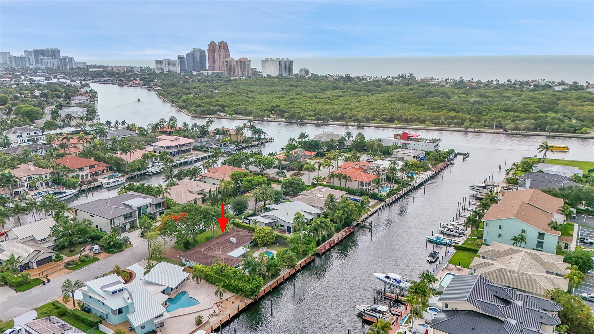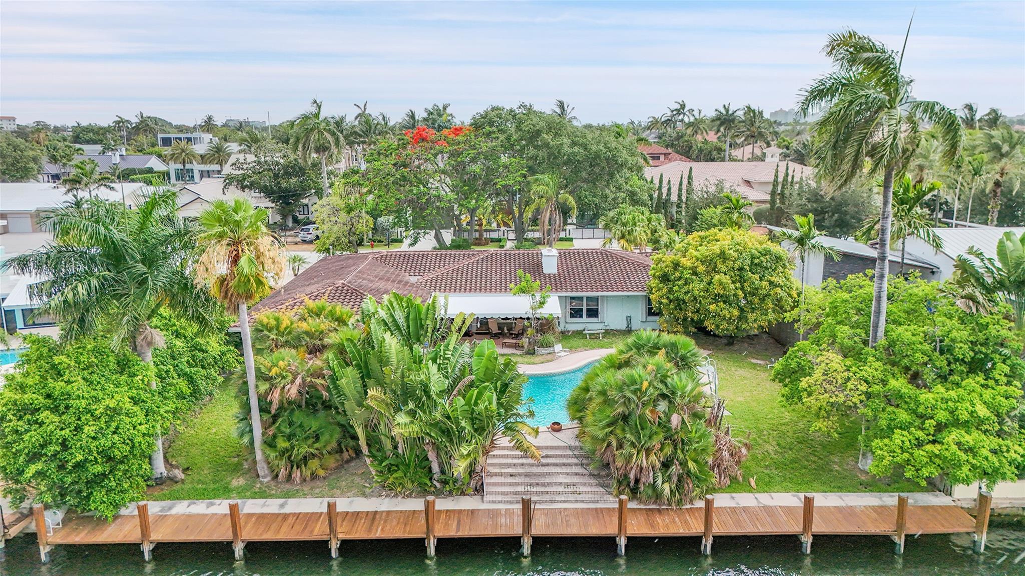 Incredible opportunity in one of Fort Lauderdale’s top waterfront neighborhoods! This 4-bed, 3-bath home sits on a 12,500 sq ft lot with 100 feet of deep water frontage, no fixed bridges, and direct ocean access—ideal for boaters or developers. Offering 2,648 sq ft of living space, the home features a spacious layout, large bedrooms, 2 car garage, and a private dock, pool, water slide, and outdoor entertaining areas. Spacious open floor plan ideal for today's living. Located minutes from the beach, Coral Ridge Country Club, top rated schools, and shopping. Surrounded by luxury homes, this property has huge upside potential to create a custom waterfront estate in a premier location.