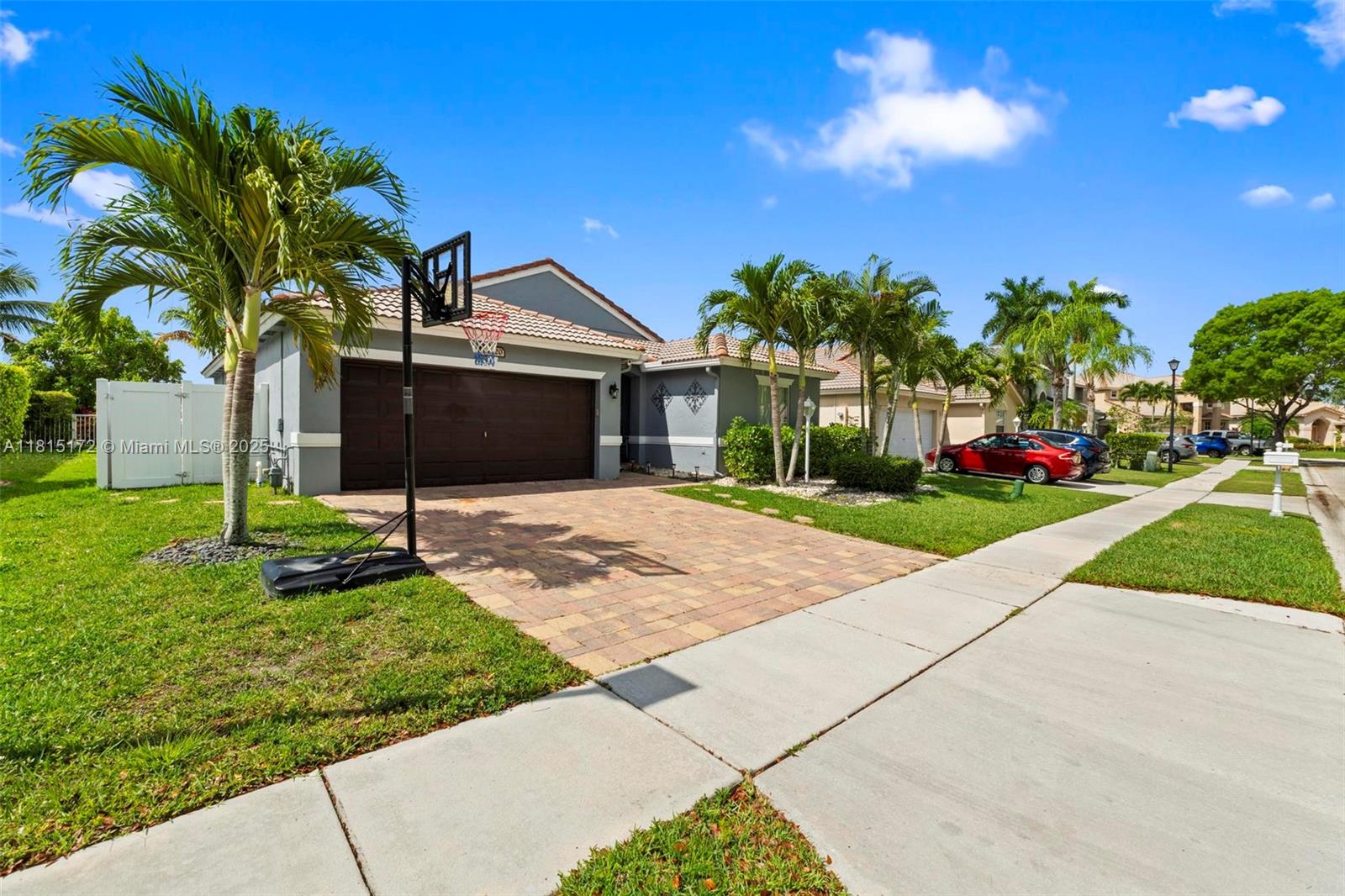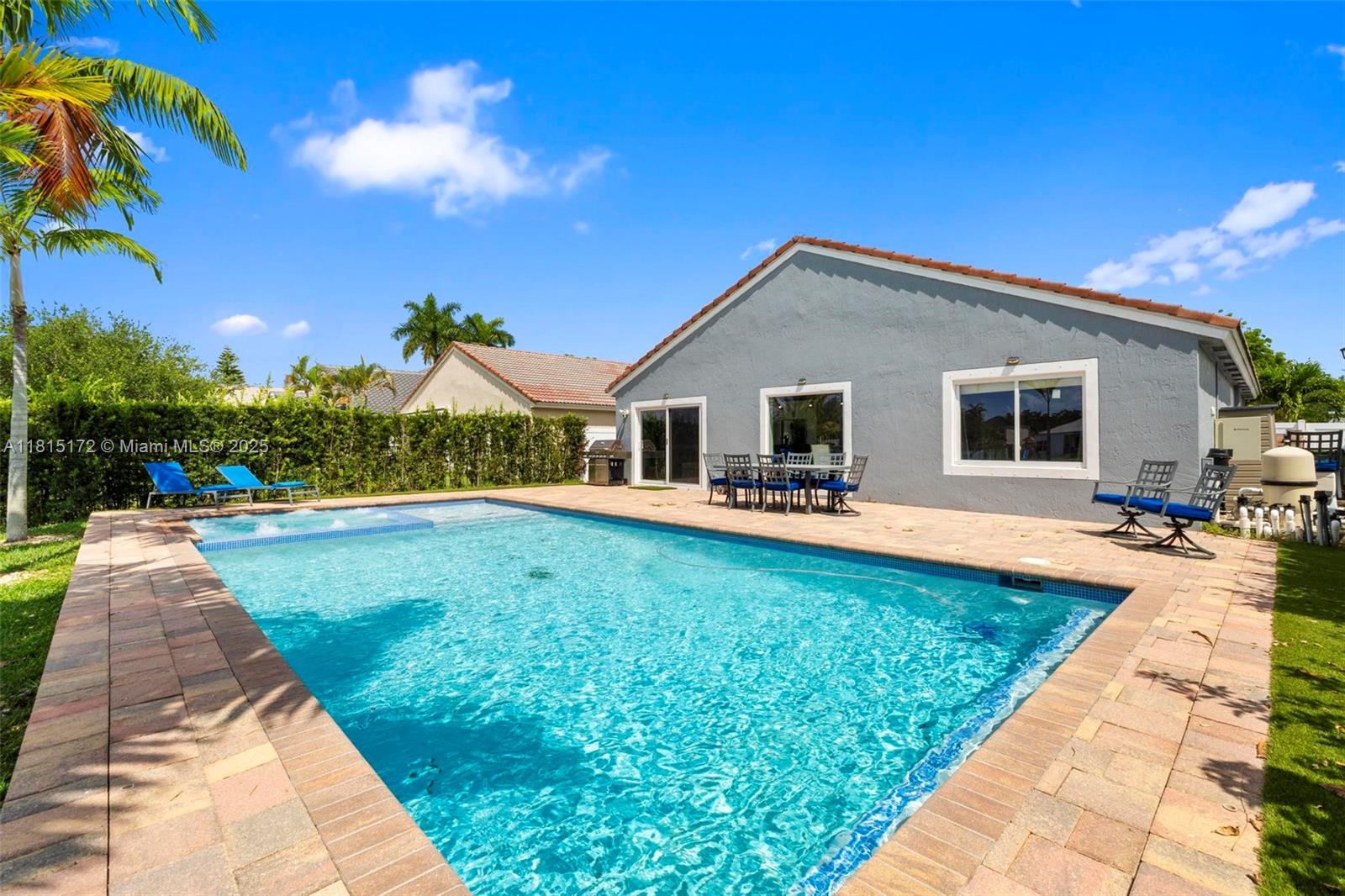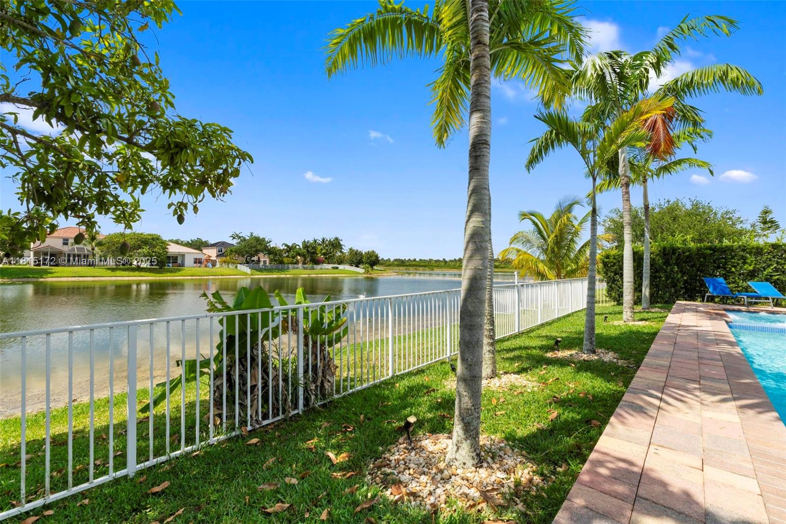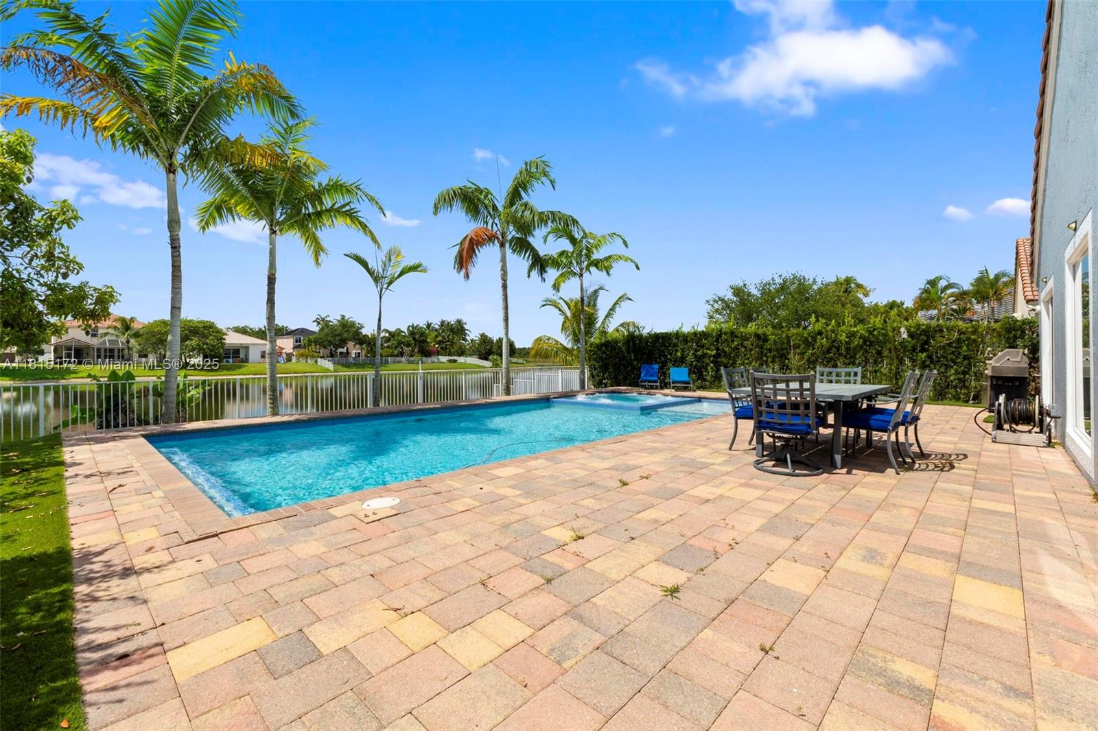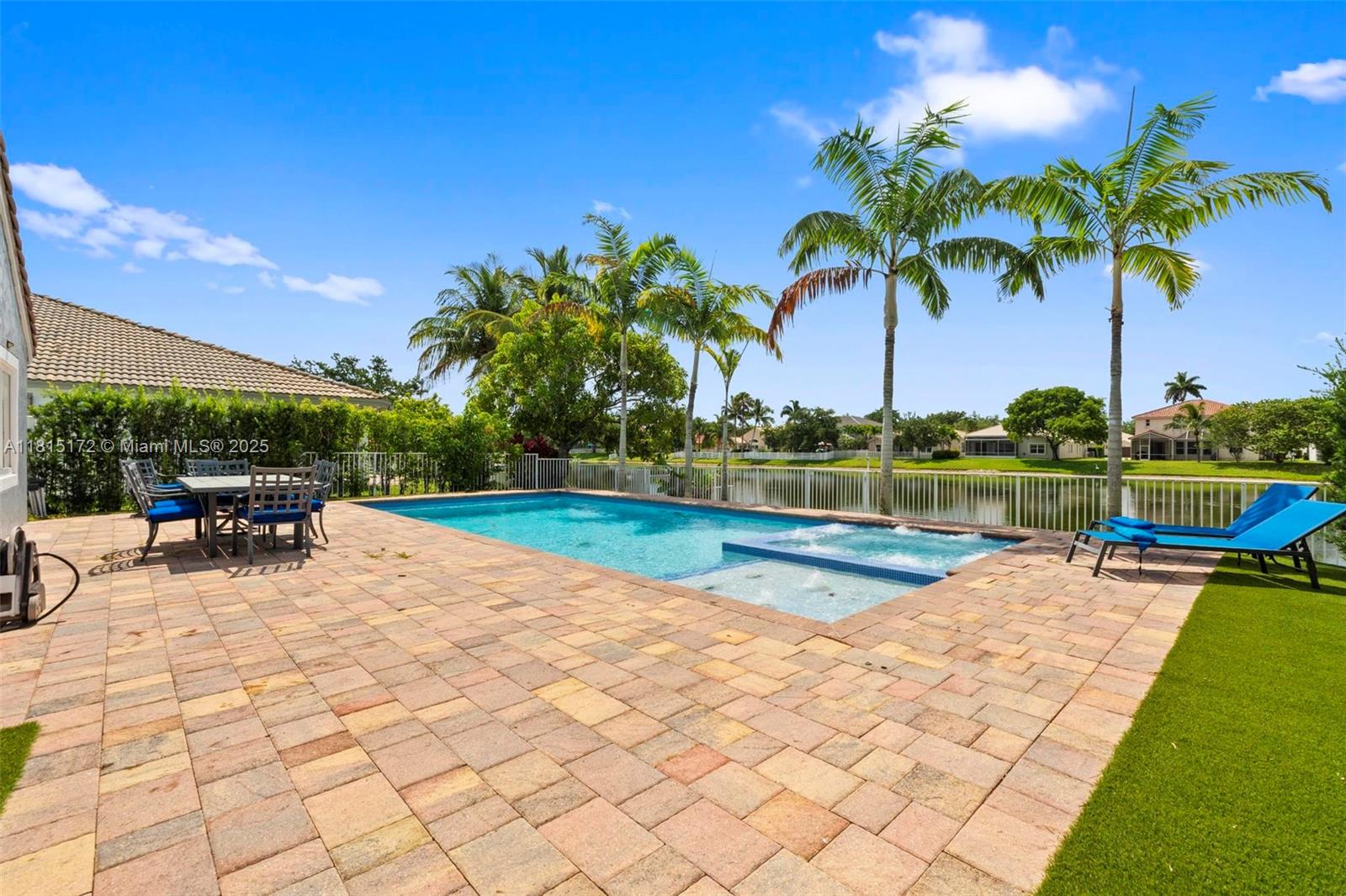 Modern and sleek, this 3-bedroom, 2-bath retreat in the exclusive gated community of Pembroke Falls offers plenty of natural light! This beautiful residence overlooks a shimmering lake. Step into a bright, open concept living space featuring high ceilings and large windows. The gourmet kitchen boasts stainless steel appliances and quartz countertops, ideal for gatherings. The dining area offers lovely views of the pool and lake. Retreat to the luxurious master suite with dual walk-in closets and serene en-suite bathroom. Outside, enjoy your private backyard oasis with an oversized sparkling pool designed with hand-crafted mosaics art and a hot tub for ultimate rejuvenation. The tranquil lake is perfect for fishing or kayaking. Experience a lifestyle of luxury—schedule your showing today!