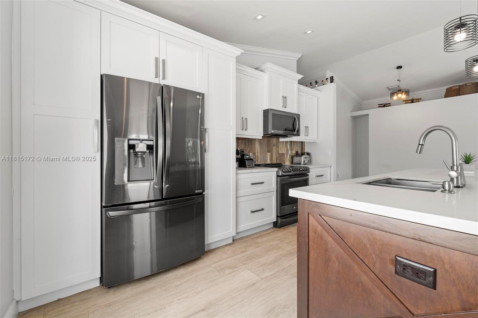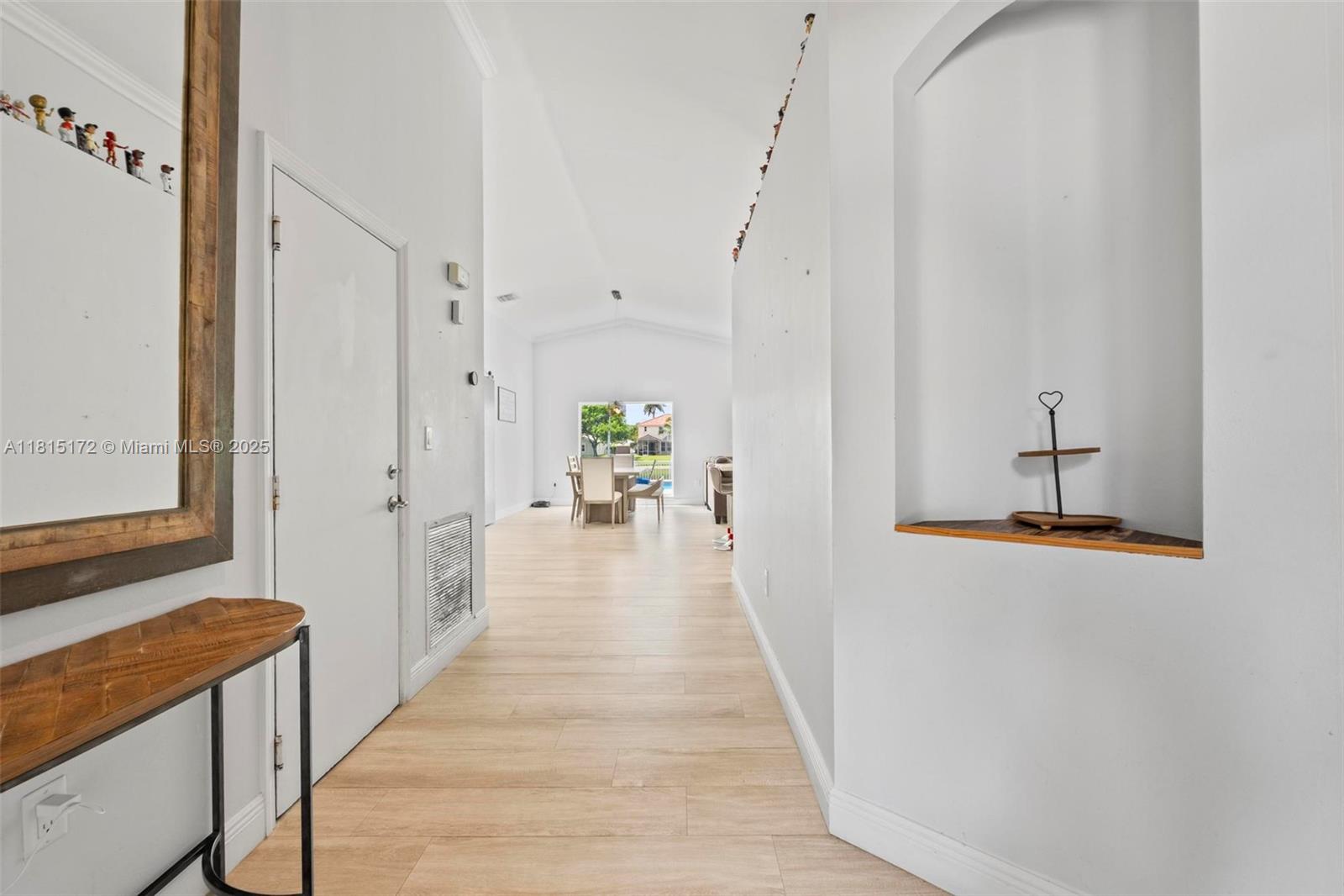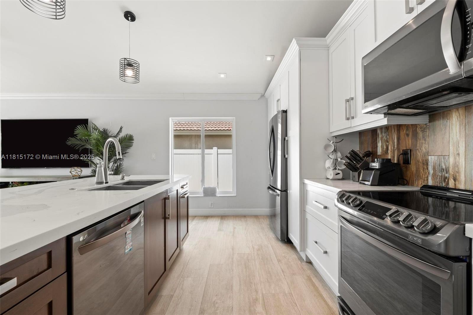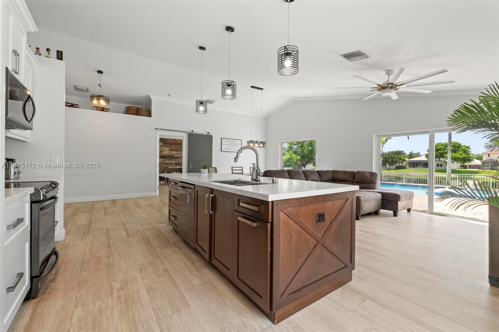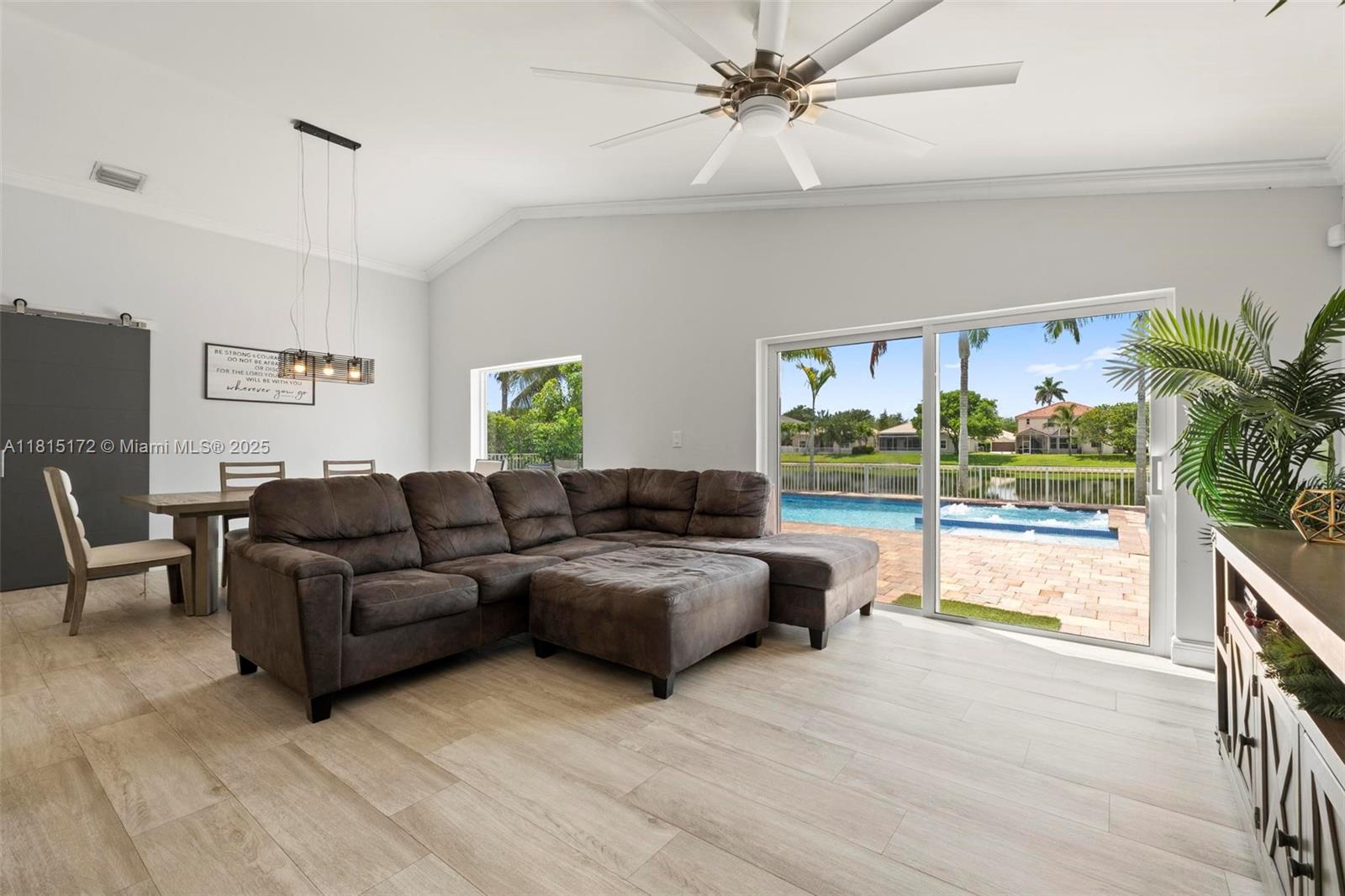 Modern and sleek, this 3-bedroom, 2-bath retreat in the exclusive gated community of Pembroke Falls offers plenty of natural light! This beautiful residence overlooks a shimmering lake. Step into a bright, open concept living space featuring high ceilings and large windows. The gourmet kitchen boasts stainless steel appliances and quartz countertops, ideal for gatherings. The dining area offers lovely views of the pool and lake. Retreat to the luxurious master suite with dual walk-in closets and serene en-suite bathroom. Outside, enjoy your private backyard oasis with an oversized sparkling pool designed with hand-crafted mosaics art and a hot tub for ultimate rejuvenation. The tranquil lake is perfect for fishing or kayaking. Experience a lifestyle of luxury—schedule your showing today!