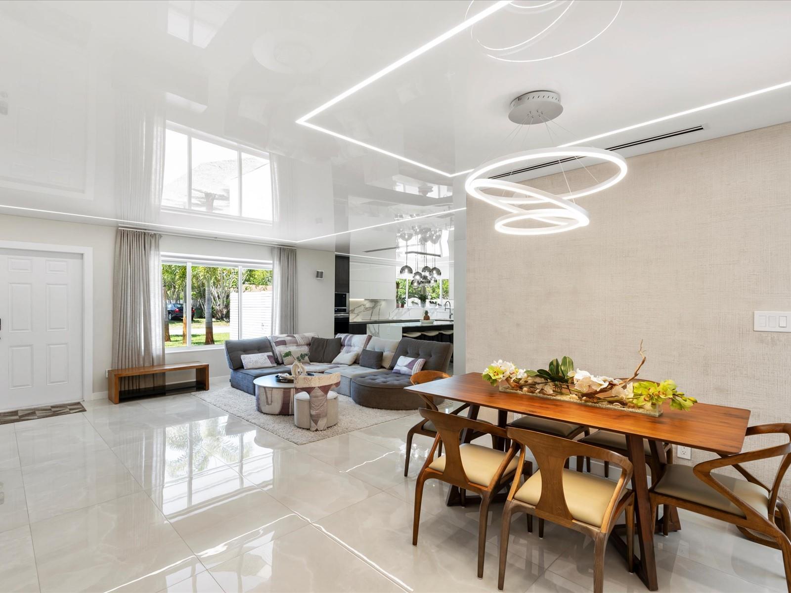 Designer-reimagined and totally renovated in 2022, this stunning 3-bed, 3-bath home offers luxury living inside and out. Features include custom closets, kitchen, built-in furniture, stretch ceilings, dimmable lighting, and new A/C. The modern layout includes a spacious kitchen with large island. All major systems have been updated: new roof, plumbing, electrical, and full hurricane-impact windows and doors. The spa-like master bathroom includes a custom steam room. Outside, enjoy a resort-style saltwater heated pool with hot tub and spa. A new aluminum fence surrounds the property, which also features a new driveway and detached garage with tankless water heater. This turnkey home combines style, comfort, and peace of mind—ideal as a luxury residence or high-end rental.