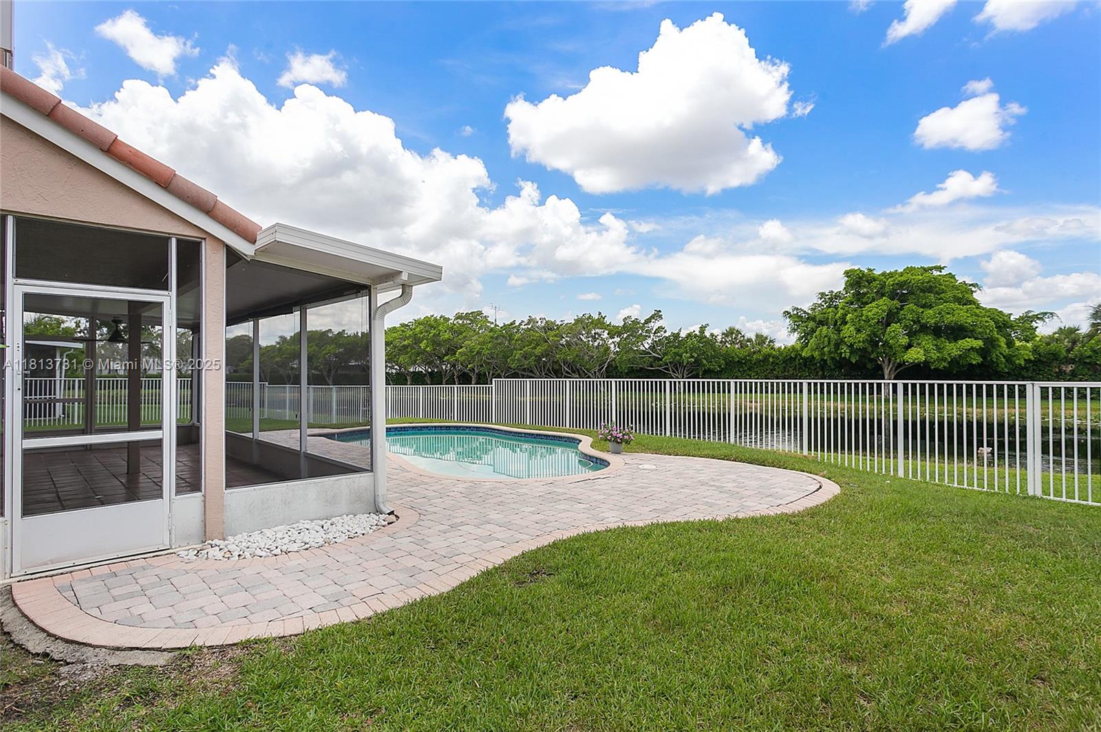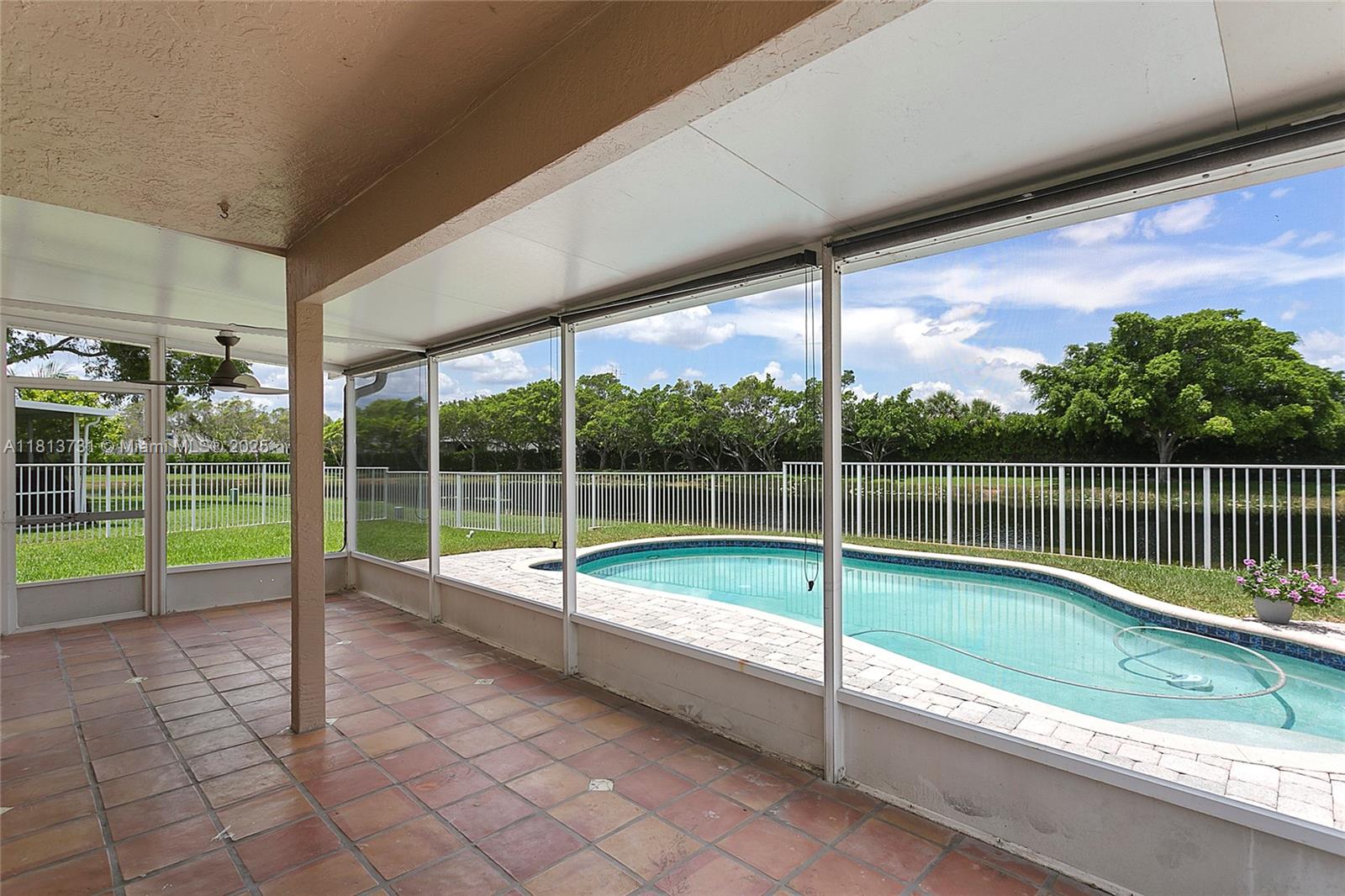 R.A.R.E.L.Y Available Pool Home Lakefront Gem on a Private Cul-de-Sac. This beautifully remodeled 4-bedroom, 2.5-bathroom home sits on a spacious pie-shaped lot, offering a serene lakefront setting. The open-concept design seamlessly connects the living, dining, and kitchen areas, all of which have been updated with modern finishes. Step outside to your private fenced-in backyard oasis & screened in patio featuring a glistening pool that backs to a private lake, surrounded by lush landscaping, perfect for relaxation and entertaining. With hurricane protection (Accordion shutters on windows and hurricane impact front door and sliding door) in place, you can enjoy peace of mind during storm season. Walk or bike to Indian Trace elementary & Tequesta Trace Middle. Zoned for Cypress Bay High.