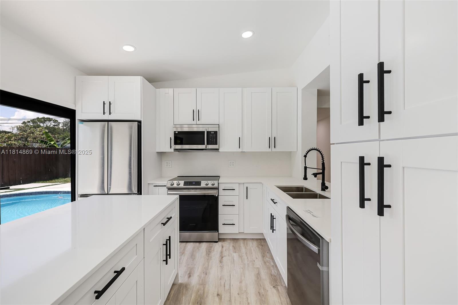 Welcome to this beautifully updated 4 bedroom, 2 bathroom residence, perfectly situated in a central Fort Lauderdale neighborhood. Thoughtfully designed for both comfort and privacy, this home features a motorized entry gate, impact windows, gutters, a brand-new A/C unit, updated electrical and plumbing, and a new water heater offering peace of mind and modern convenience. Step inside to an open-concept layout that seamlessly connects the living, dining, and kitchen areas—all with inviting views of the backyard and pool. With contemporary upgrades throughout, this move-in-ready home truly needs nothing—just bring your furniture and start living!