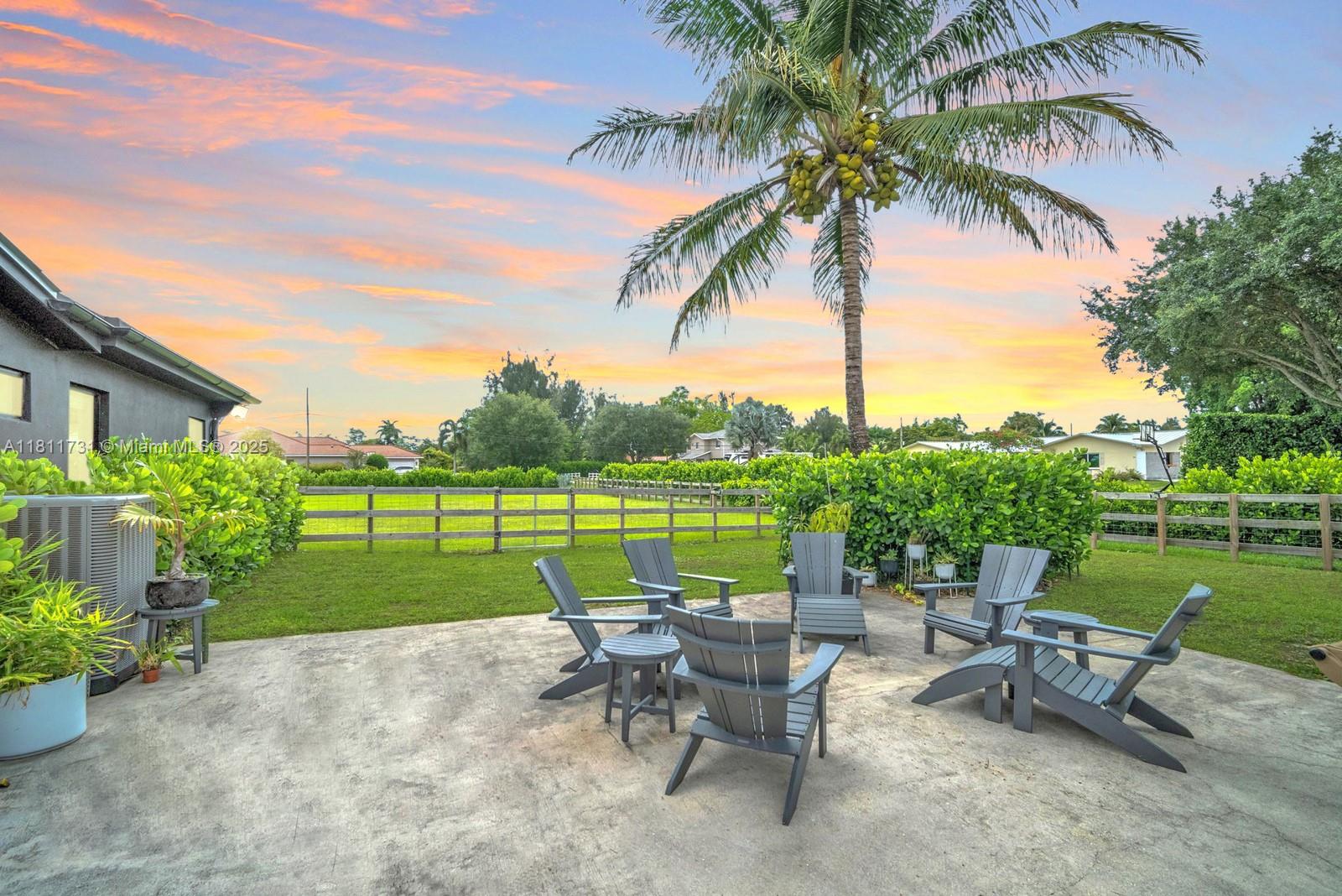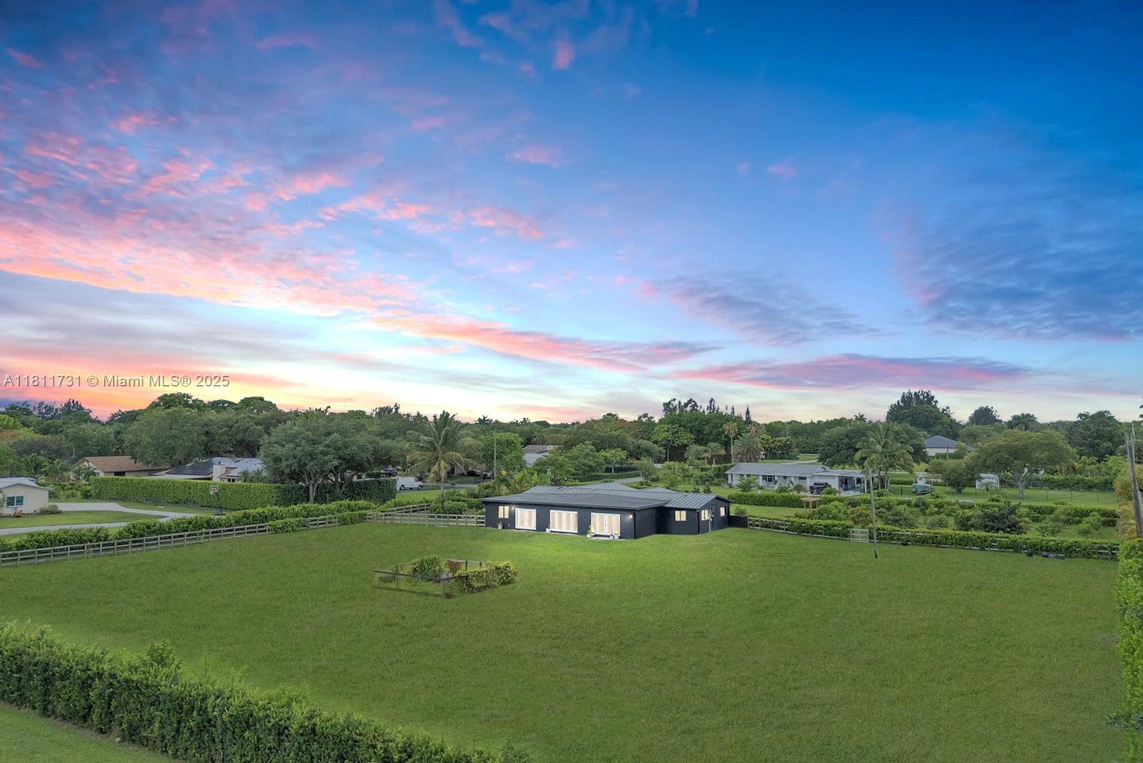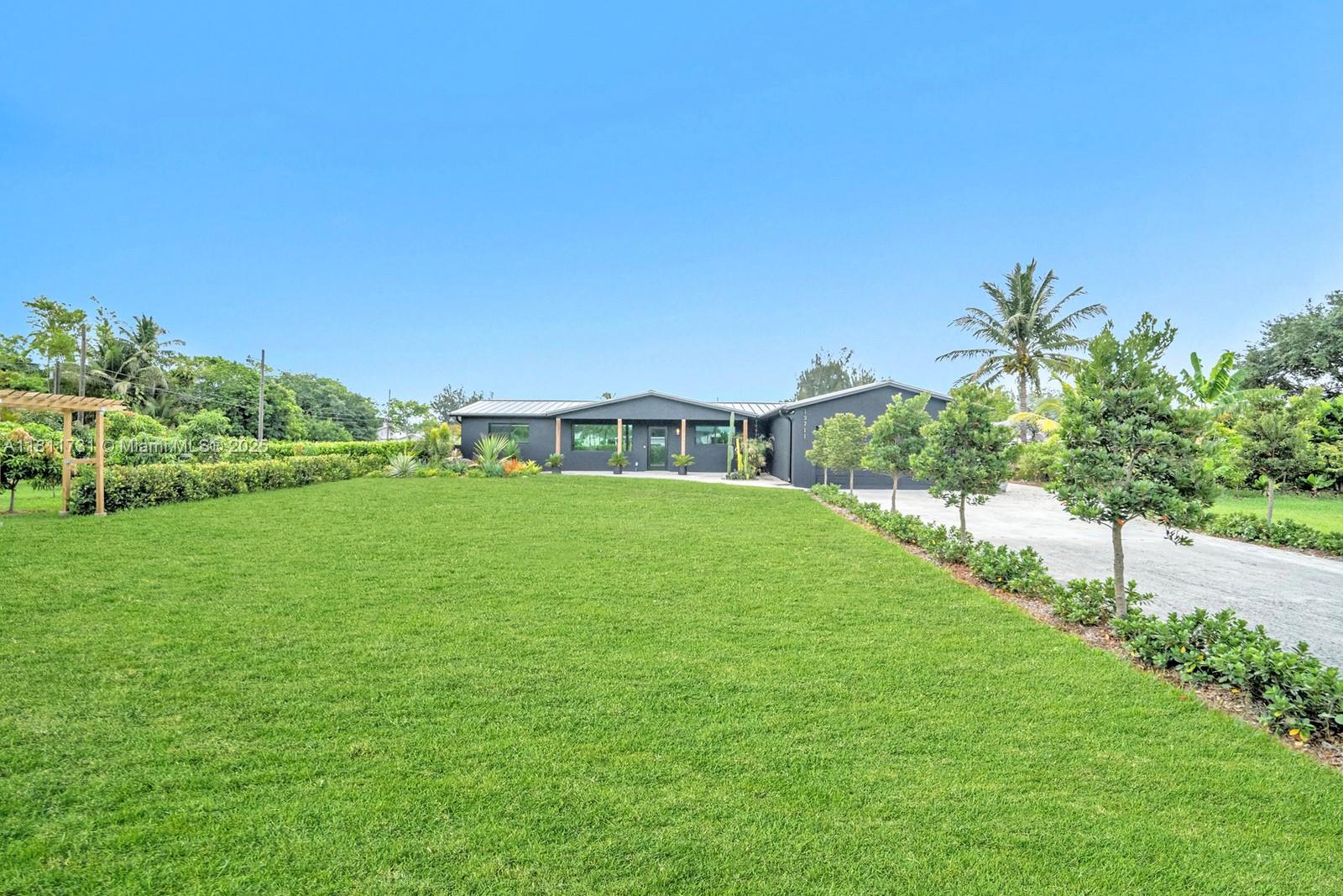 Gorgeous 4 bed 2.5 bath one-of-a-kind home nestled on spectacular 2 acre premium lot on charming street in the heart of equestrian friendly city of Davie. Tastefully updated home features new floors throughout. Kitchen has sleek cabinets w glass accent doors, stainless appliances & range hood. Spacious living room and family room that showcases a wood beam ceiling w 2 sets of french doors to an expansive fully fenced backyard. Triple split floor plan is desirable & versatile. Large primary bedroom w en-suite & view of the grounds. Freshly painted inside & stylish paint outside. Welcoming curb appeal, landscaping is so pretty, including private grove w a variety of fruit trees. Additional highlights: large laundry room, impact doors & windows, metal roof, new ac and water heater.