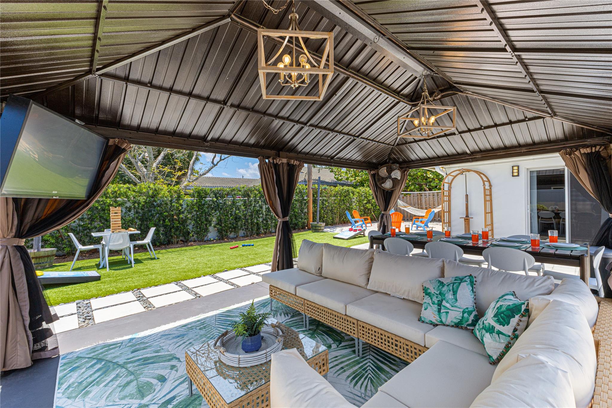 HIGH PERFORMING VACATION PARADISE! Fully renovated, Professionally decorated and equipped for an Airbnb. This stylish home is the perfect blend of comfort, luxury, and fun. Escape the sun under the shade in the massive gazebo with a smart TV. Lounge on your private beach sand w/ string lights. Grill up a feast at the Built-In Grill and an outdoor dining table for 8. Beautiful quartz countertops, like new appliances, porcelain floors, & separate laundry room. Brand new roof installed before closing, $30,000 value! New HVAC/ & Electrical 2021, Hurricane Impact Windows & Doors, NOT a flood zone, 25kw Generac generator w/1000 gallon propane tank, never lose power! Mins from the beach, Wilton Dr, Las Olas, & Airport. Don't miss this RARE opportunity to own a profitable Turn Key Airbnb!